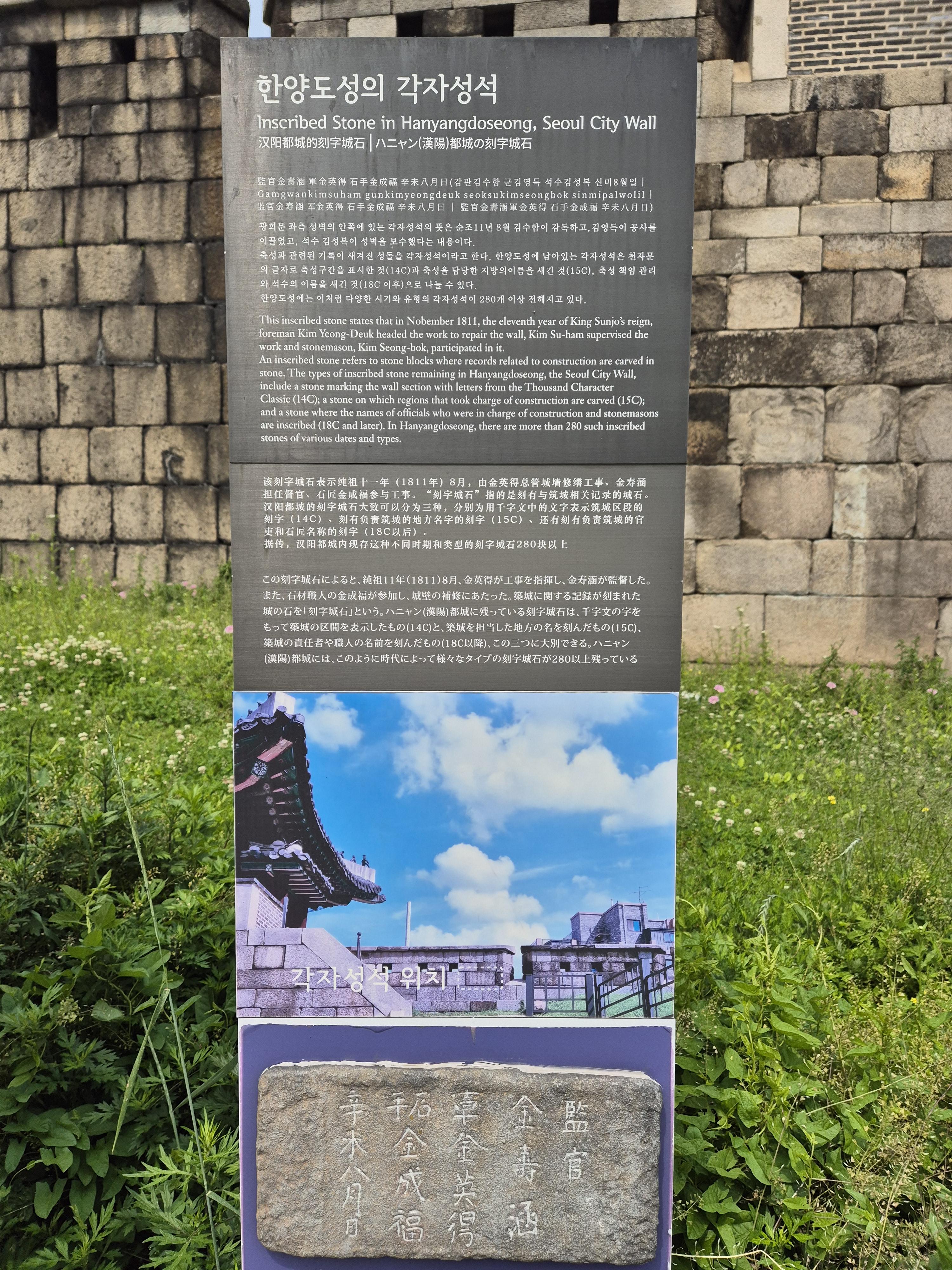 돌과 흙으로만 쌓은 조선의 축성 기술은 놀랄만하다. 토목공학적 해석까지는 알지 못하지만 1396년 전국 각지에서 모인 사람들이 구간 구간을 정하고 동시에 쌓은 축성 기술은 참으로 놀랄만하다. 구간마다 사용한 돌의 모습이 다르고 축성한 모양이 다르지만 전체적으로는 자연의 지형을 활용한 한결같은 아름다움을 유지하며 튼튼하게 축성을 하였으니 이는 거대한 국가사업이고 참여하는 백성은 끌러 나온 노역이 아니라 백성으로 자부심을 갖고 참여하지 않았을까? 하는 생각이 들었다. 참여한 백성들에게 노임을 어떻게 지불했는지는 기록이 없어 알 수 없다. 당시의 상황으로 그냥 나라의 명에 의해 한양까지 온 충청지방의 음성지역 백성들은 신이 났을까? 어쩔 수 없이 이 공사에 참여했을까? 어디 음성 사람 들 만이던가. 전국 각지에서 도성 쌓는데 동원되었으니 그 수고로움이 얼마나 컸을까? 그들은 힘들었을까? 행복했을까?