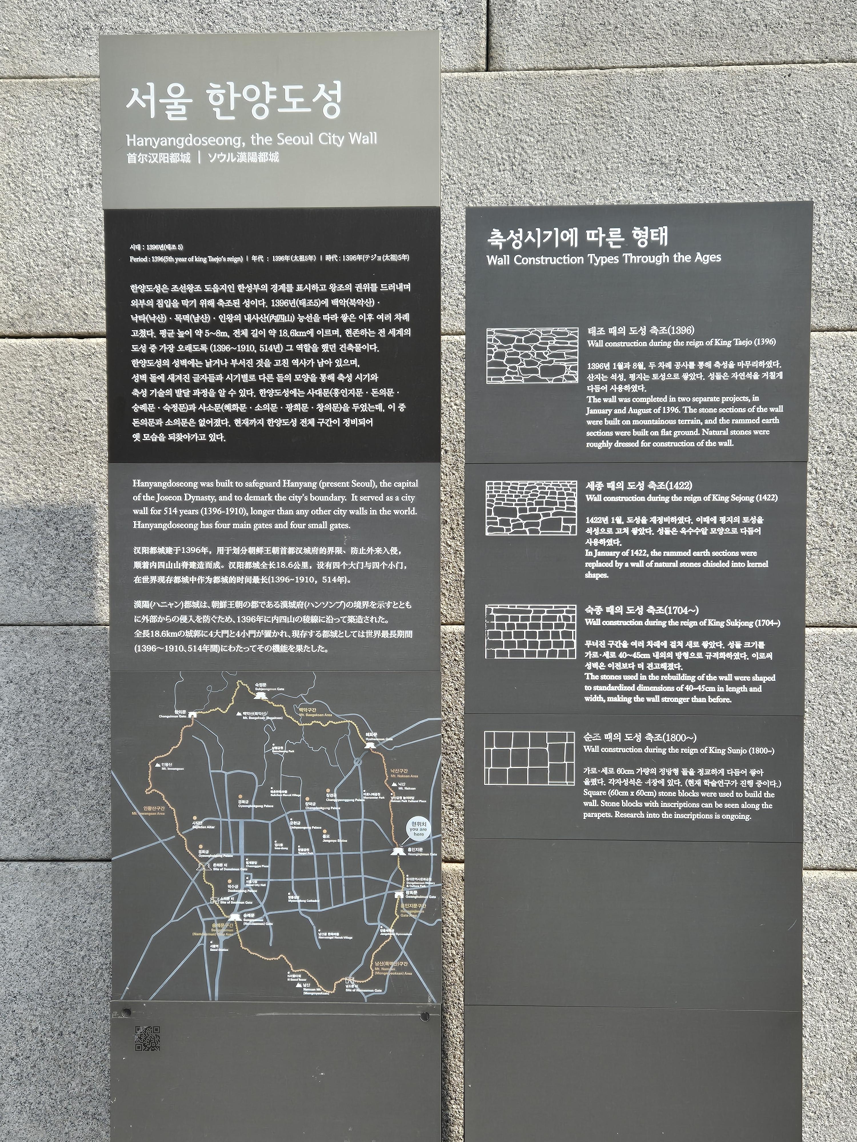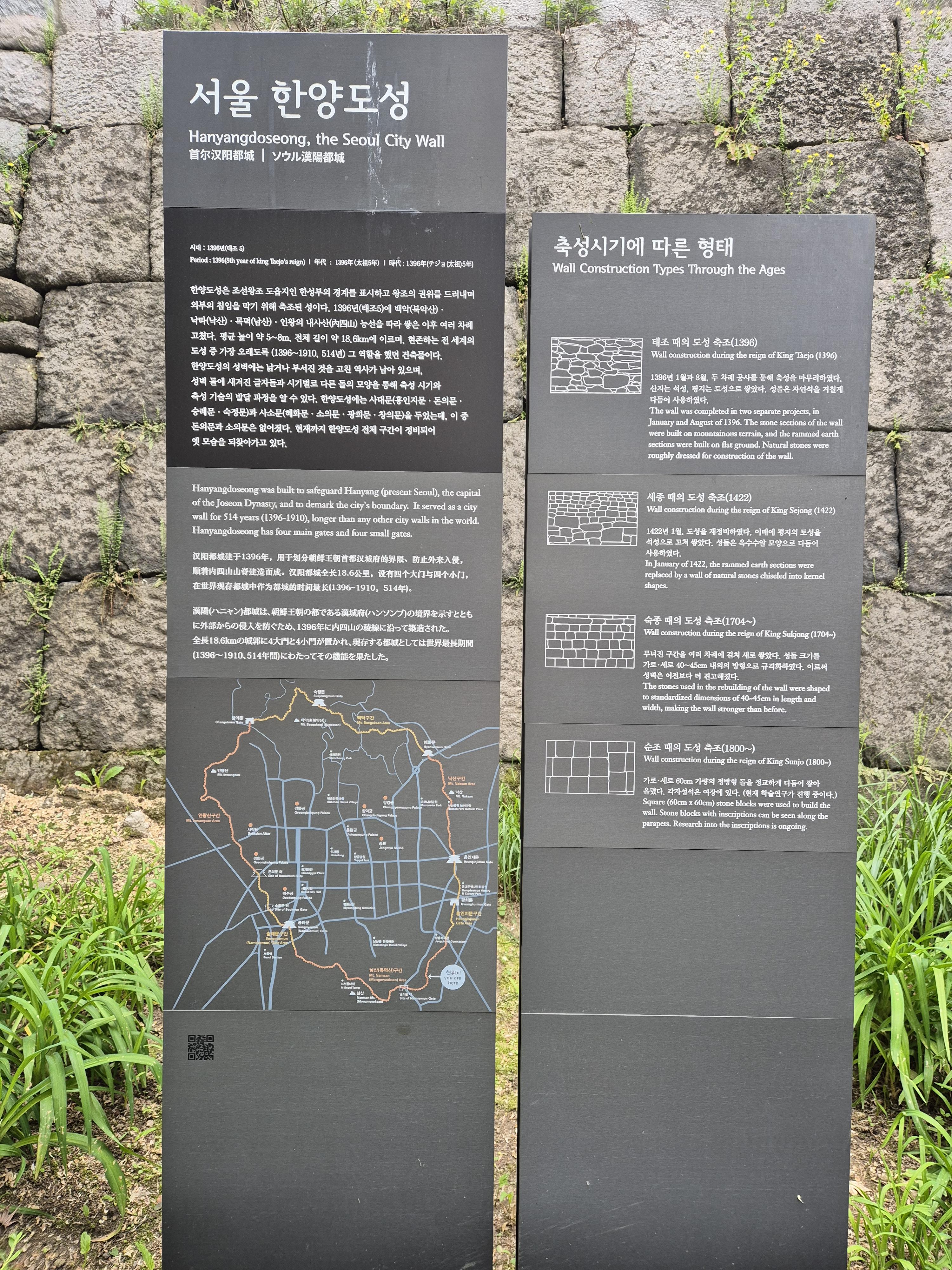 축성시기가 확실히 다르다. 처음 축성과 보수 과정이 잘 보이는 역사의 한양도성