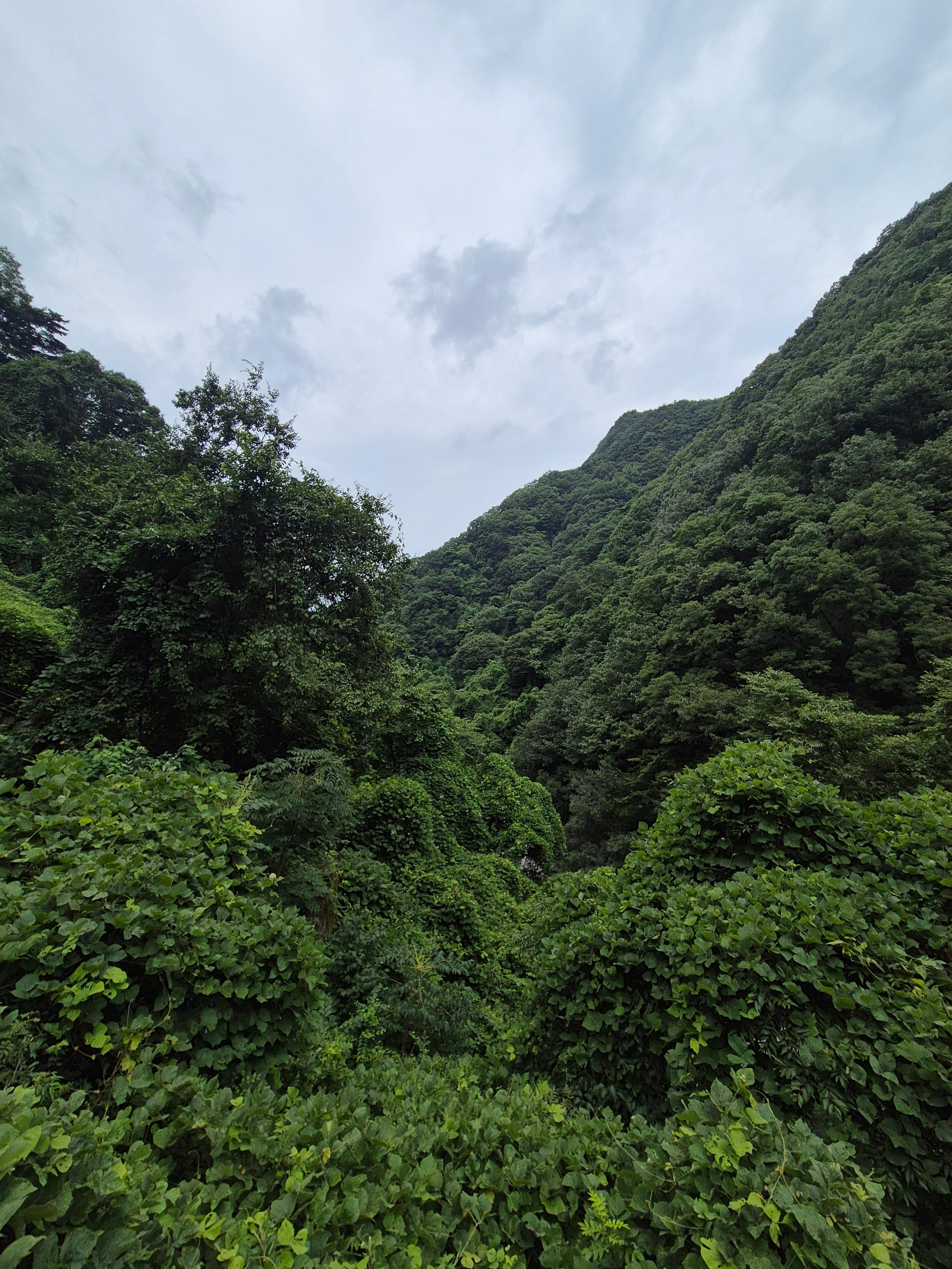 칡덩굴과 활엽수가 어우러져 울창한 수풀을 이루면서 8월의 한여름 구룡계곡은 짙은 숲 속으로 빠져 든다.