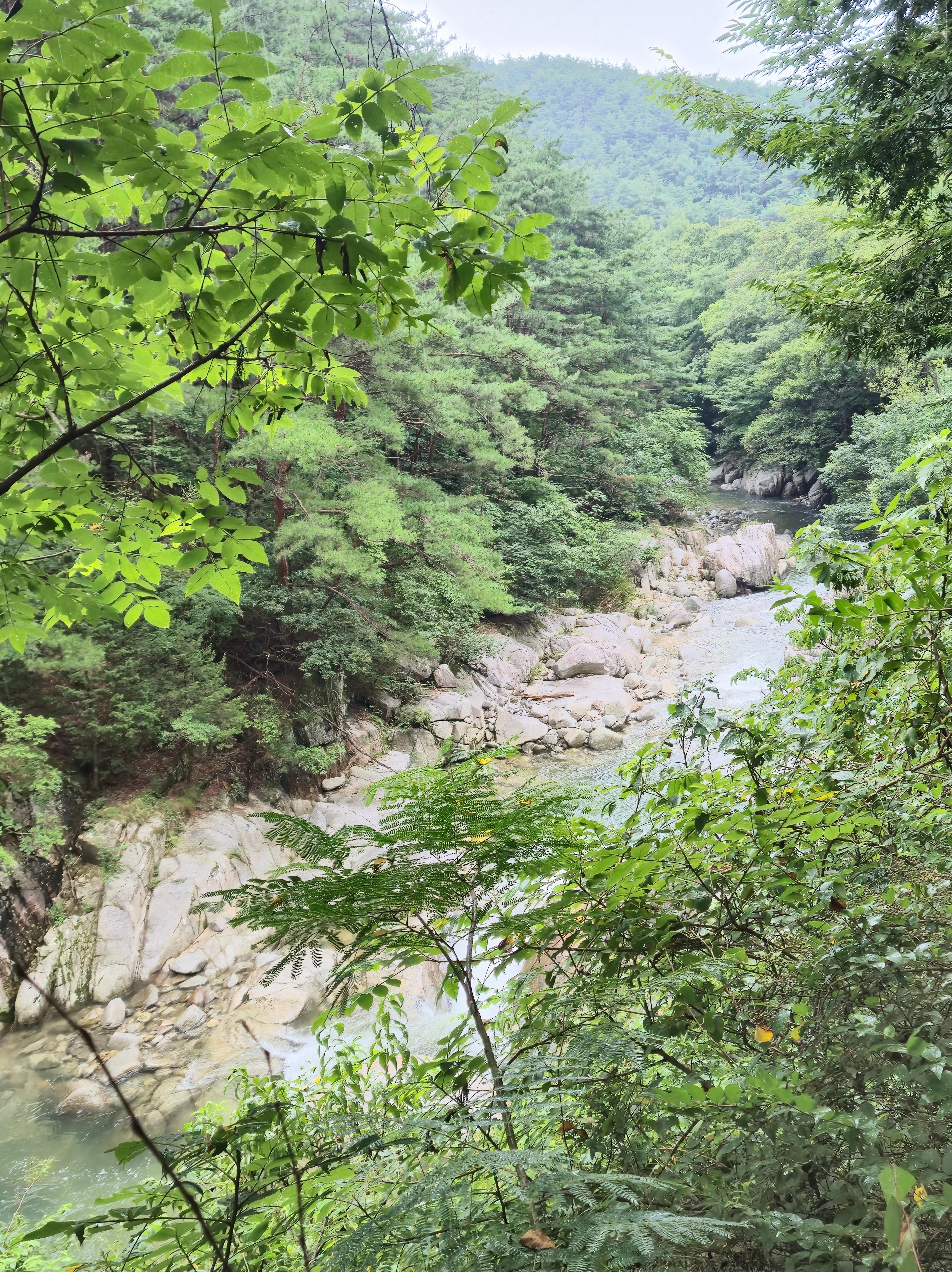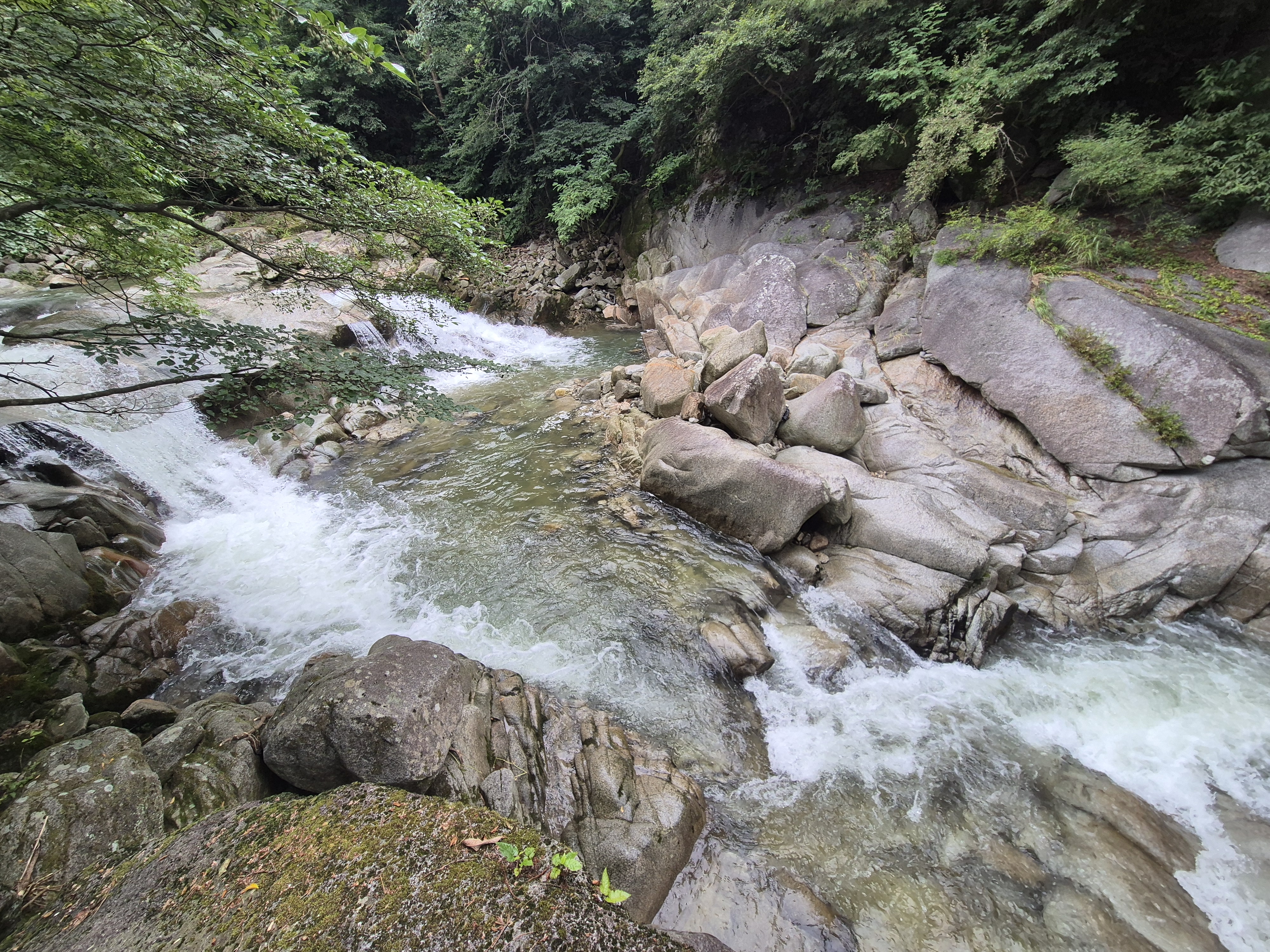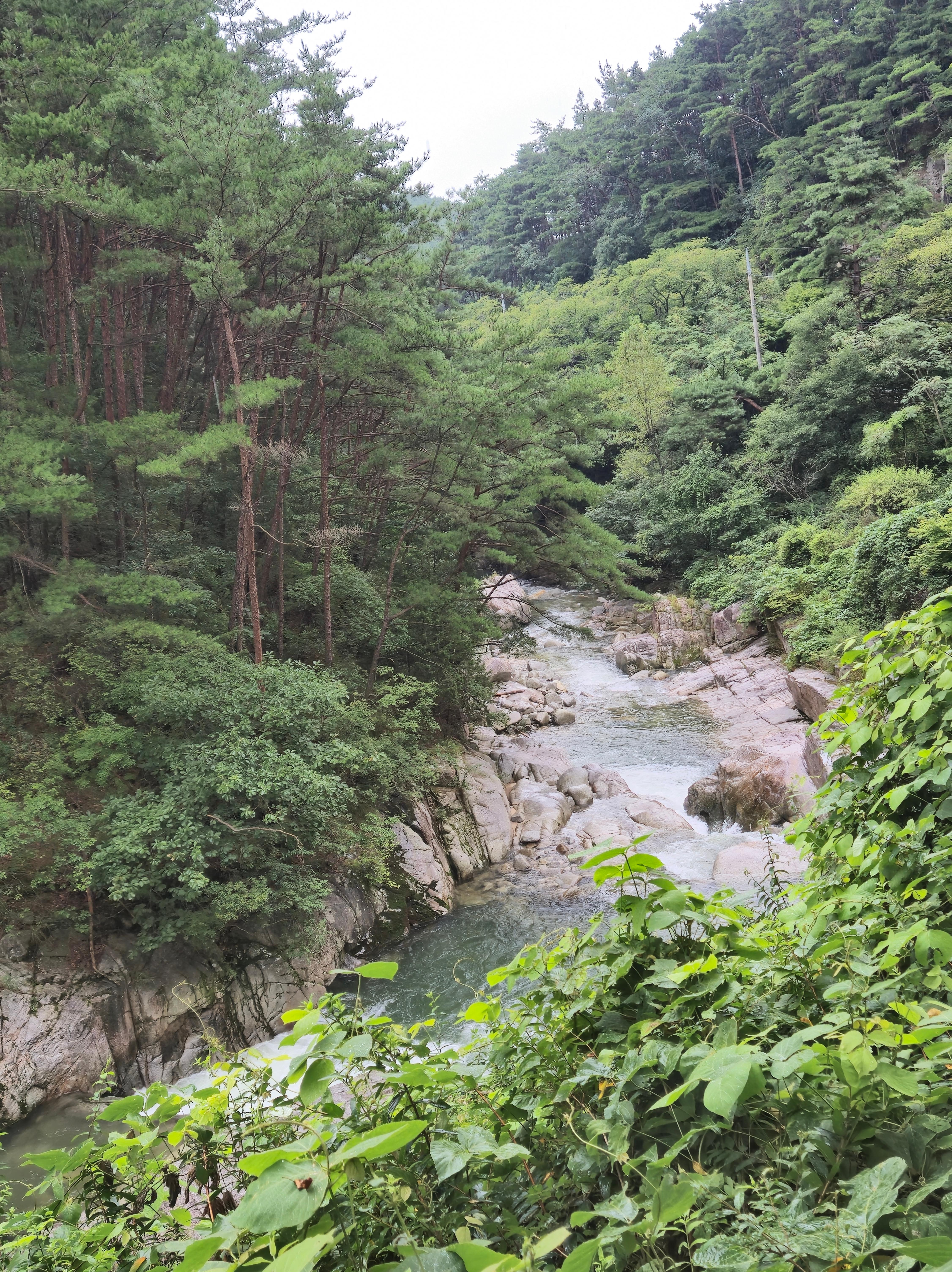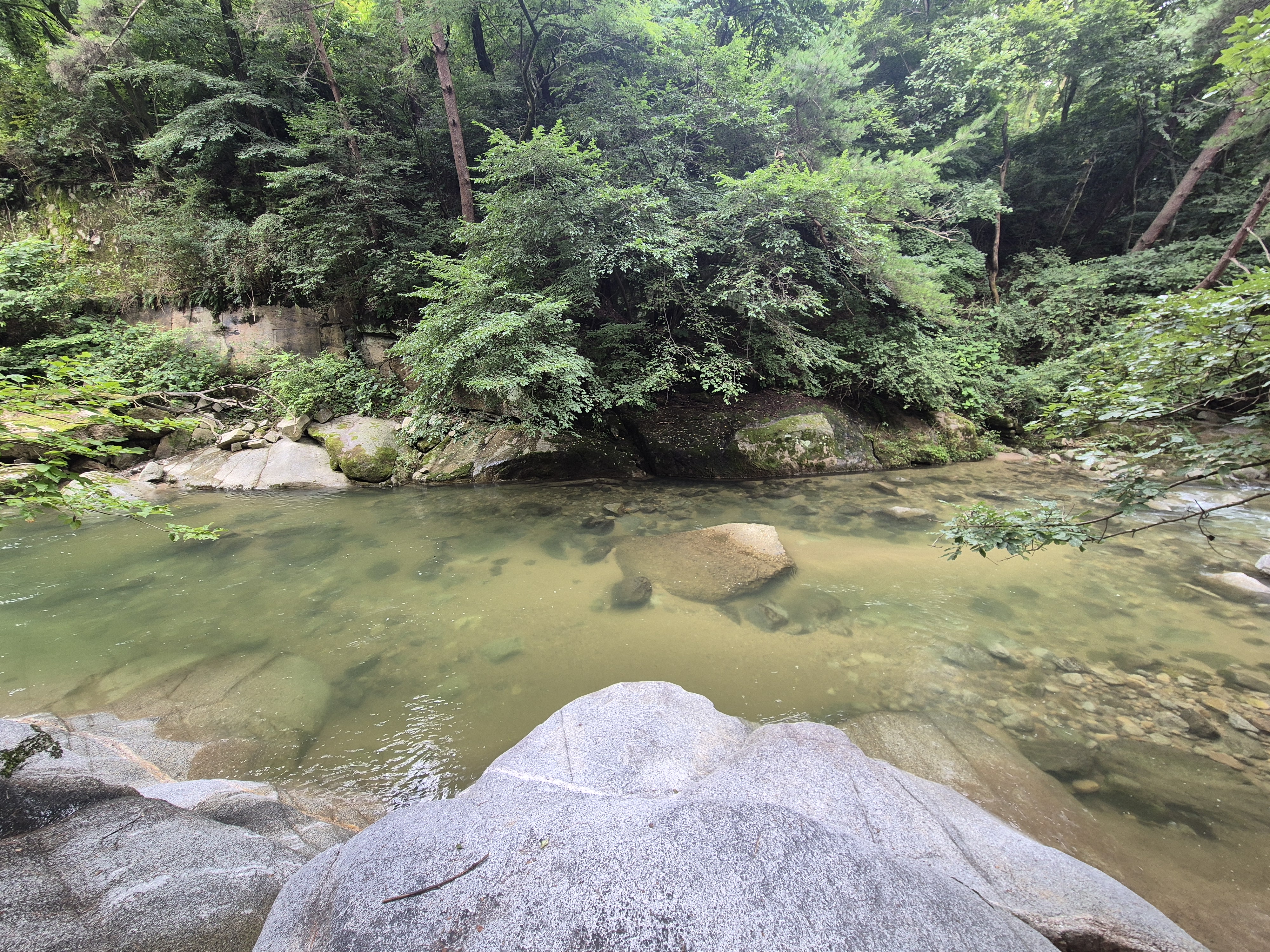 화강암반으로 이루어진 계곡 바닥 위로 유유히 흐르는 계곡물은 그야말로 옥빛 물결이다. 금방이라도 풍덩 뛰어들고 싶다.