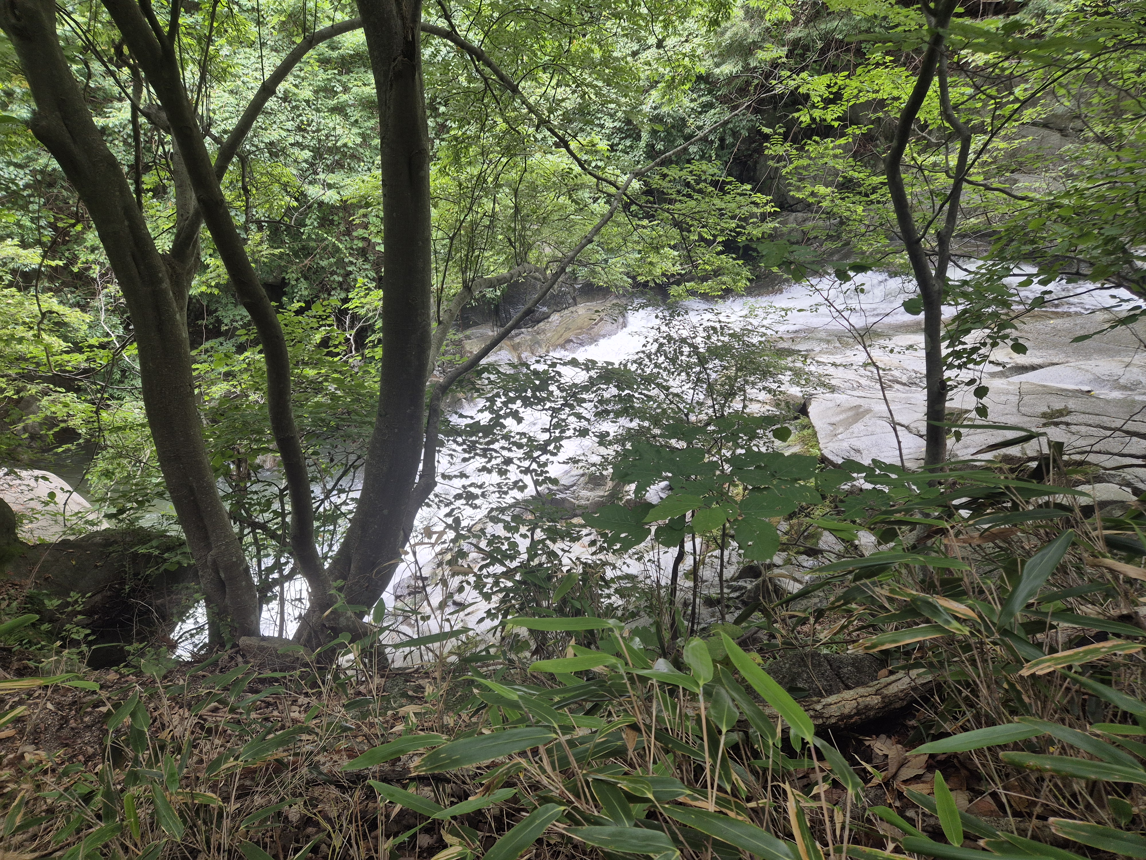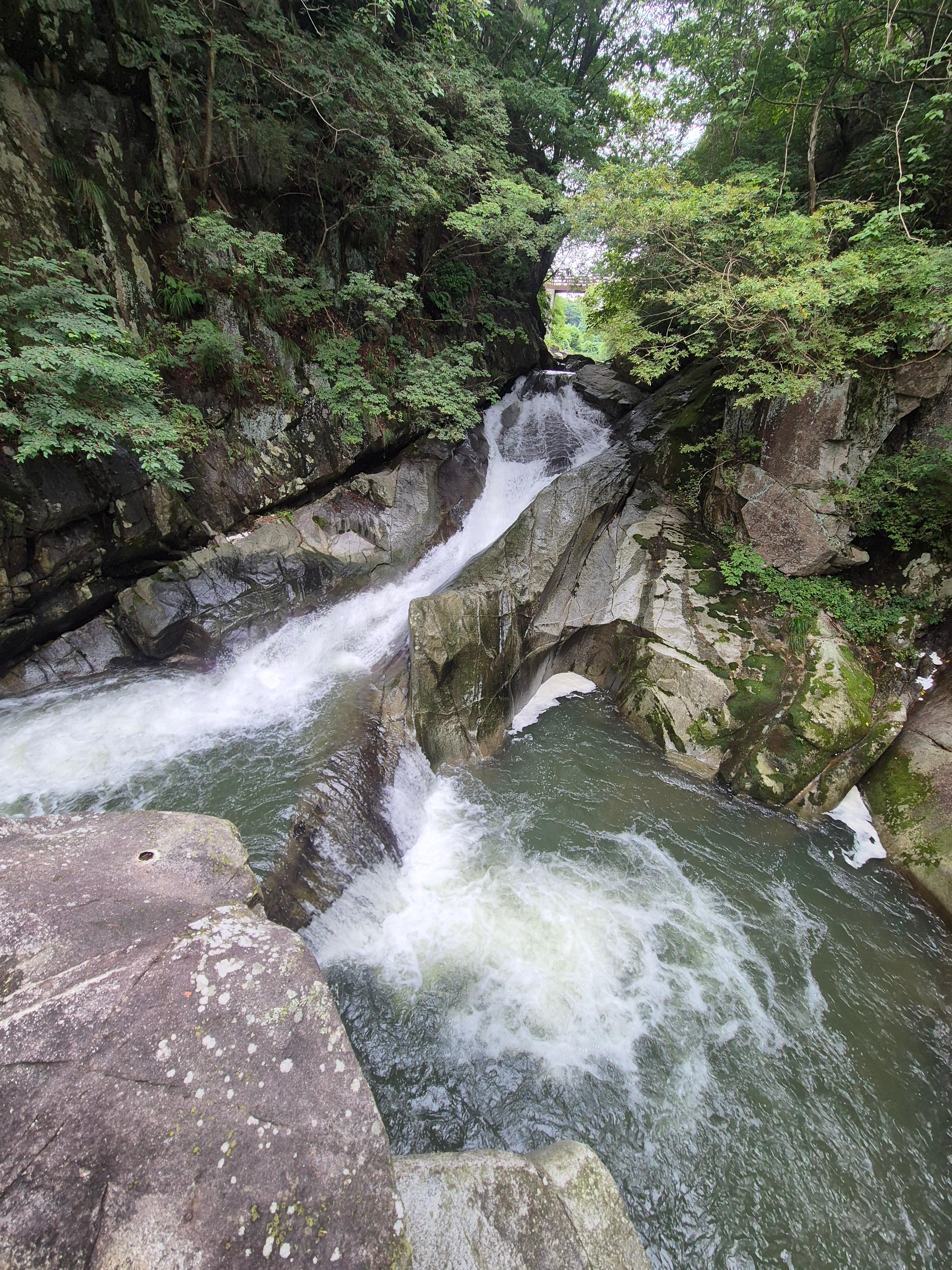 굽이쳐 흐르는 협곡 사이로 깊은 소가 이어지는데 너럭바위 앞에서 이 협곡까지를 용소라고 한다.