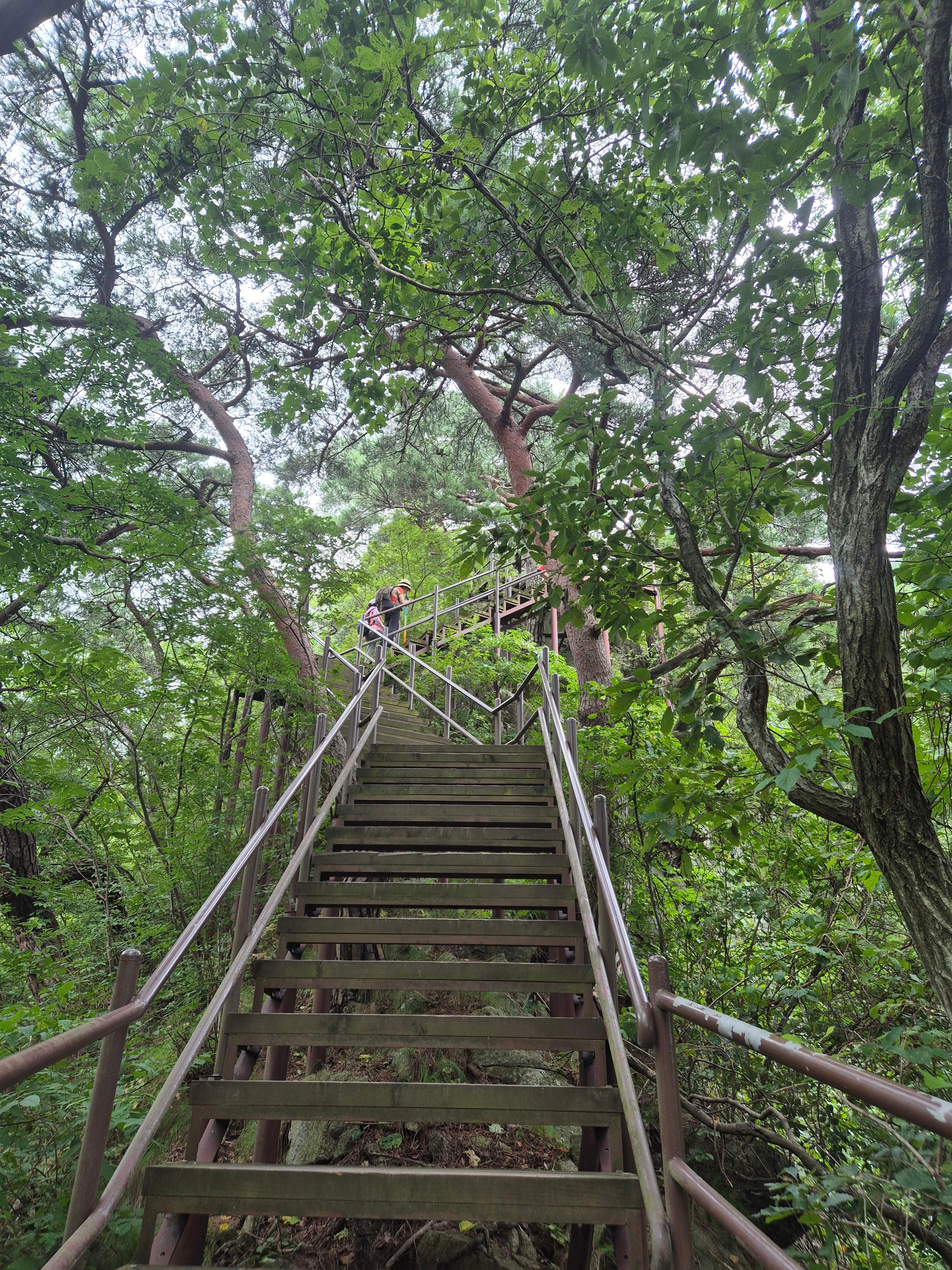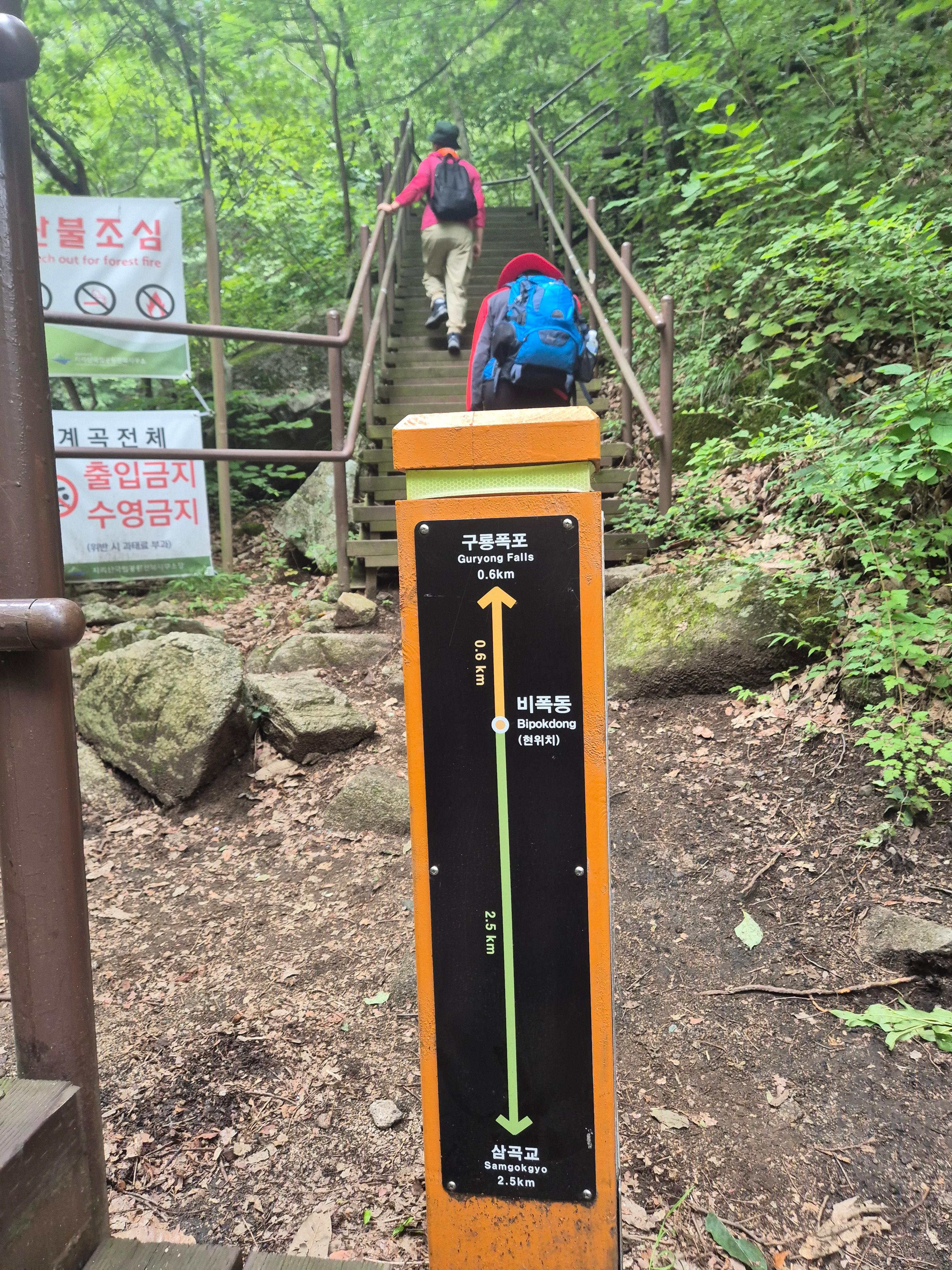 경천벽을 거쳐 구룡폭포를 오르려면 이곳 급경사 오름 데크길을 올라야 한다. 아마 구룡계곡에서 가장 급경사 오름길이다.