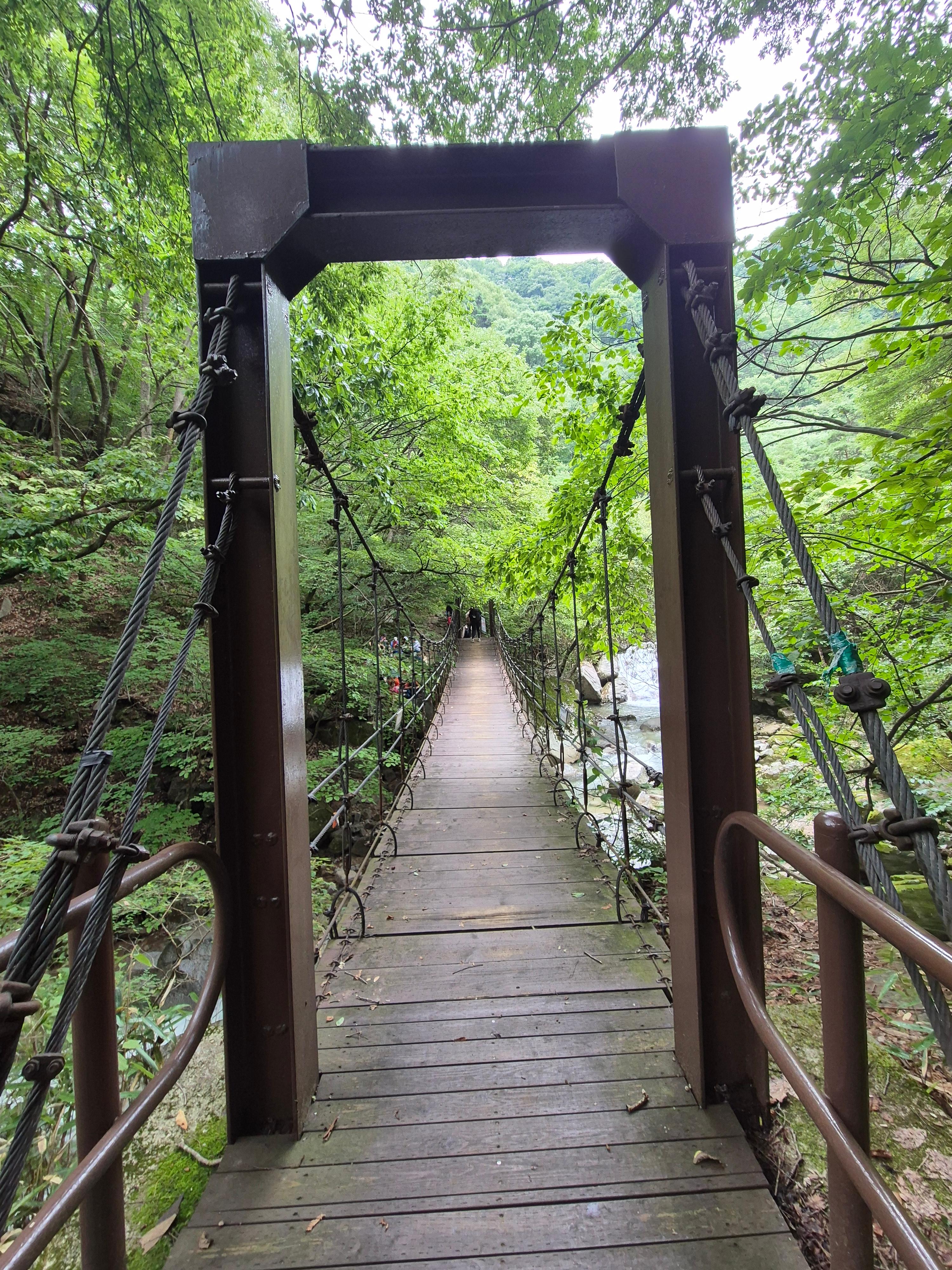 이제 7곡인 비폭등으로 향한다. 협곡에는 가끔씩 이런 다리가 있다. 협곡 경사면이 빗물에 허물져 위험한 곳은 이렇게 안전하게 다리를 놓아 안전한 탐방길을 만들어 놓았다. 국립공원에 감사한다.