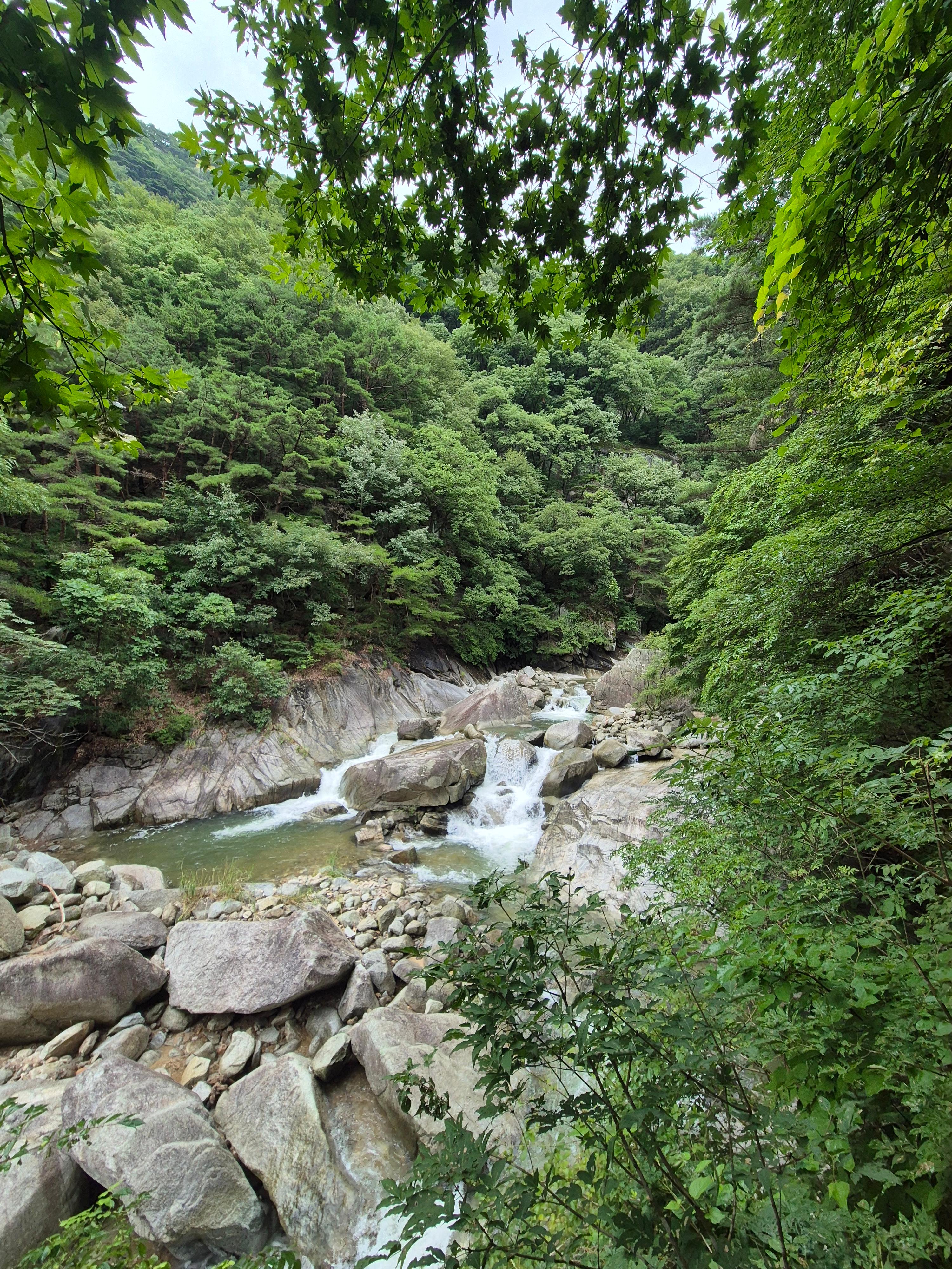 차츰 녹음이 짙어가는 계곡 사이로 맑은 계곡물이 흐른다.