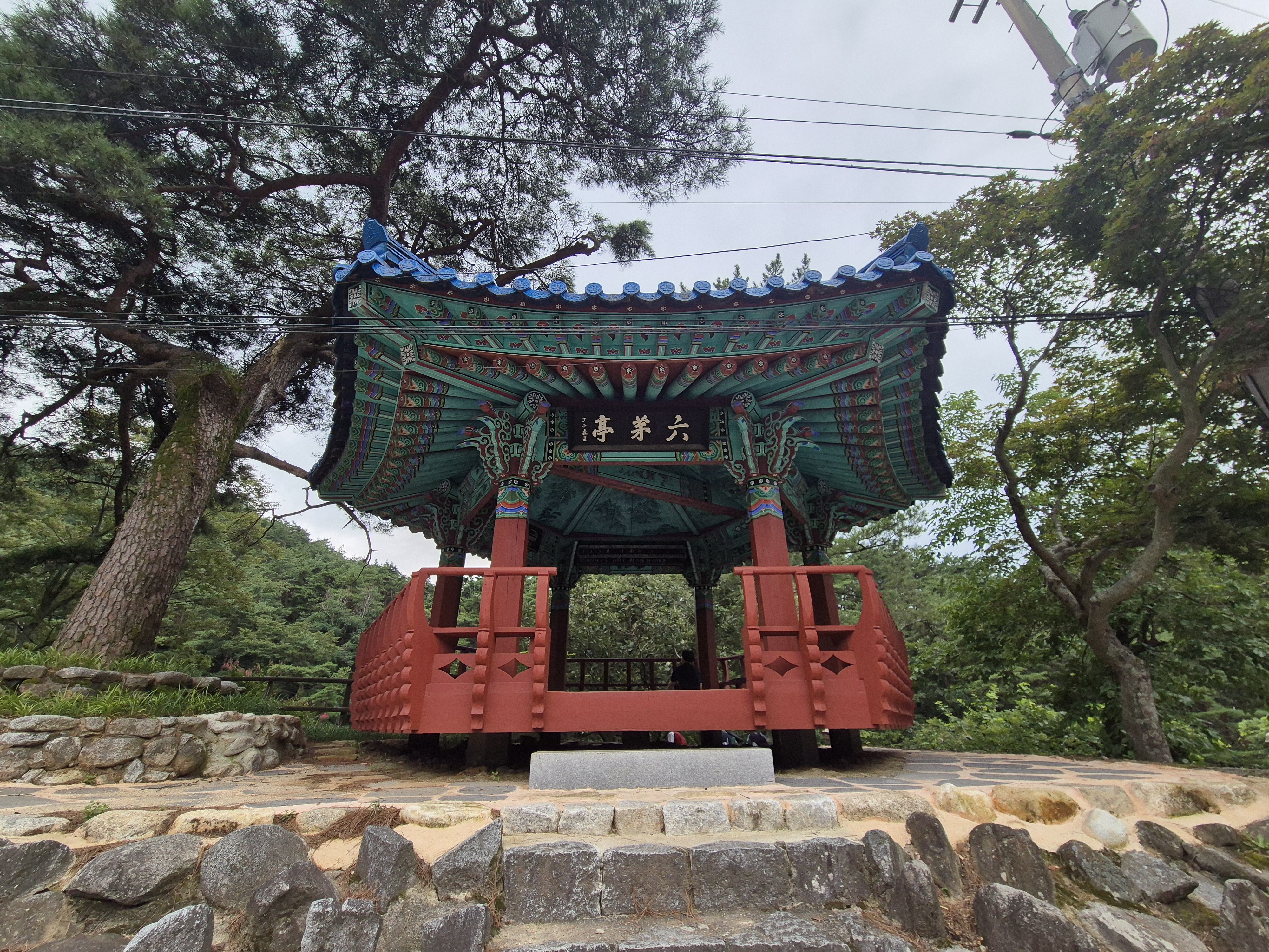 육모정. 400여 년 전 선비 유림들이 용소 앞 너럭바위 위에 6 각형 모양의 정자를 지어 육모정이라 이름 지었다. 1960년 현 위치에 복원