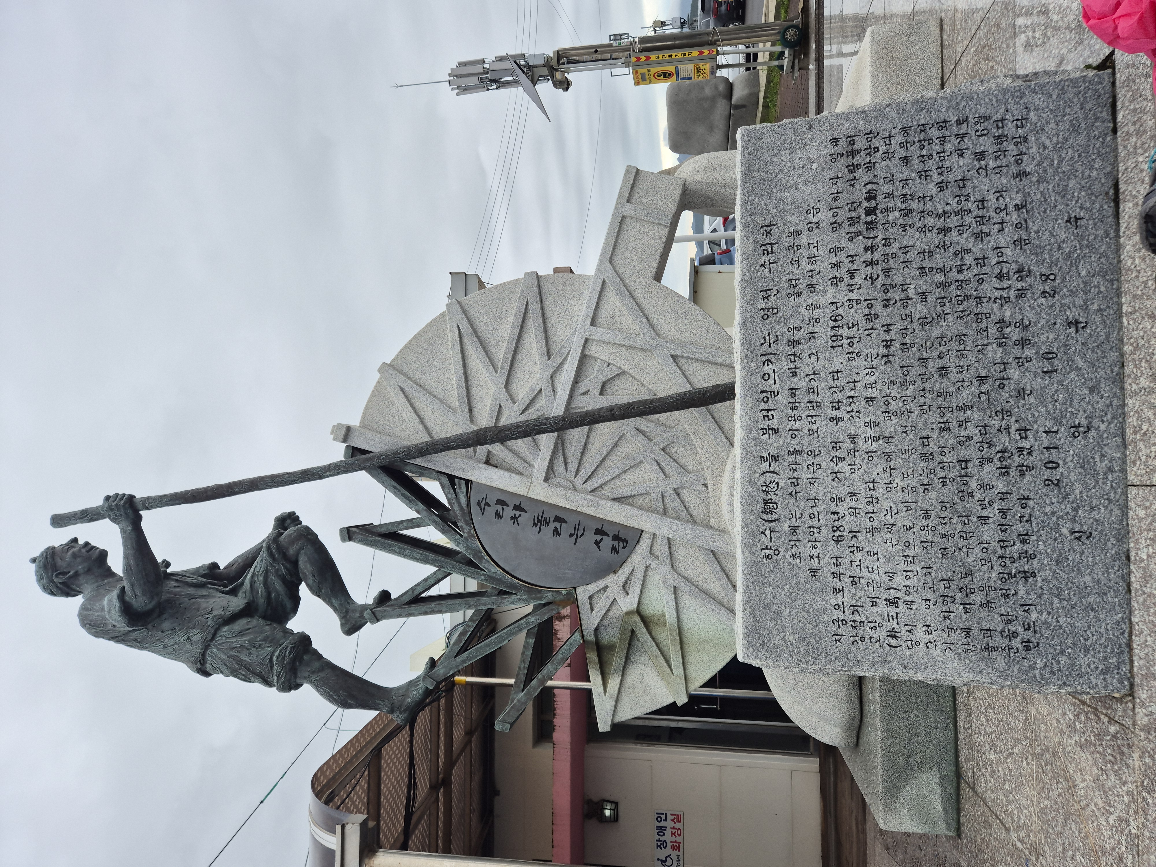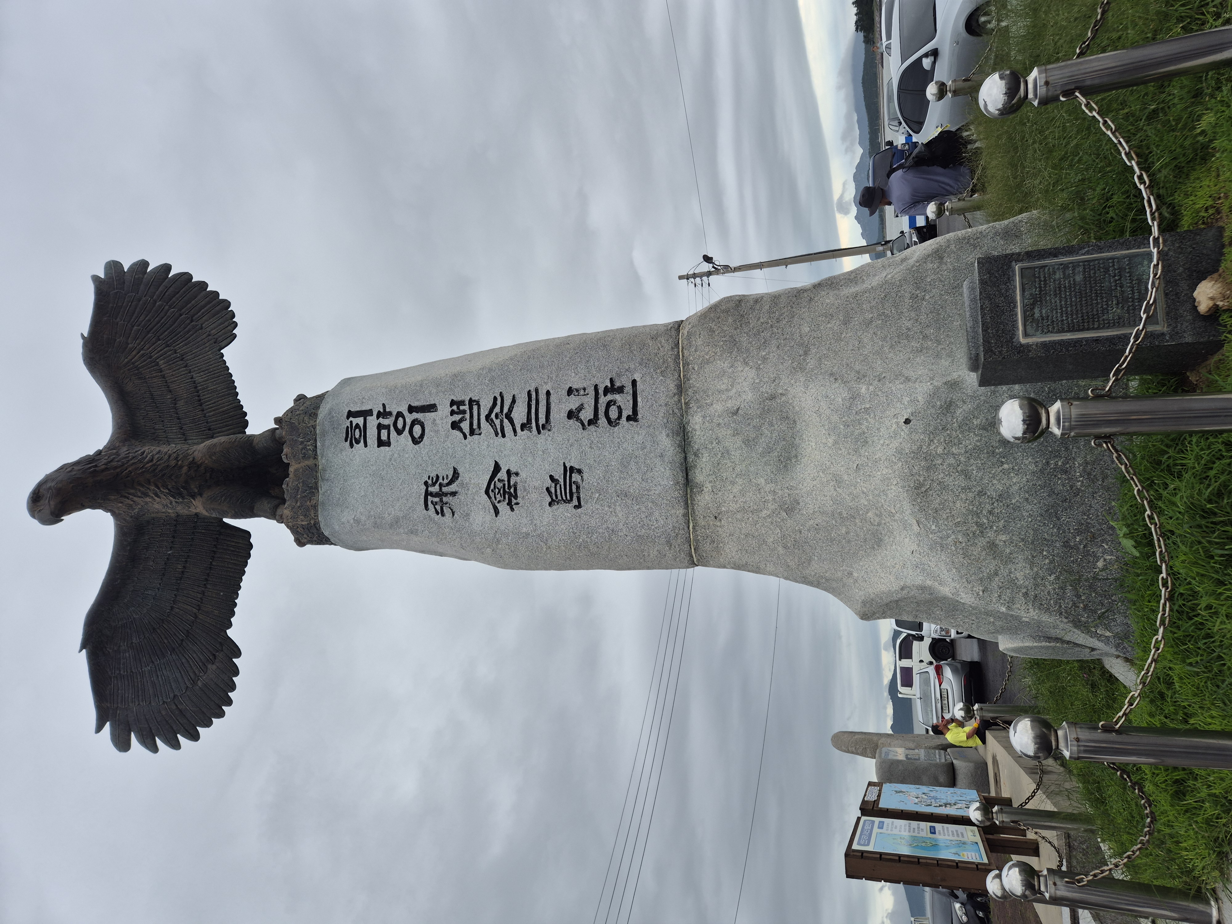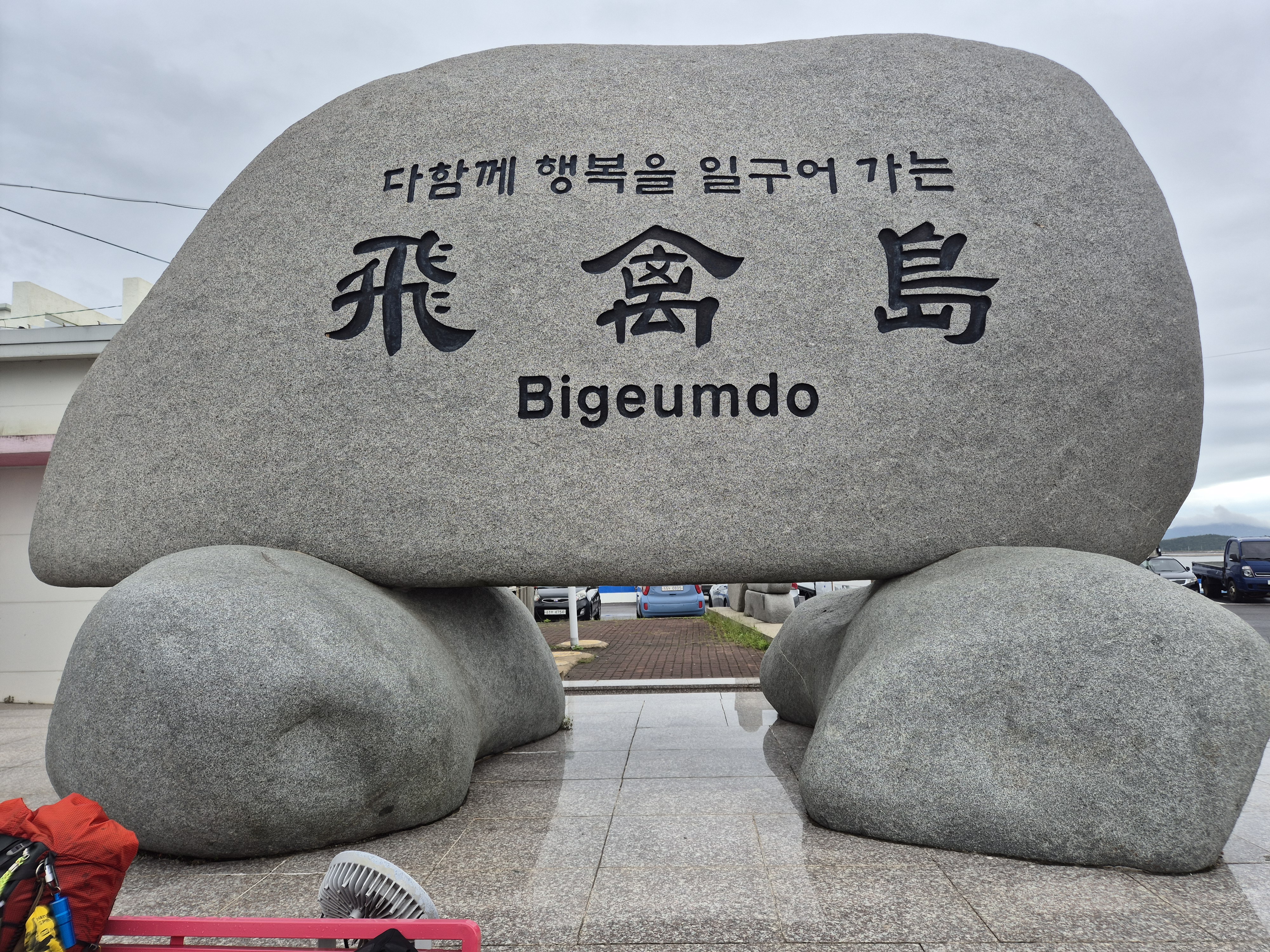 희망이 샘솟는 신안 비금도 상징인 매 탑 앞에서 가산항 도착 기념