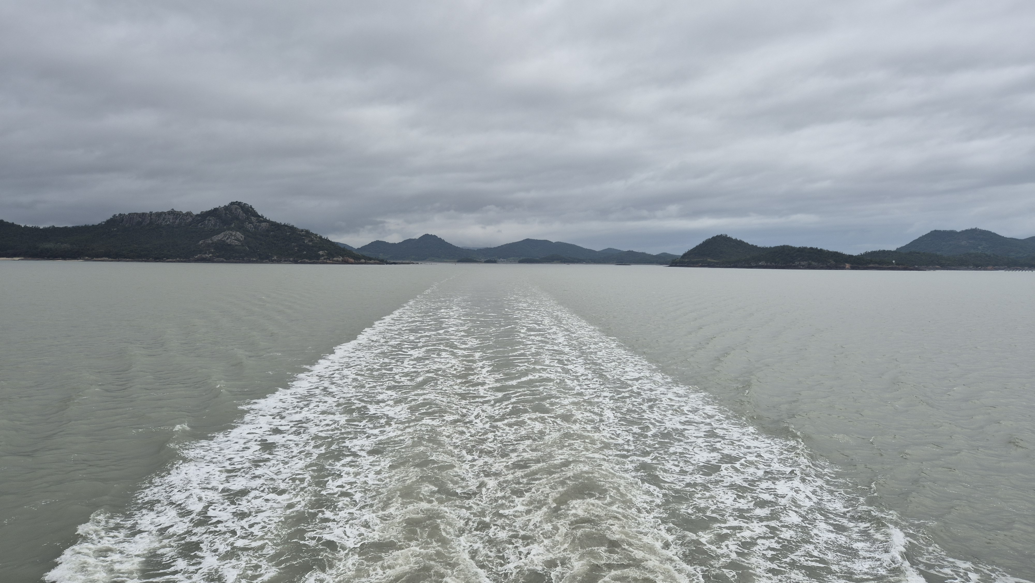비금도 가산항으로 출항하는 여객선 선미에서 바다를 가로지르며 유유히 떠가는 뱃길을 담았다.