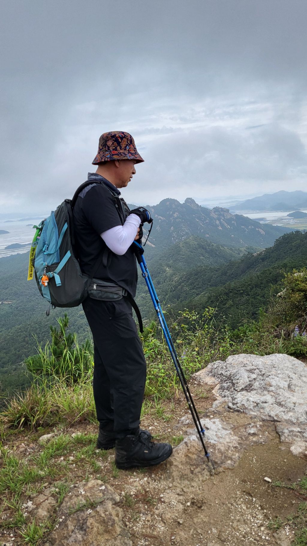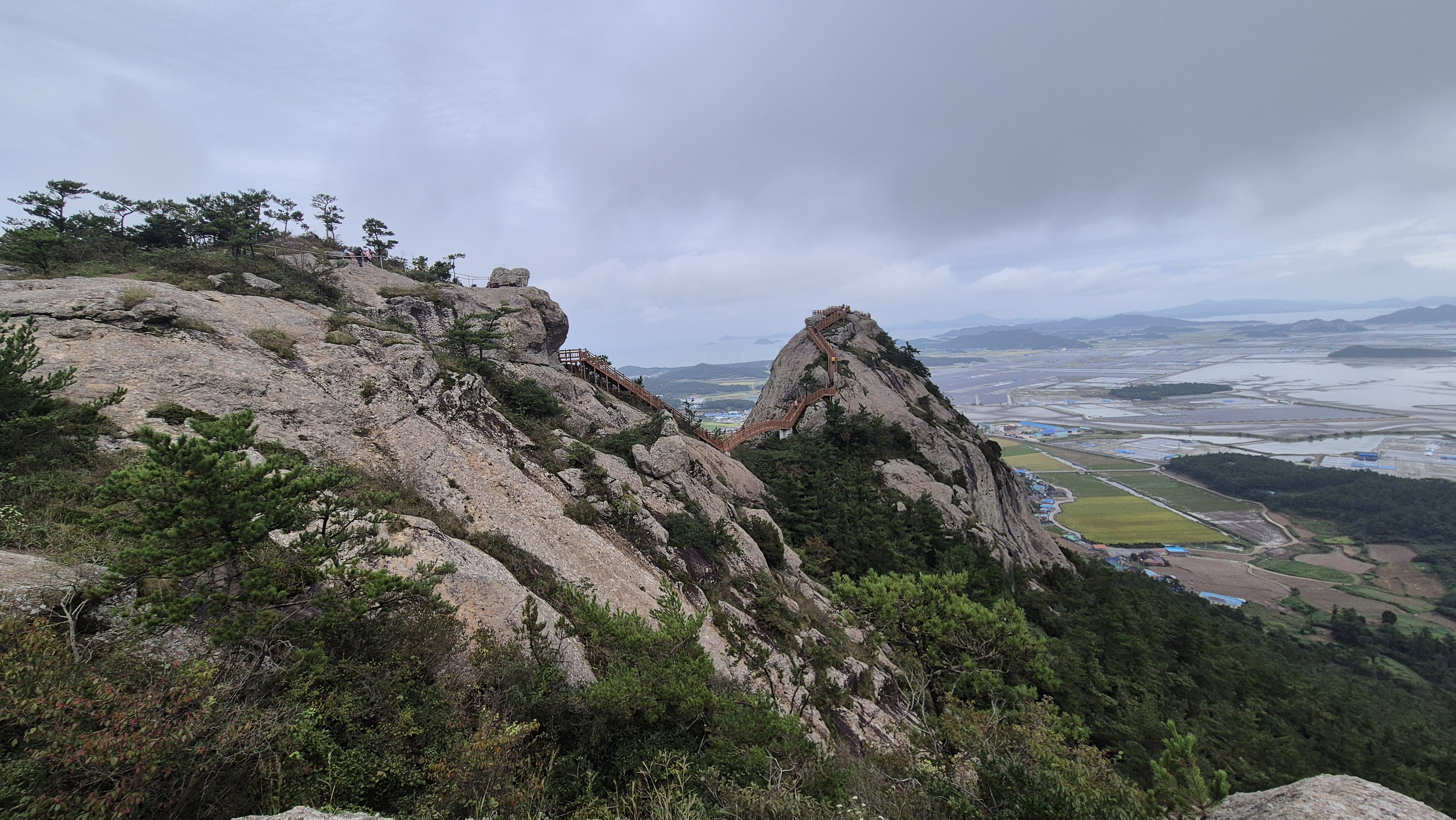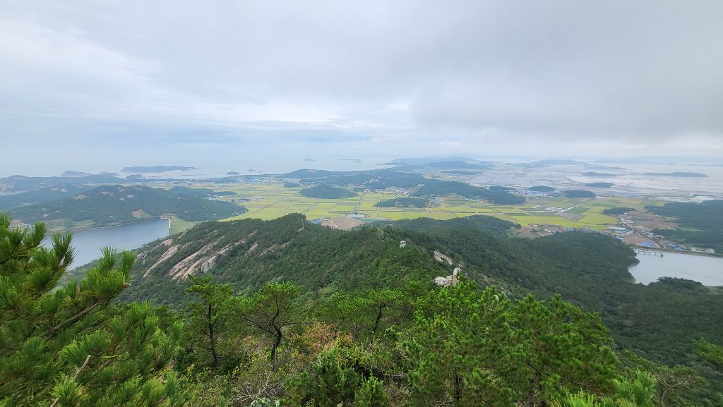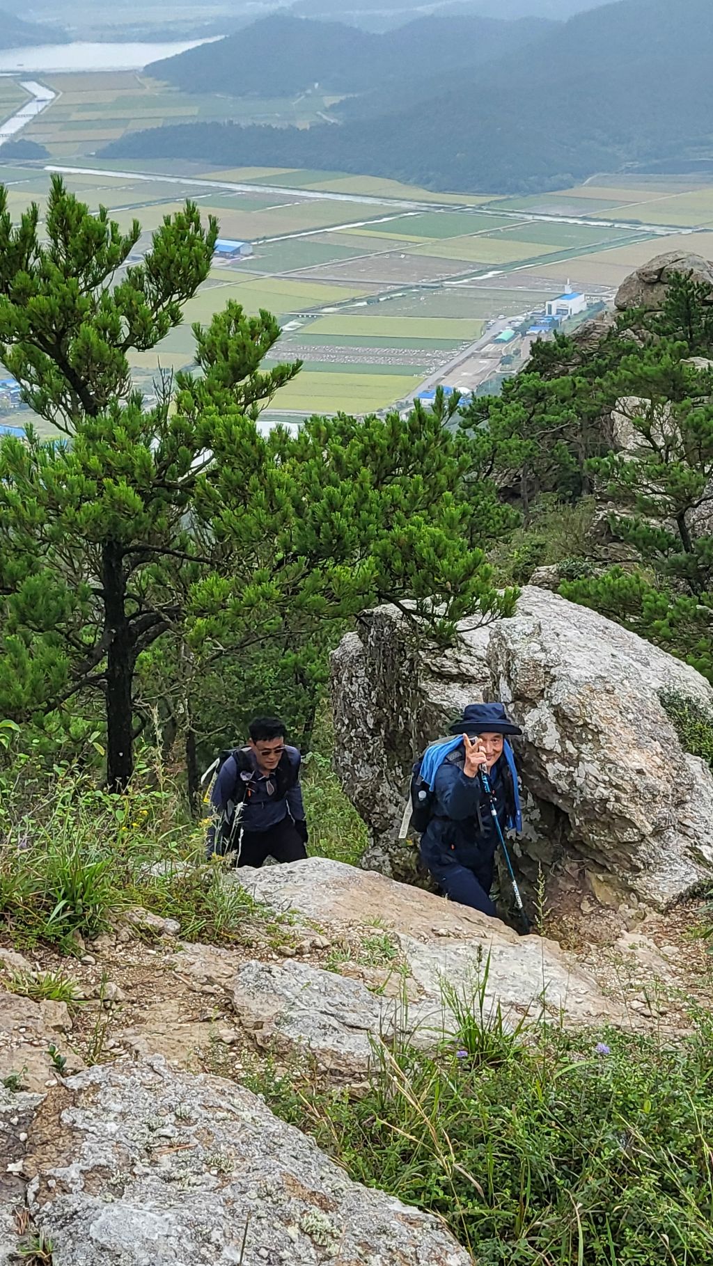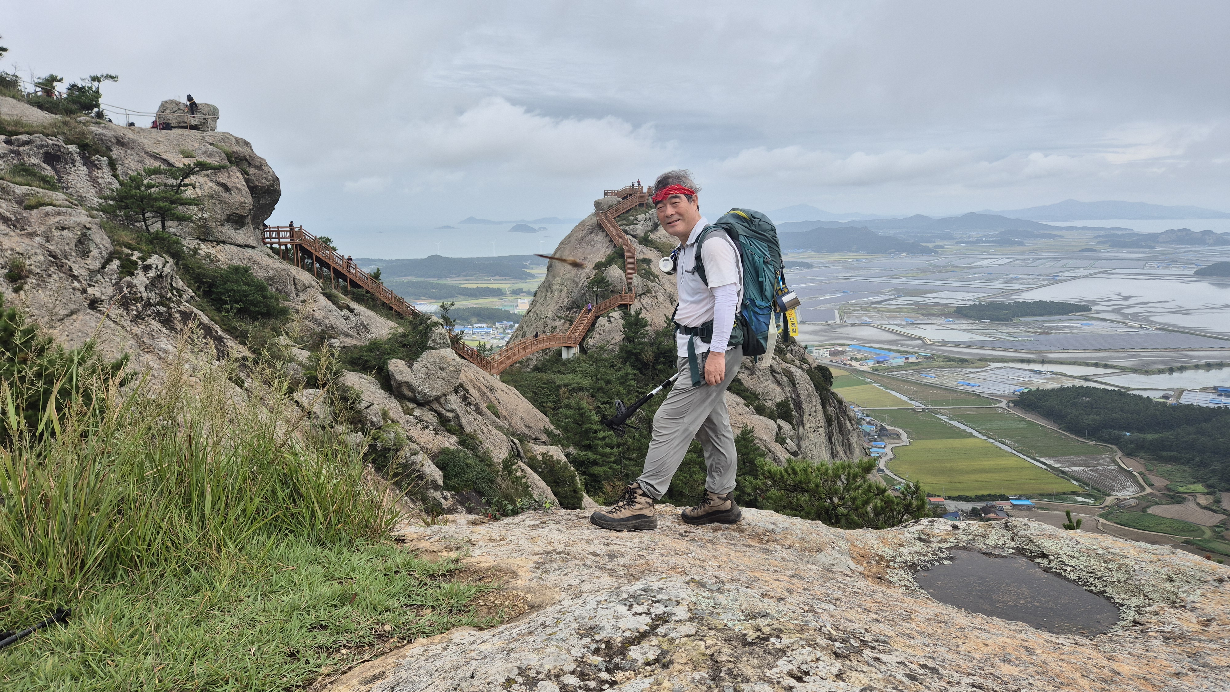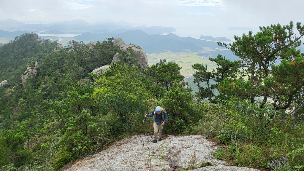암릉을 오르면서 발아래 노랗게 익어가는 신안 비금도 들녘도 바라보고