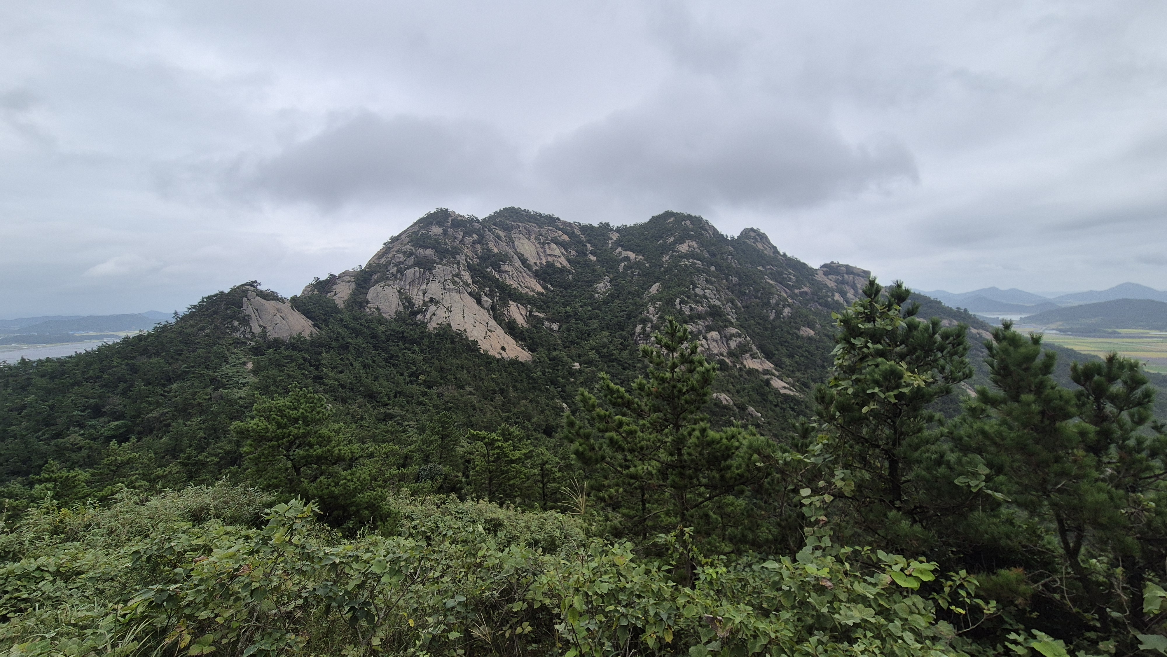 투구봉 정상에서 바라본 그림산 정상과 걸어온 산줄기