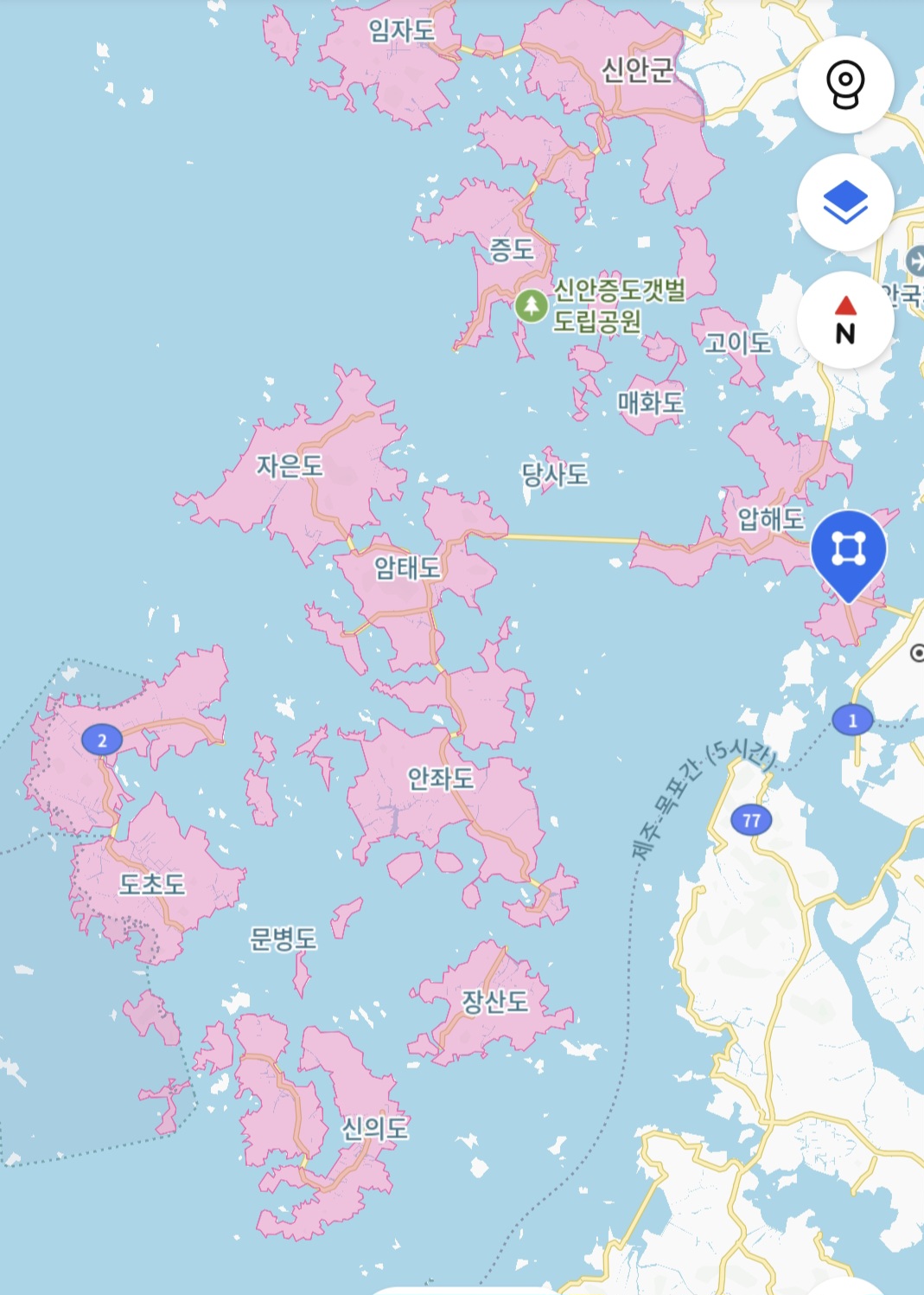 오늘 가고자 한 비금도는 자은도와 도초도 사이에 있으며 도초도와는 다리로 연결되었으나 아직 자은도와는 다리가 연결되지 않아 섬으로 남아 있어 배를 타고 들어가야 한다.