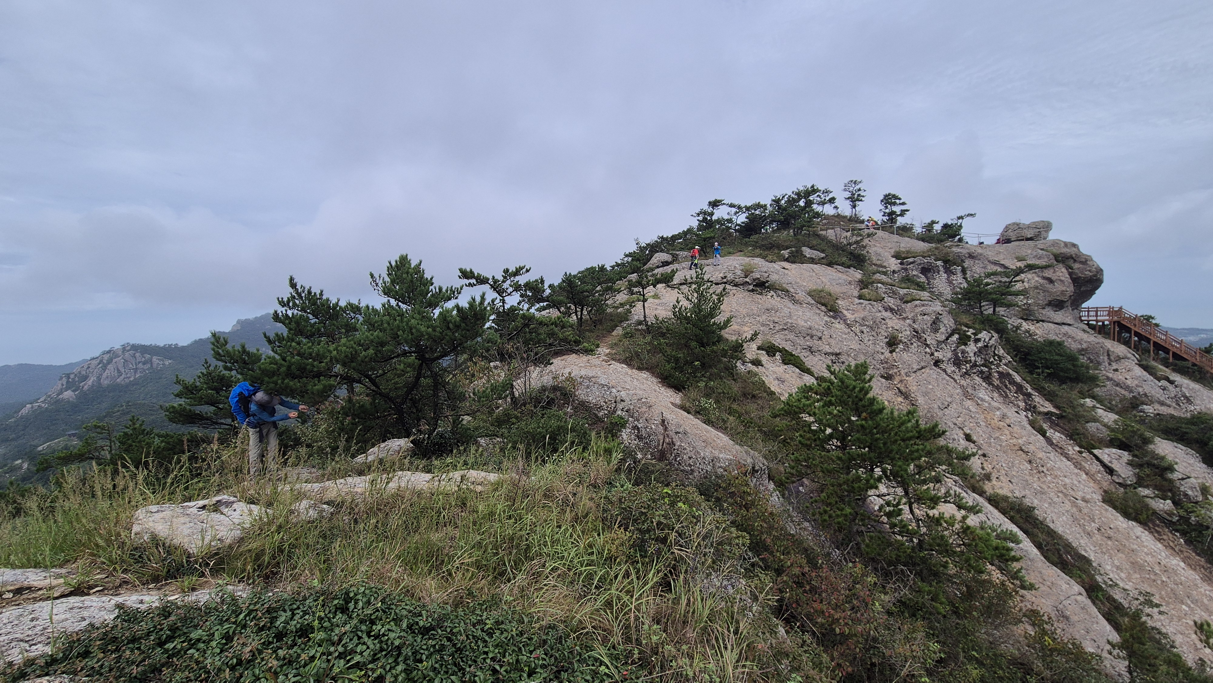 투구봉 급경사 하산길을 지나 또 한 번의 암릉길을 오르고