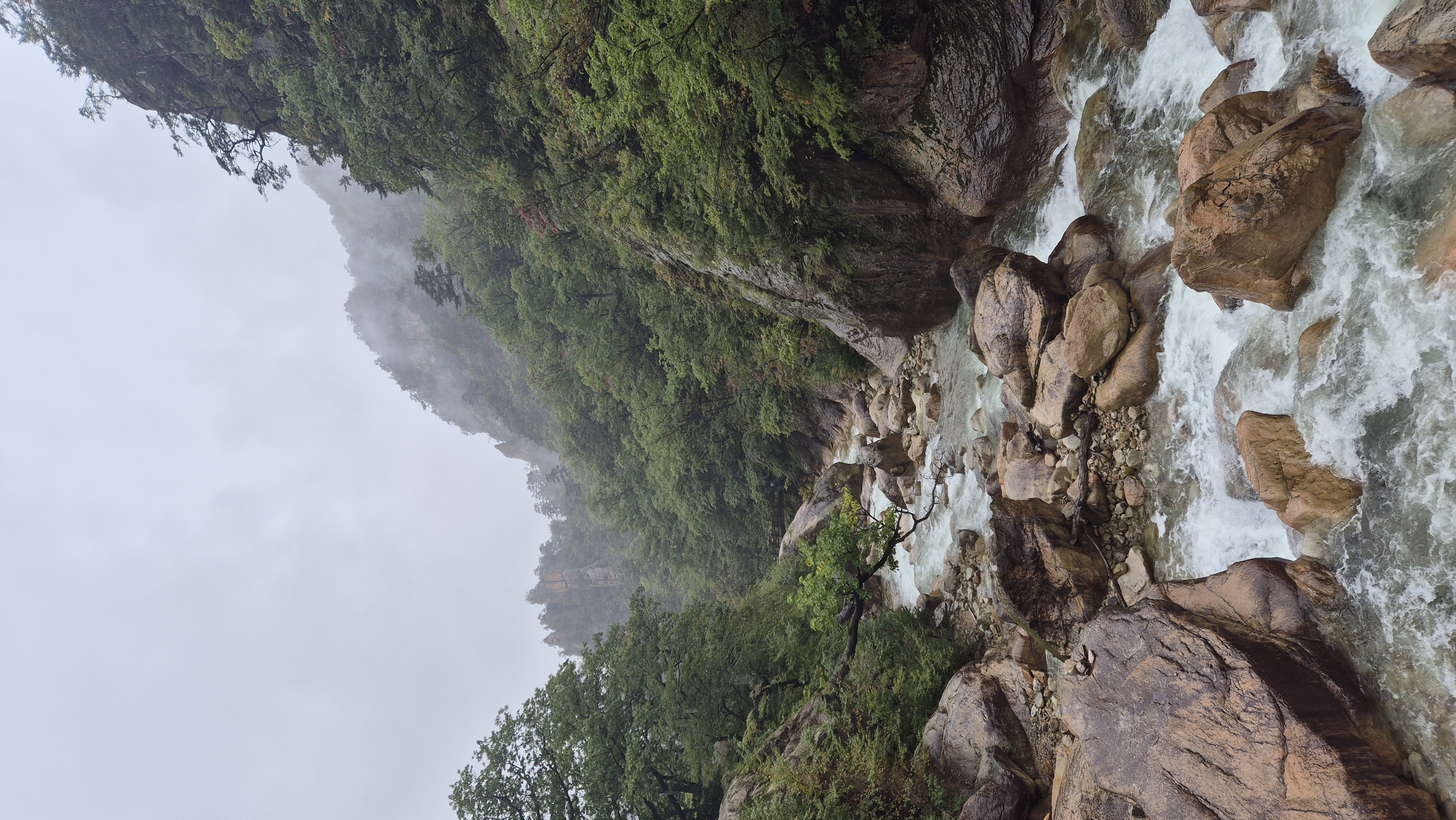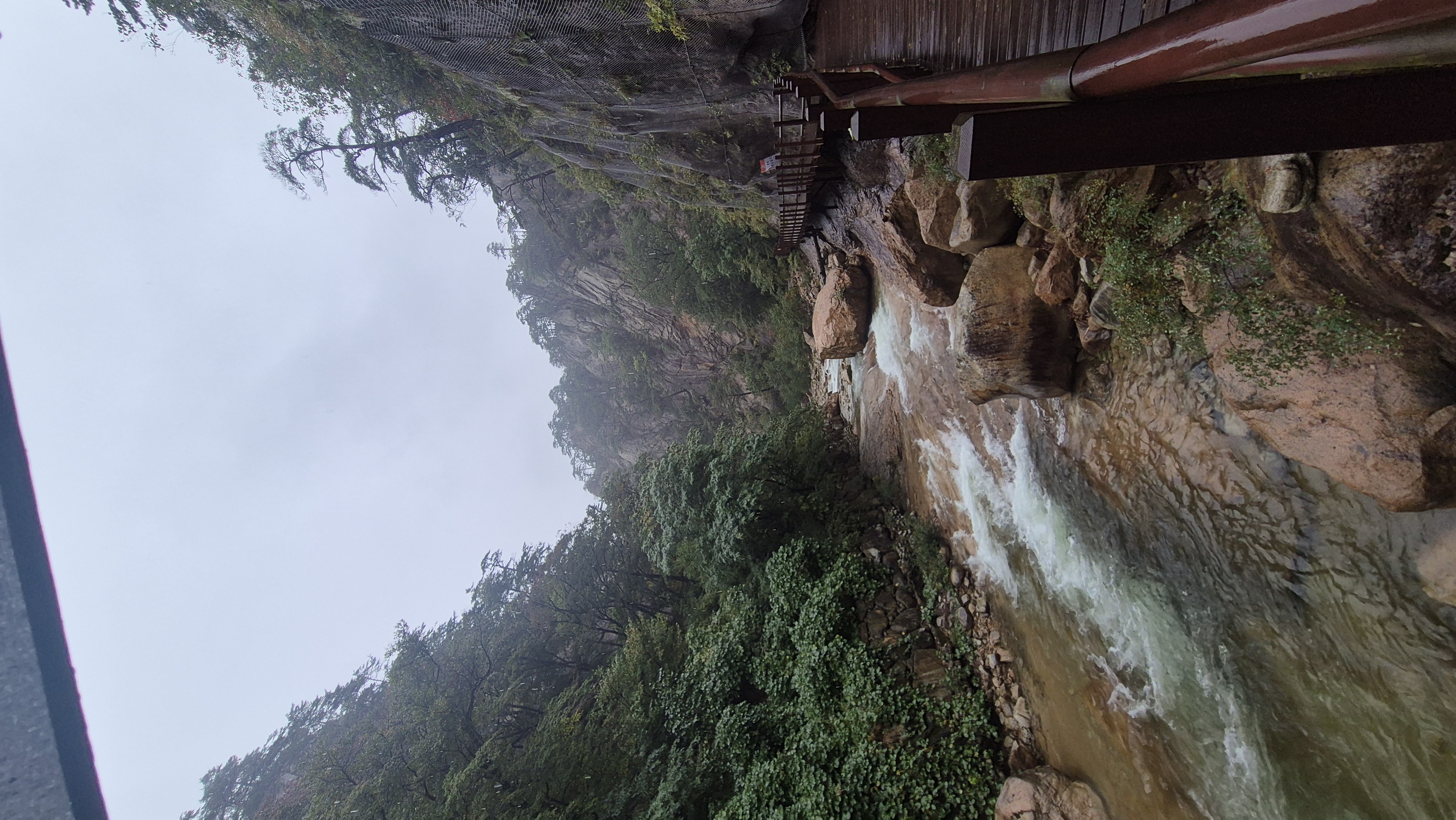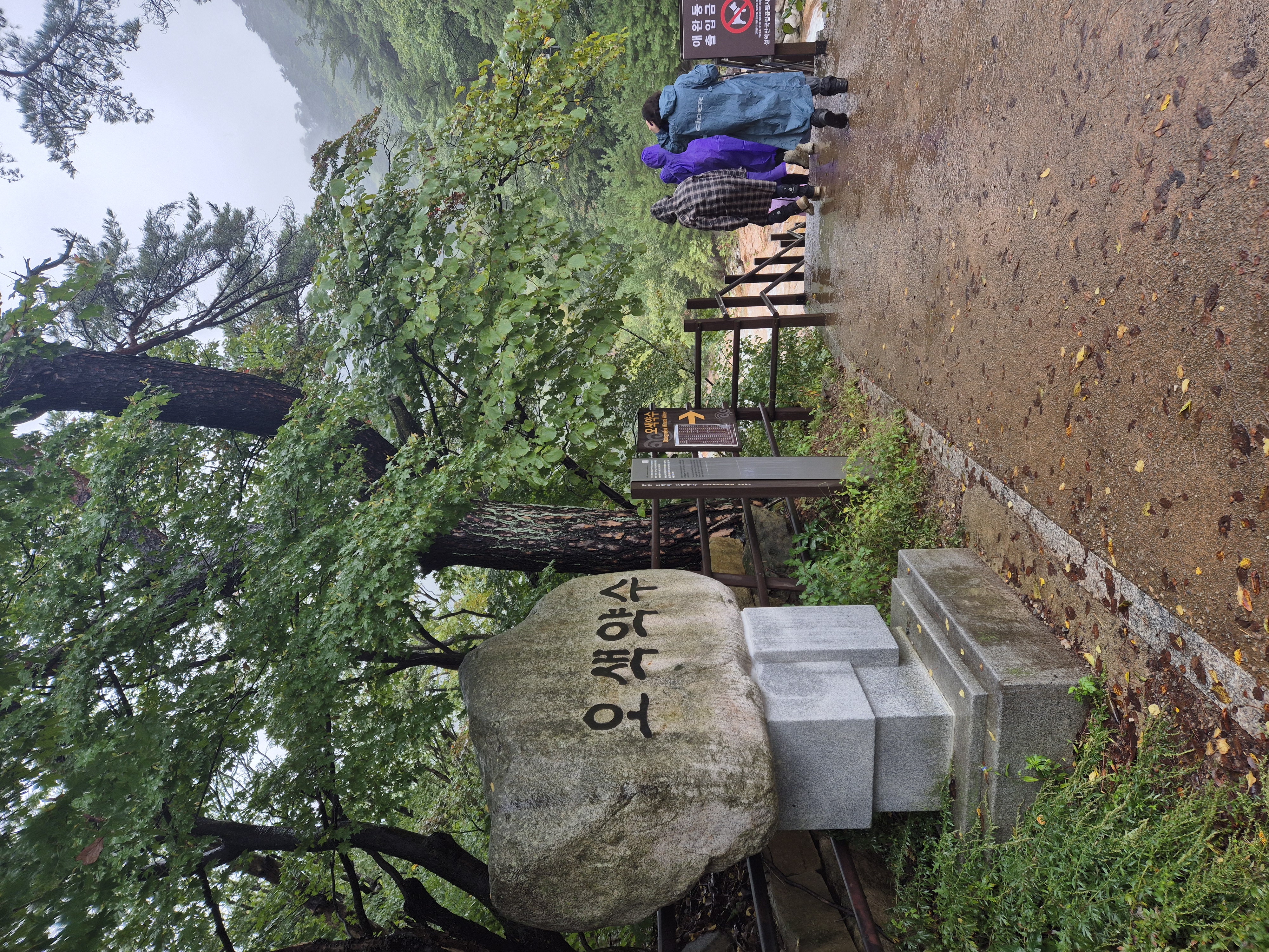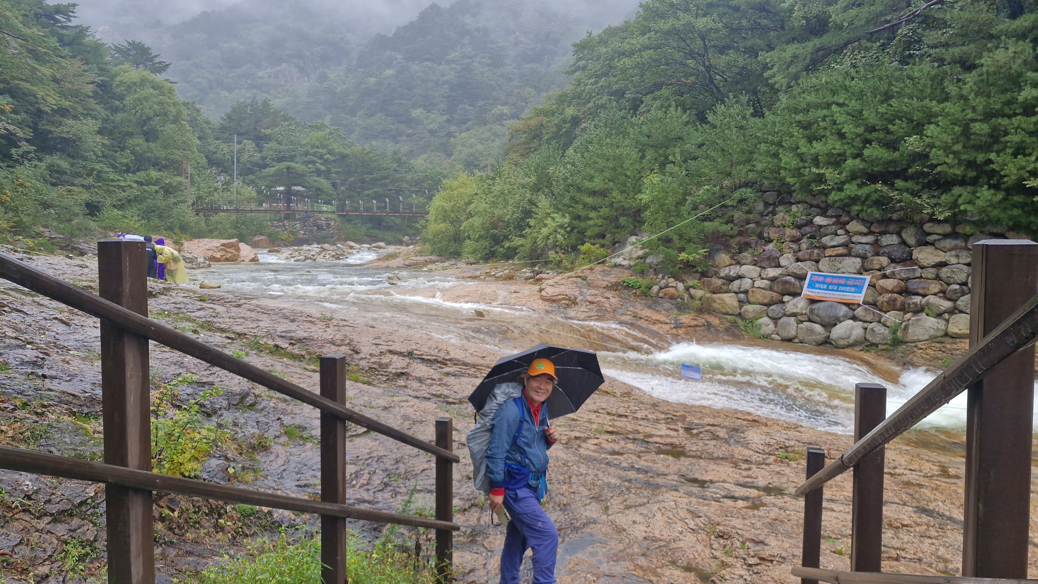 초입부터 맑게 흐르는 계곡물이 압권이다. 보슬비가 내리는 계곡은 청정한 공기와 울창한 숲 사이로 우렁차게 들려오는 계곡물소리로 가득 차다. 상쾌하다. 신선하다.