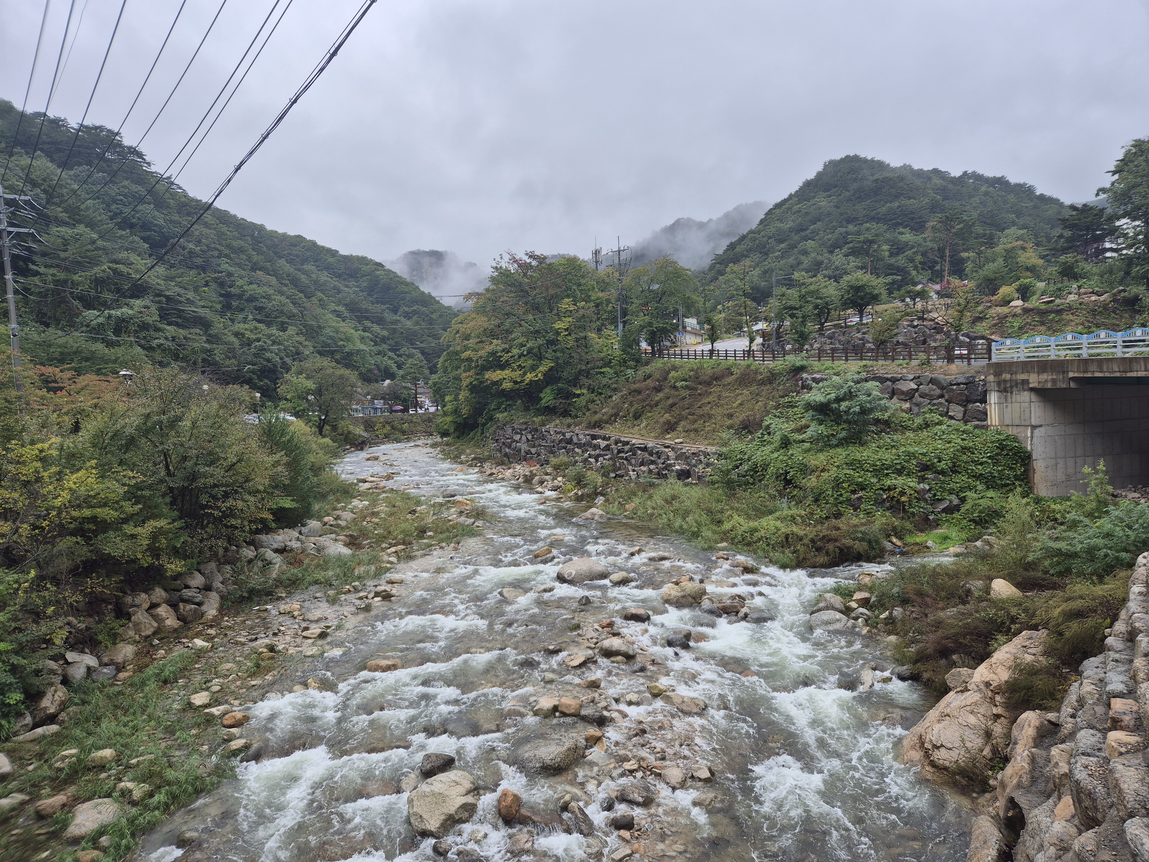 굽이굽이 짙은 안개에 묻혀 있는 주전골로 흐르는 맑은 청수