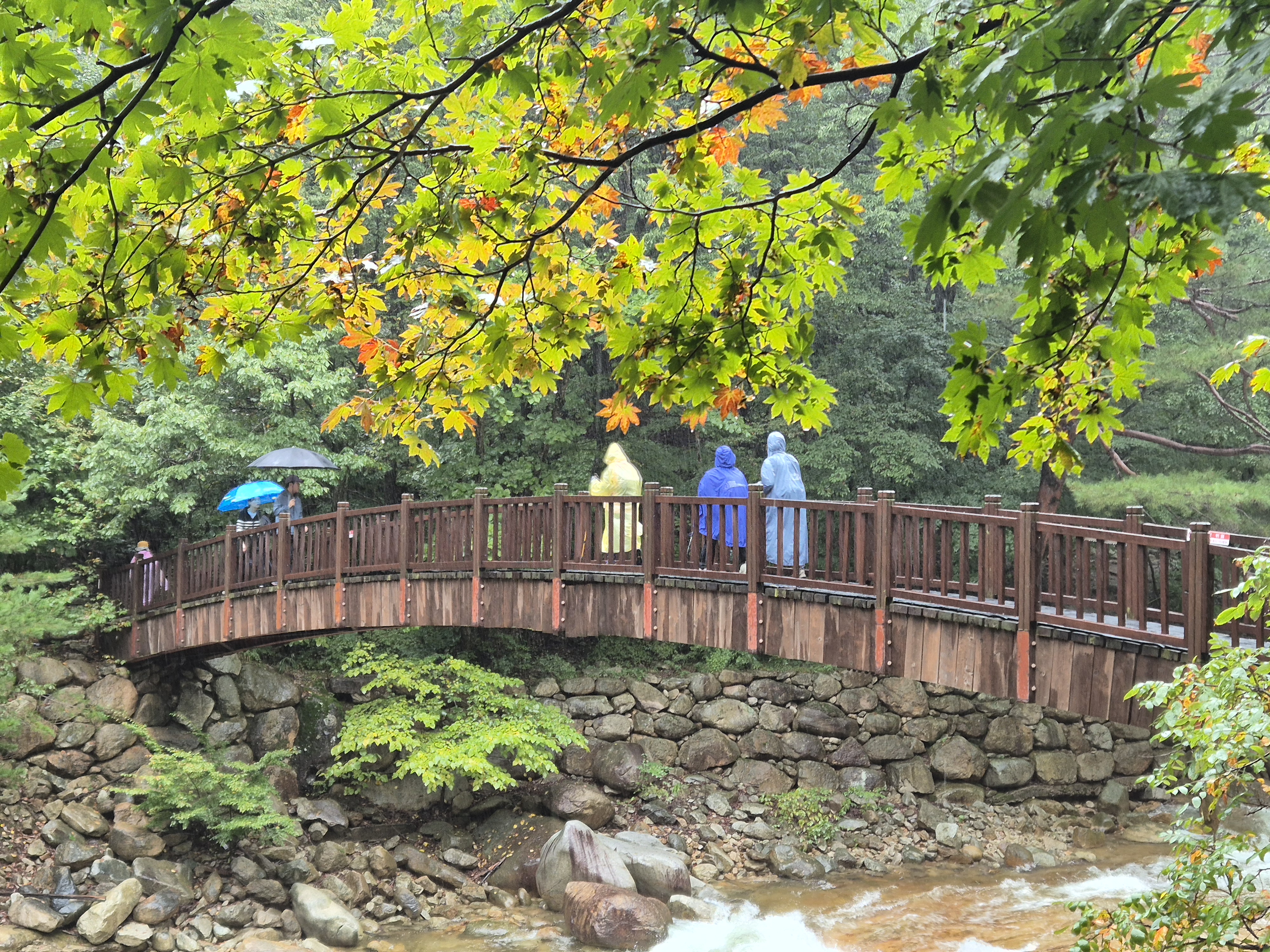 용소폭포와 헤어지면 되돌아본 지나온 다리와 아름다운 풍광
