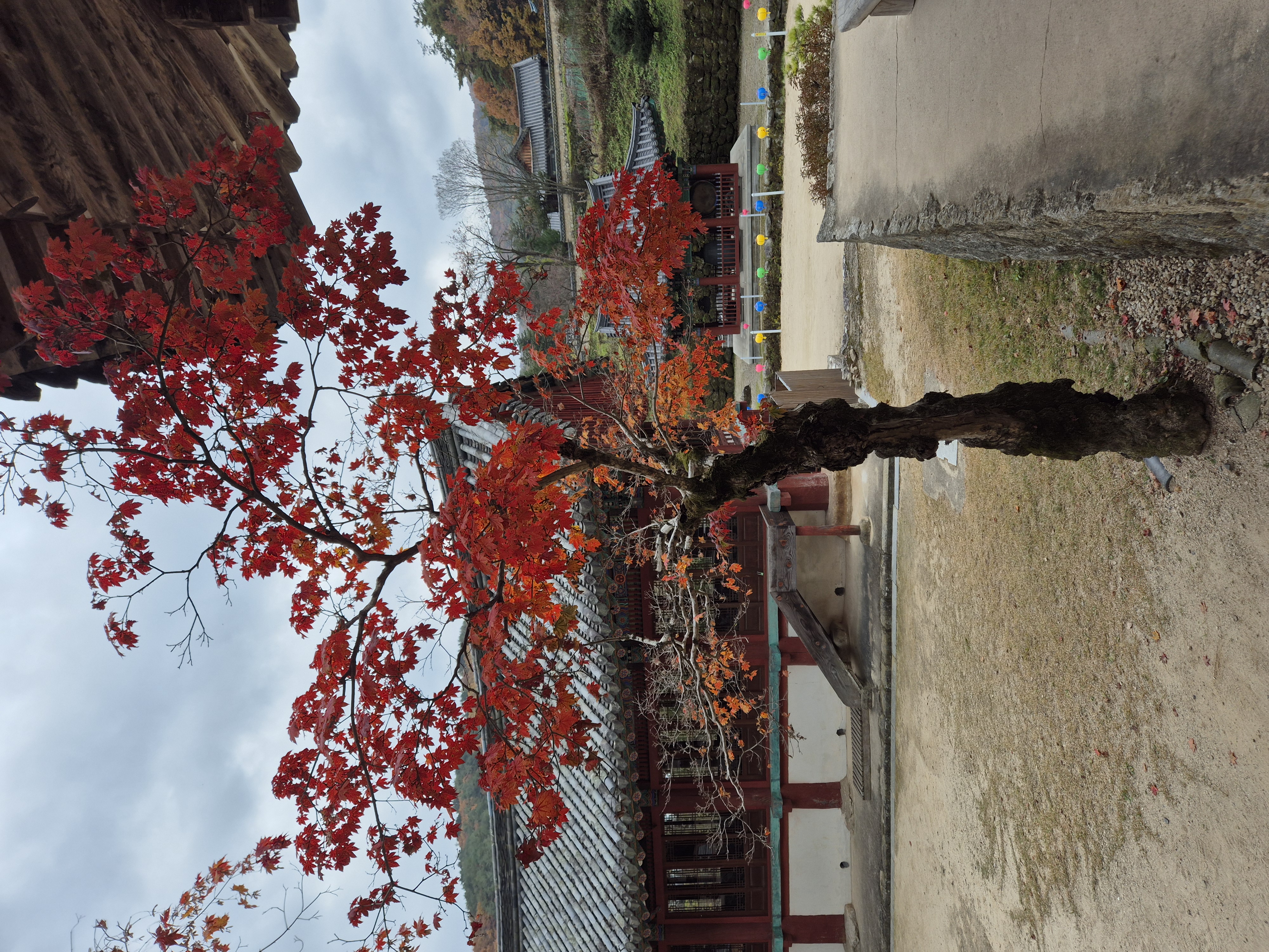 육화료 옆 붉게 물든 단풍나무.
