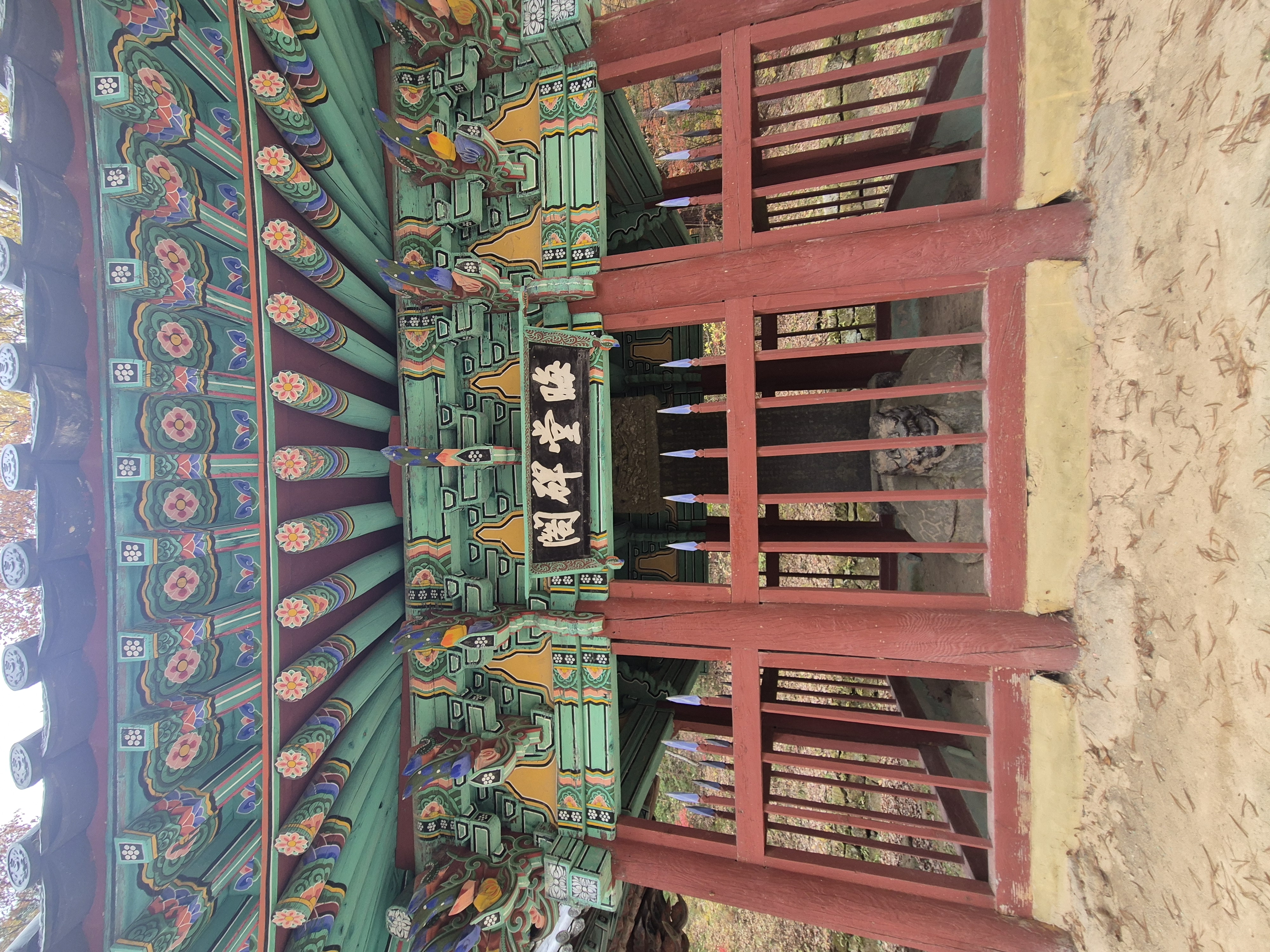 붉은 단풍으로 물들어가고 있는 사천왕문 앞 풍광