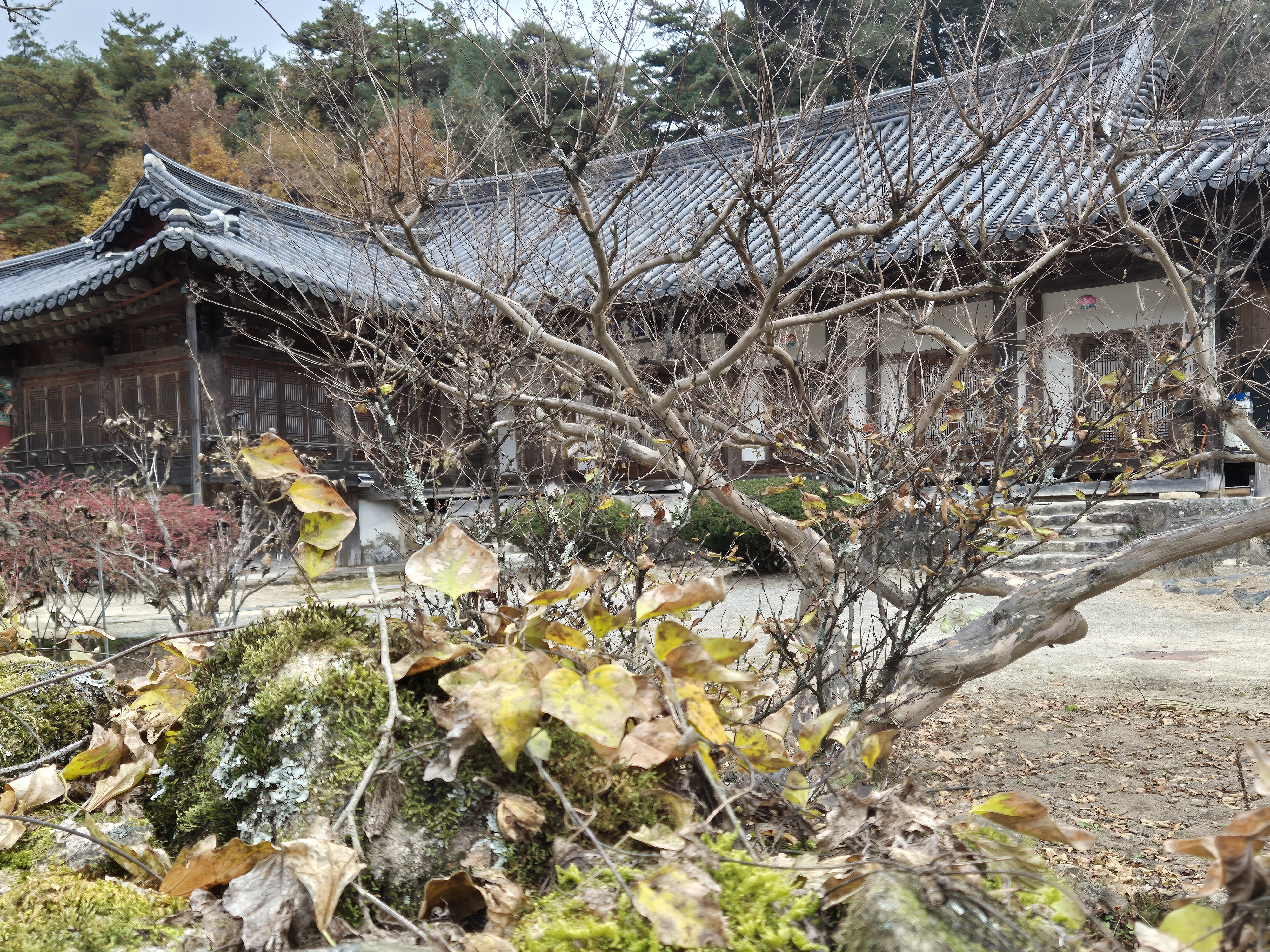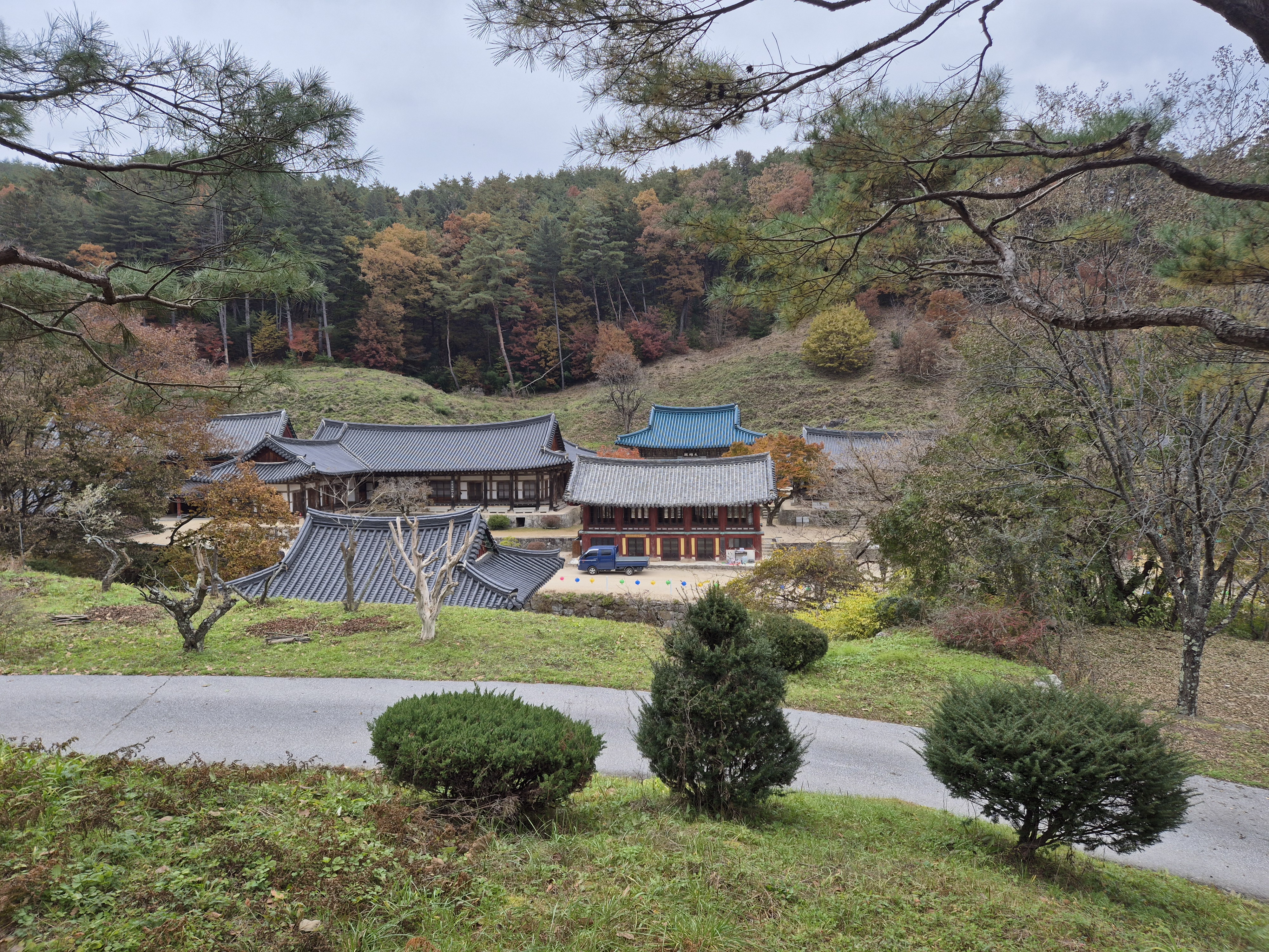 극락전으로 가는 길목에서 바라본 대웅전 일원 전경