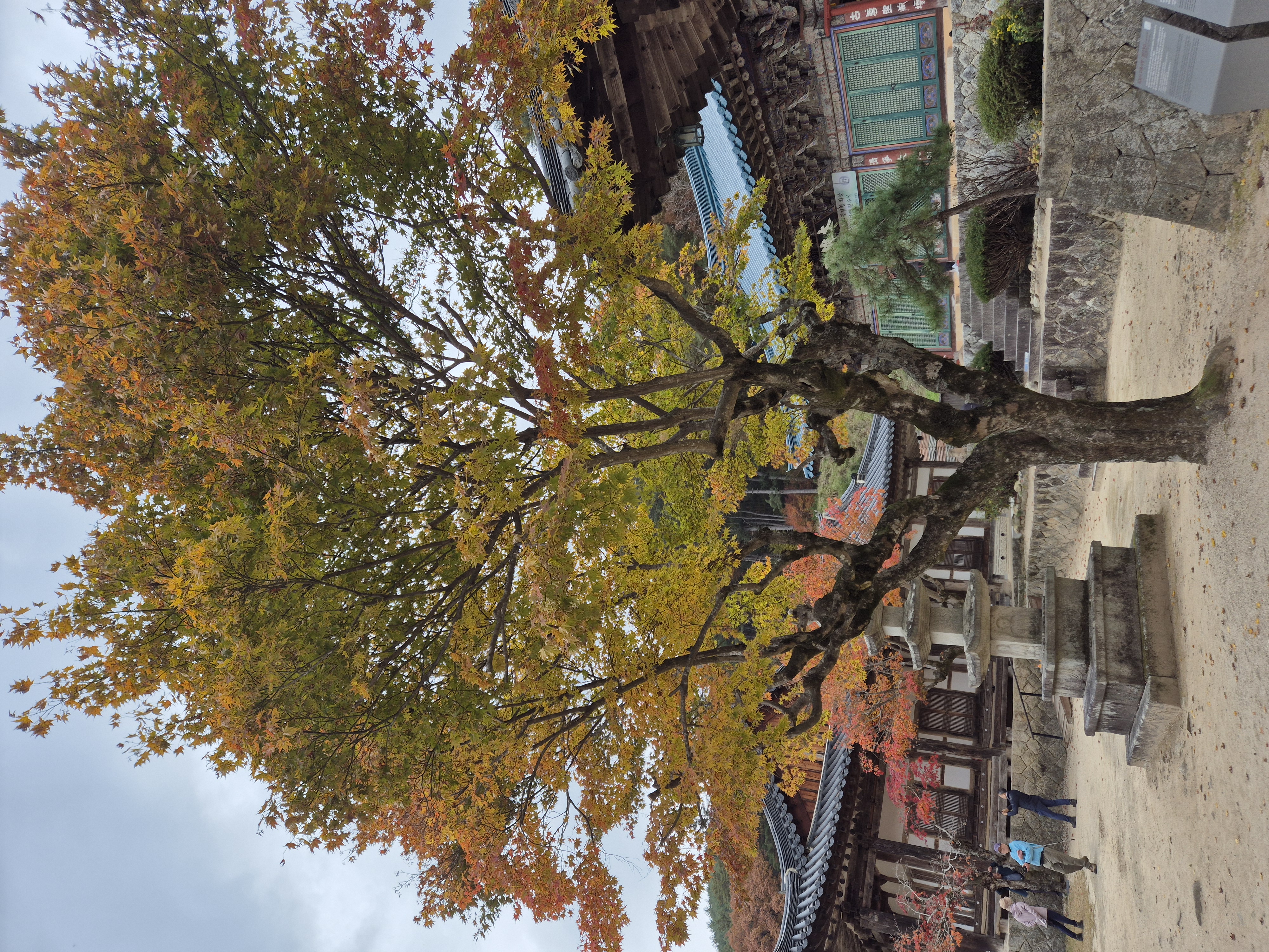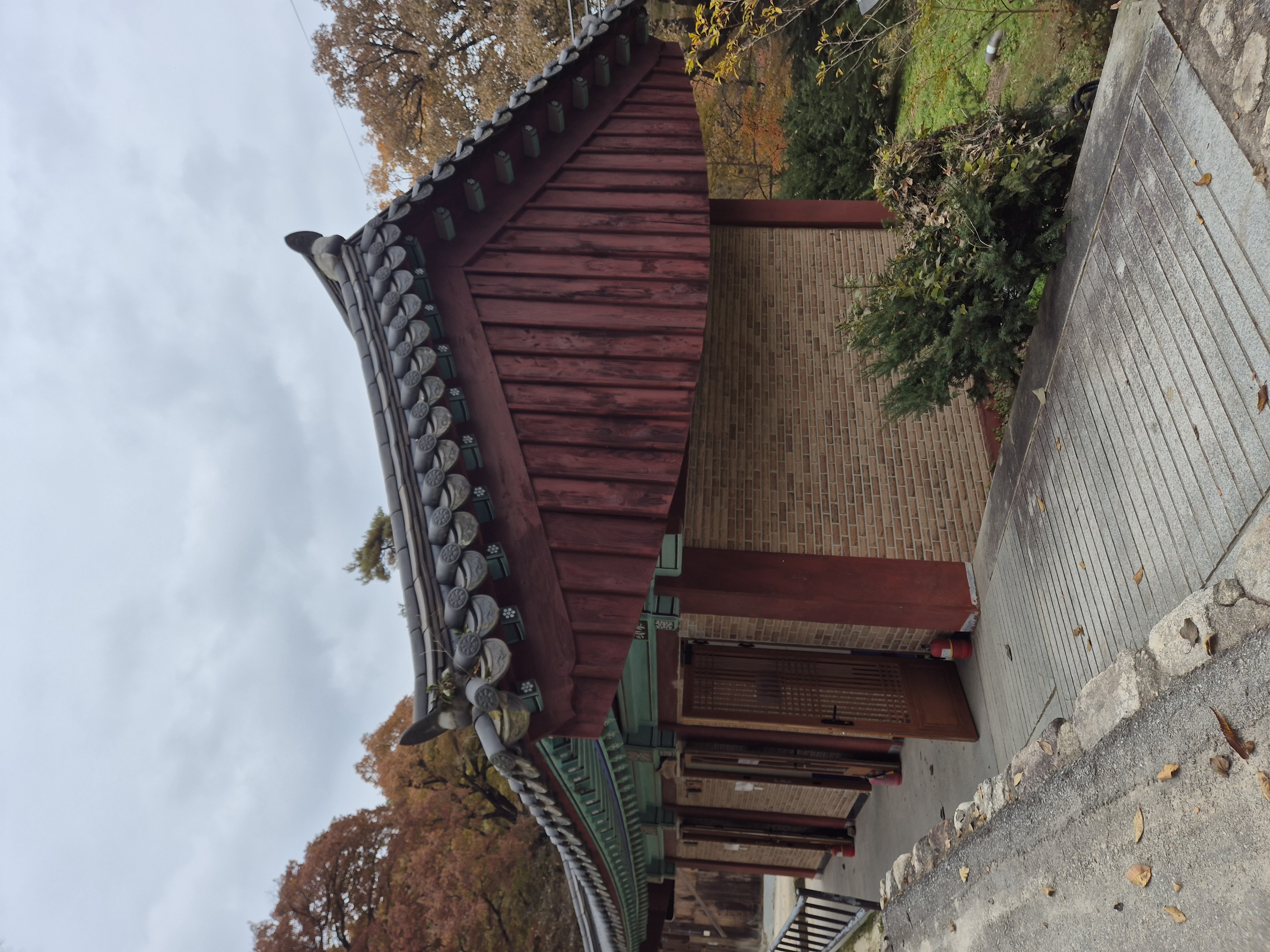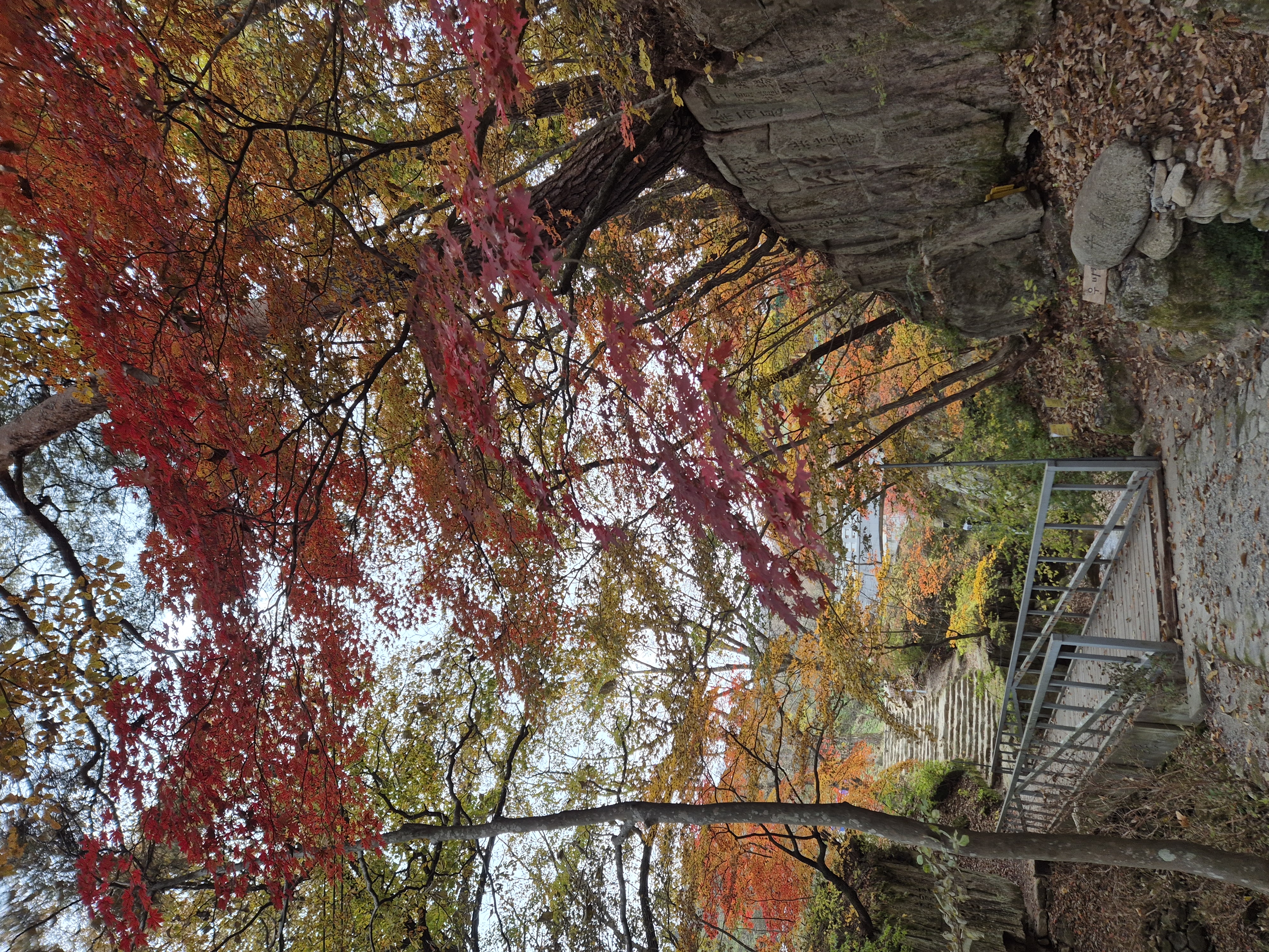 극락전을 돌아 나오는 길에 단풍이 짙게 물들었다.