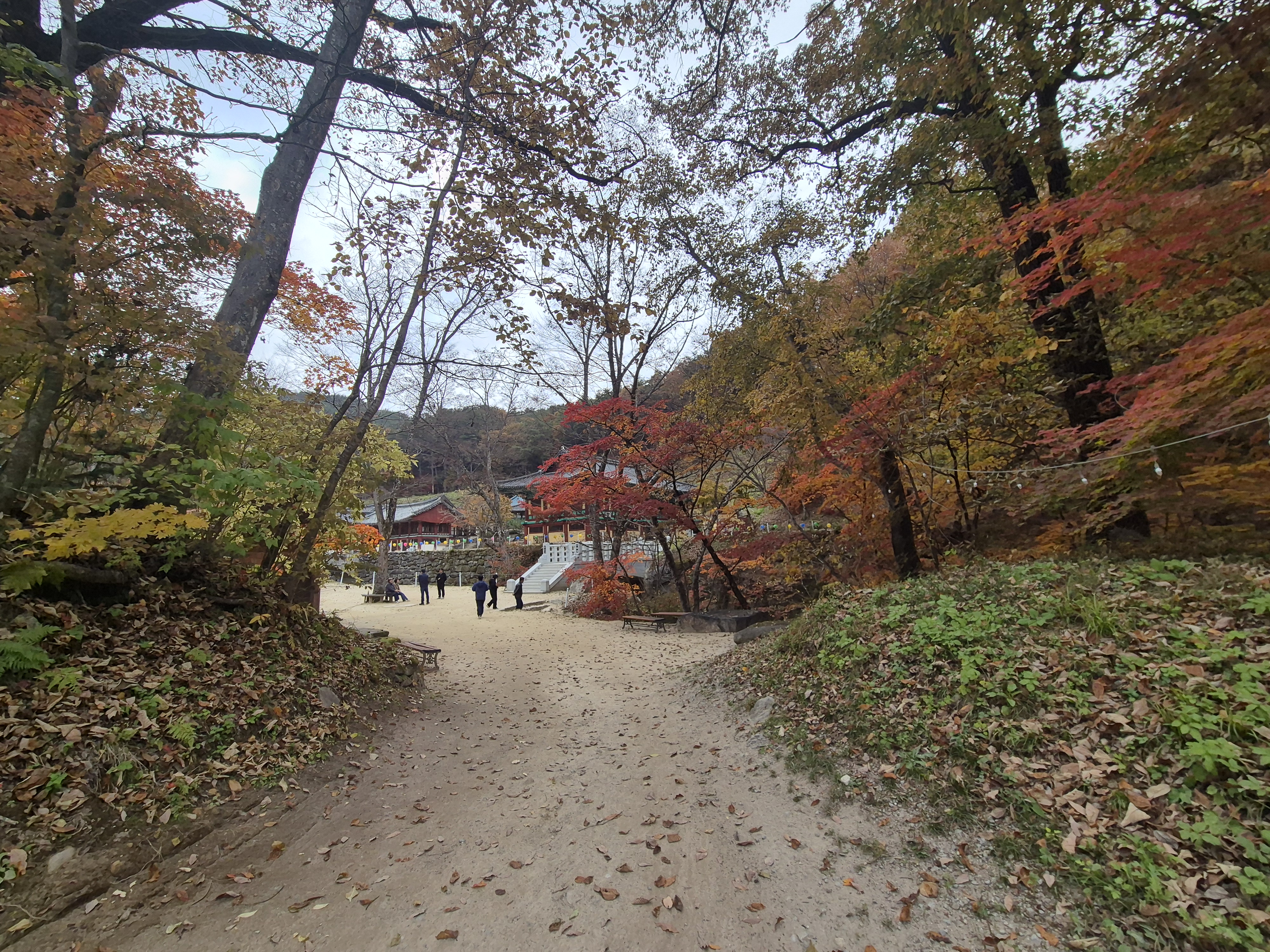 사천왕문을 지나 대웅전으로 가는 길에 노란 단풍이 물들어 탐방객의 마음을 사로잡는다.