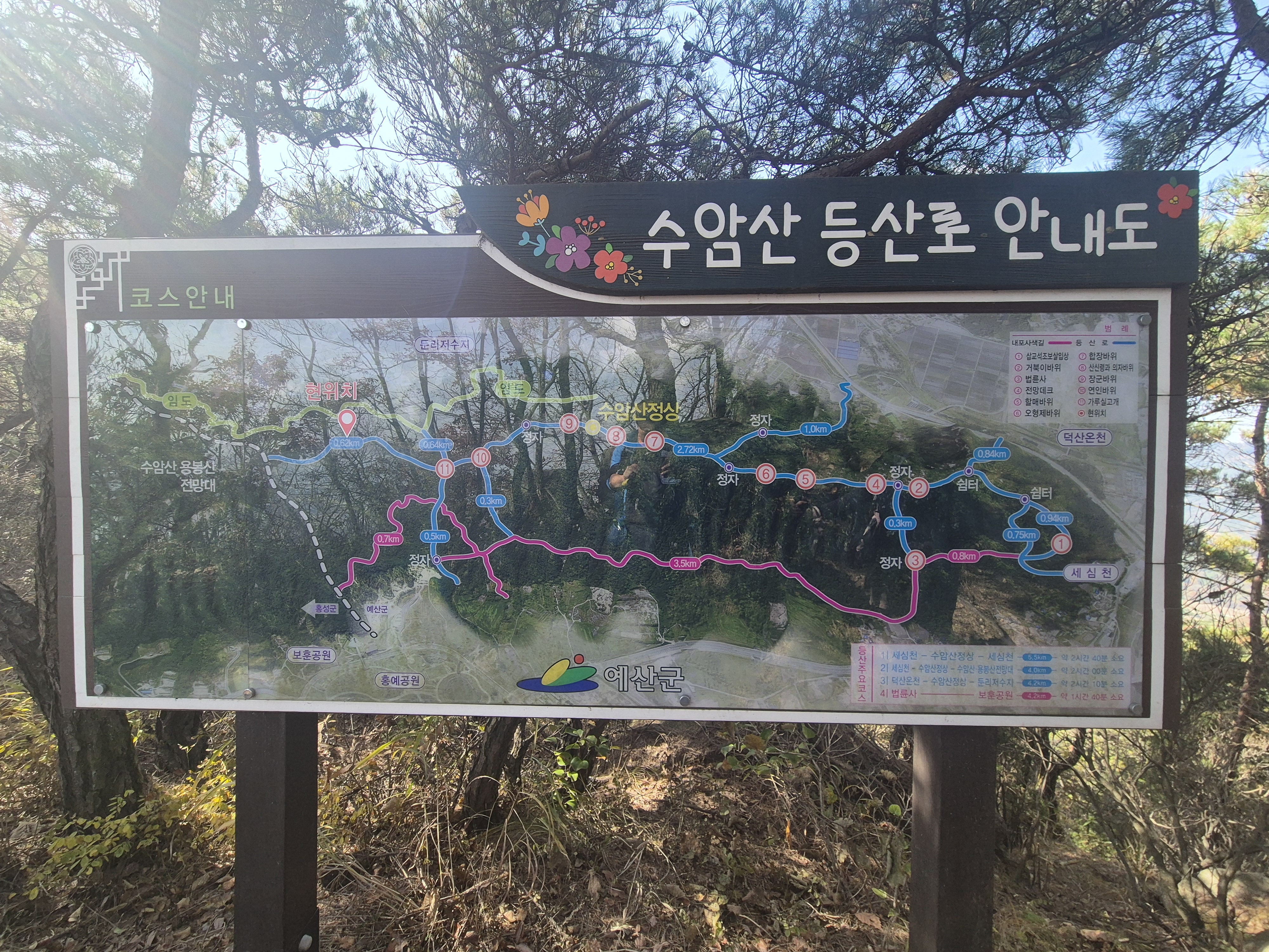 이제 윤봉길 의사 유적지와 헤어지고 오전 햇살이 빛나는 길을 따라 수암산 방향 트레일을 걷는다.
