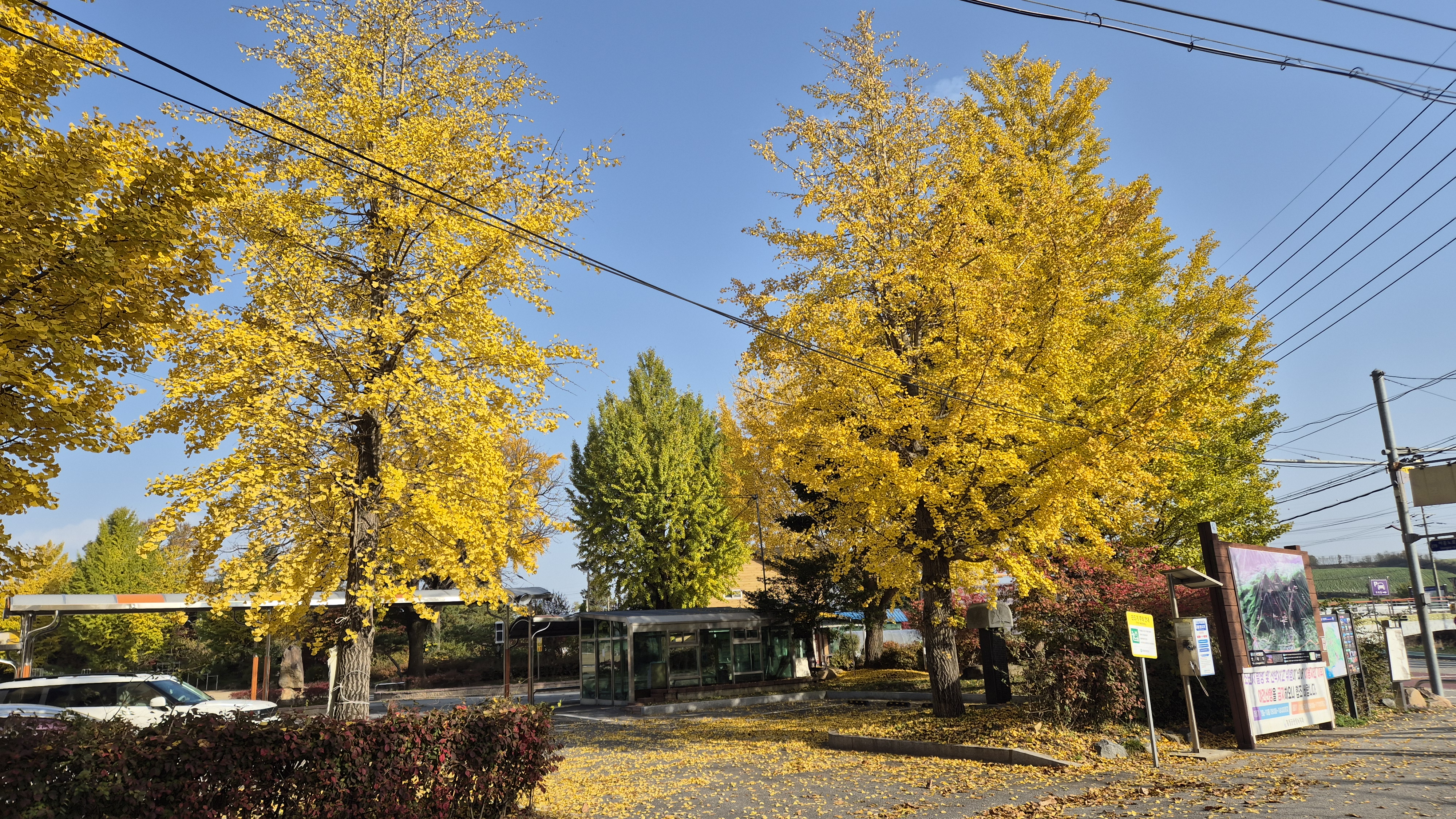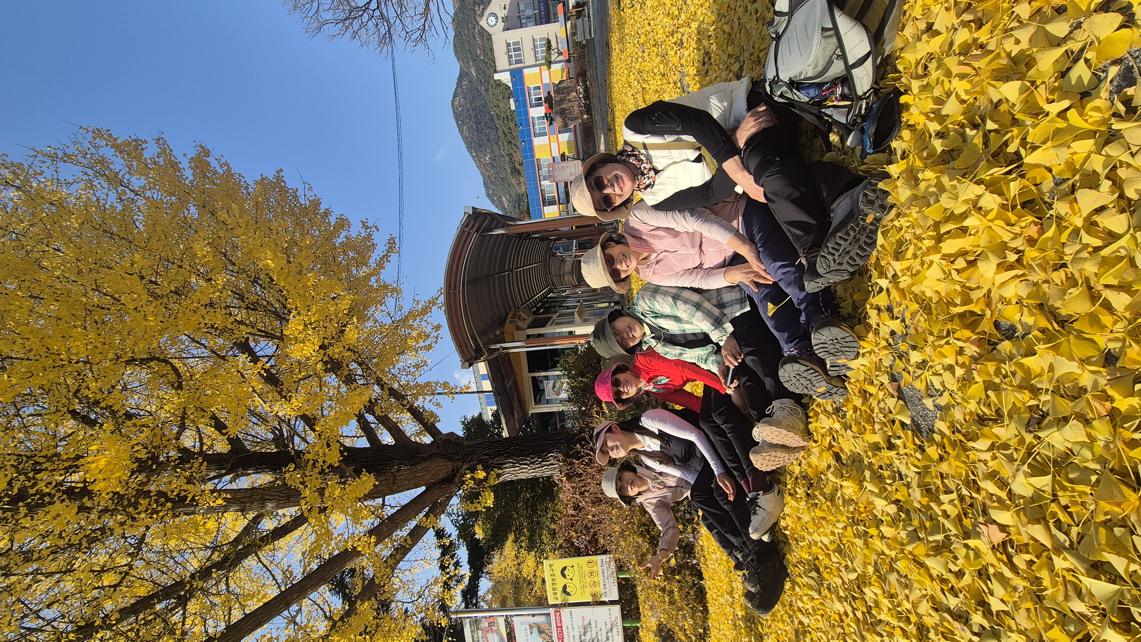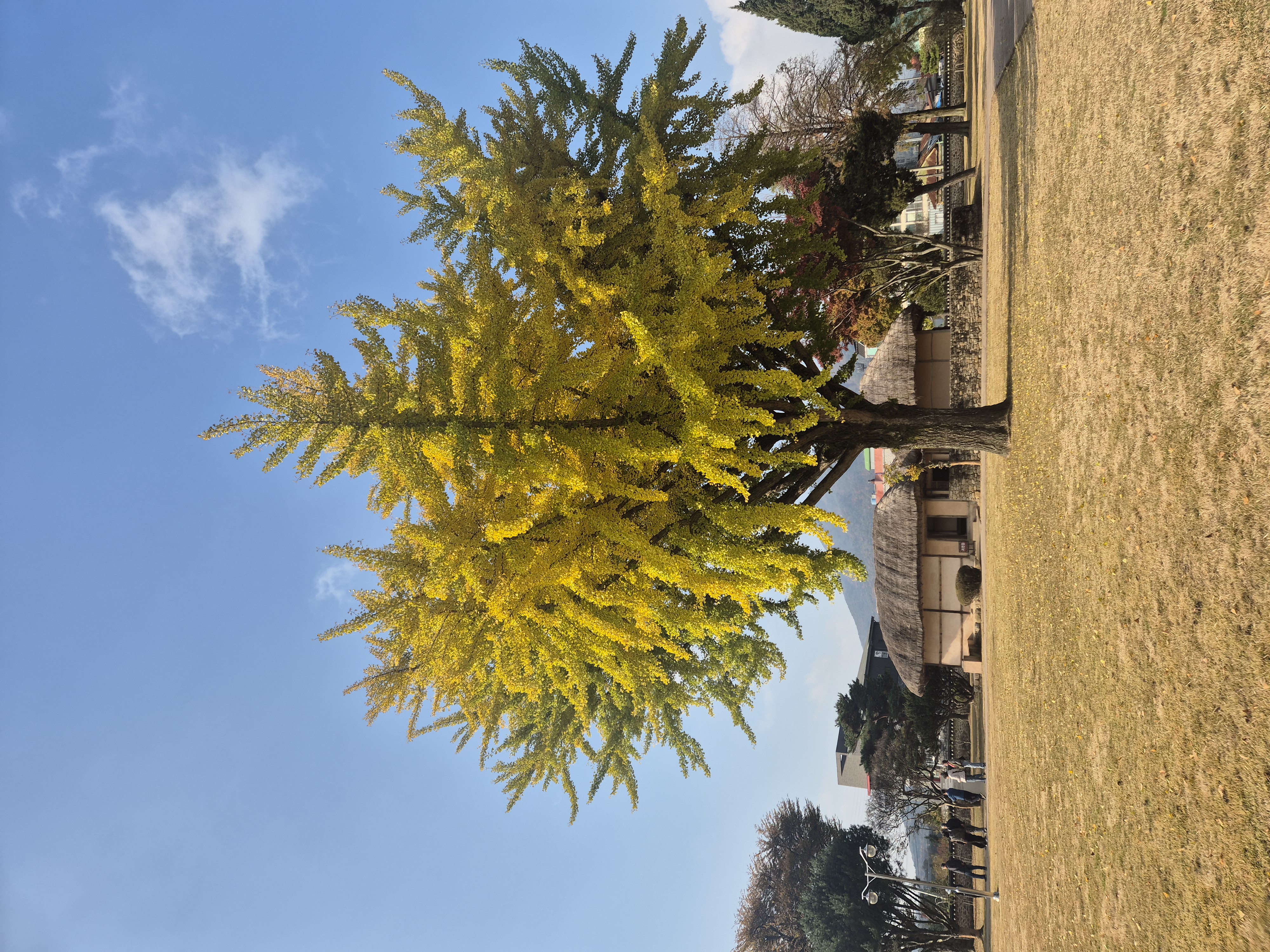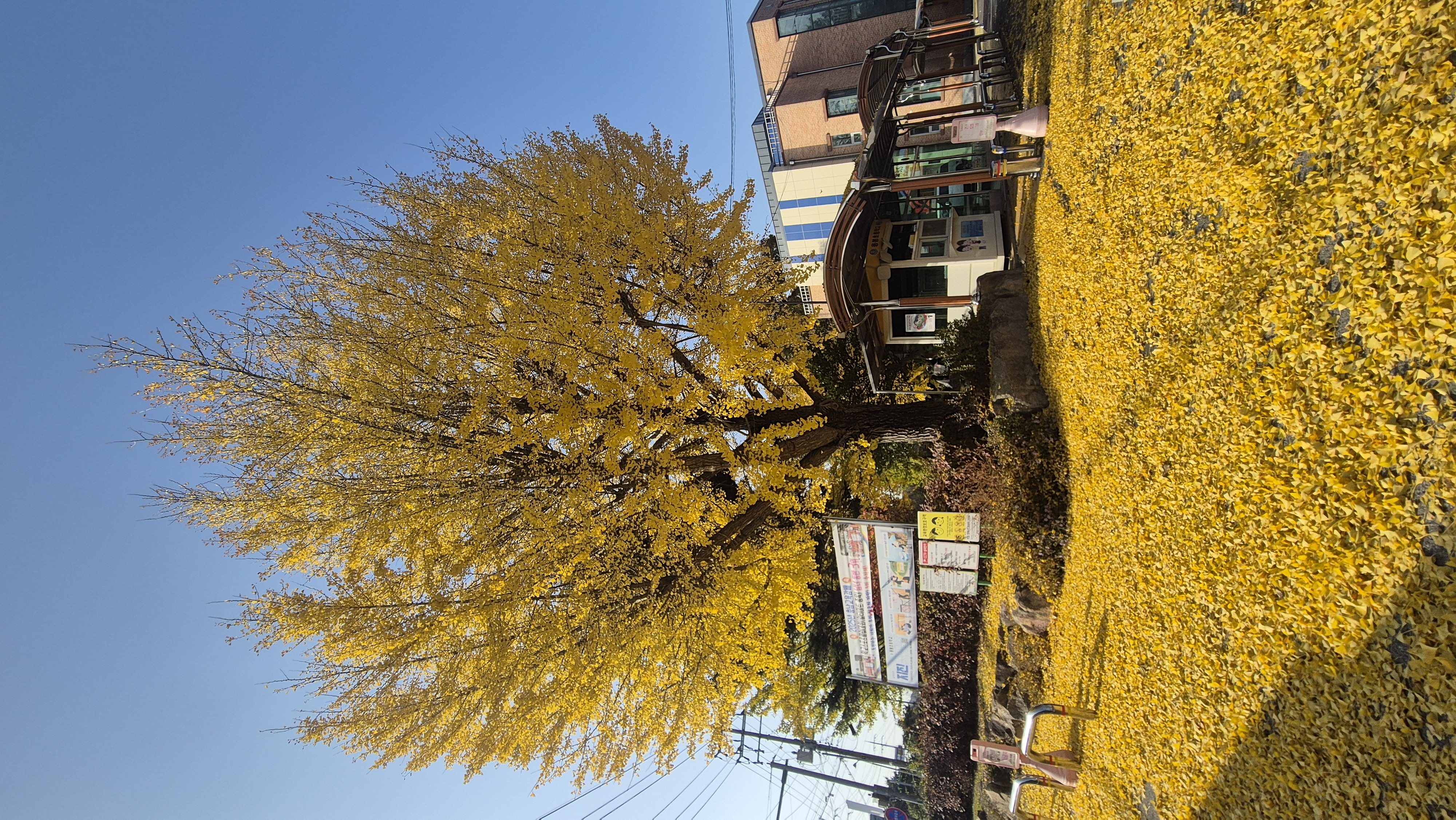 아직도 나무에는 노란 은행잎이 한가득인데 땅에도 노란 은행잎이 떨어져 환상이다.