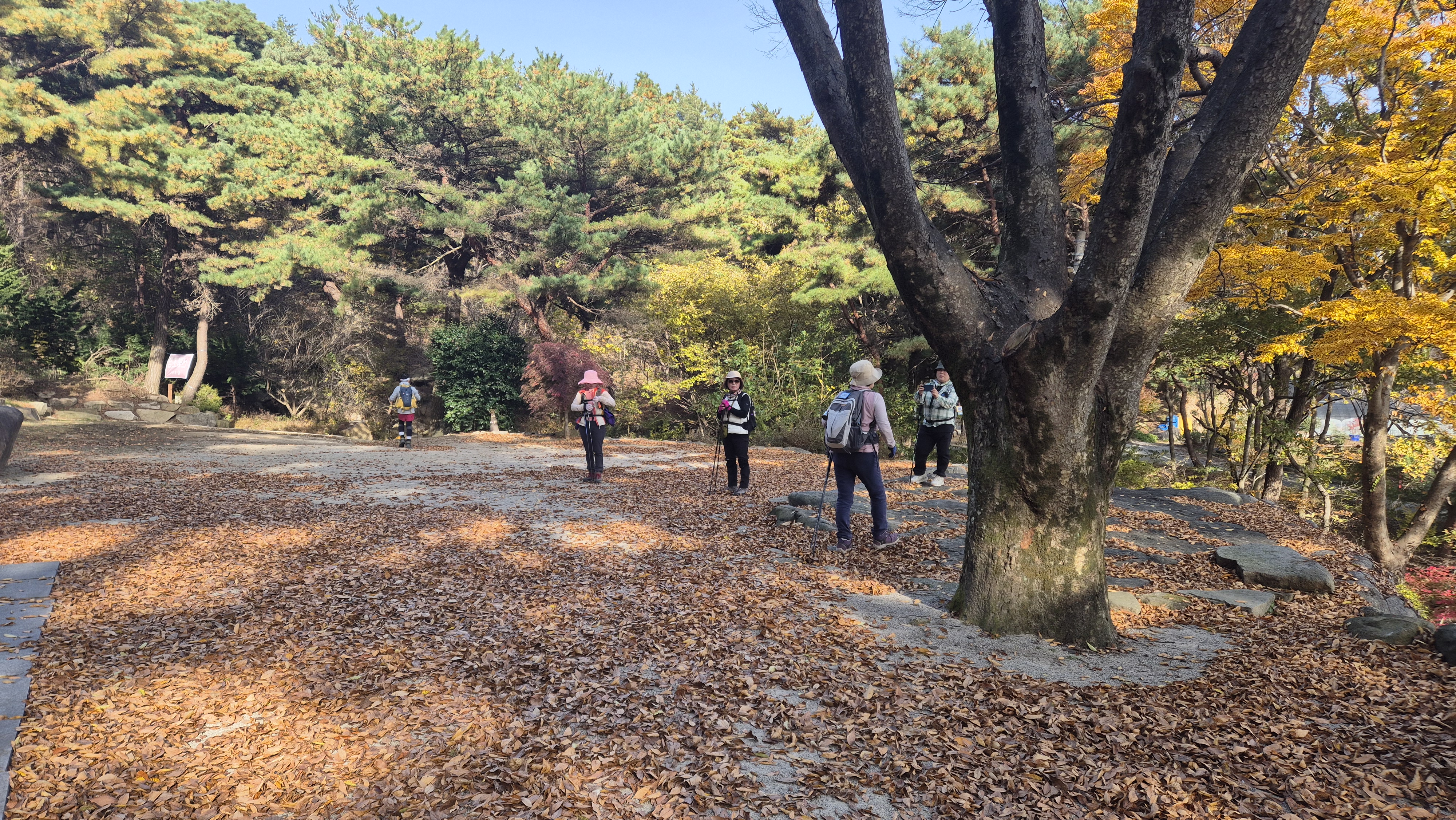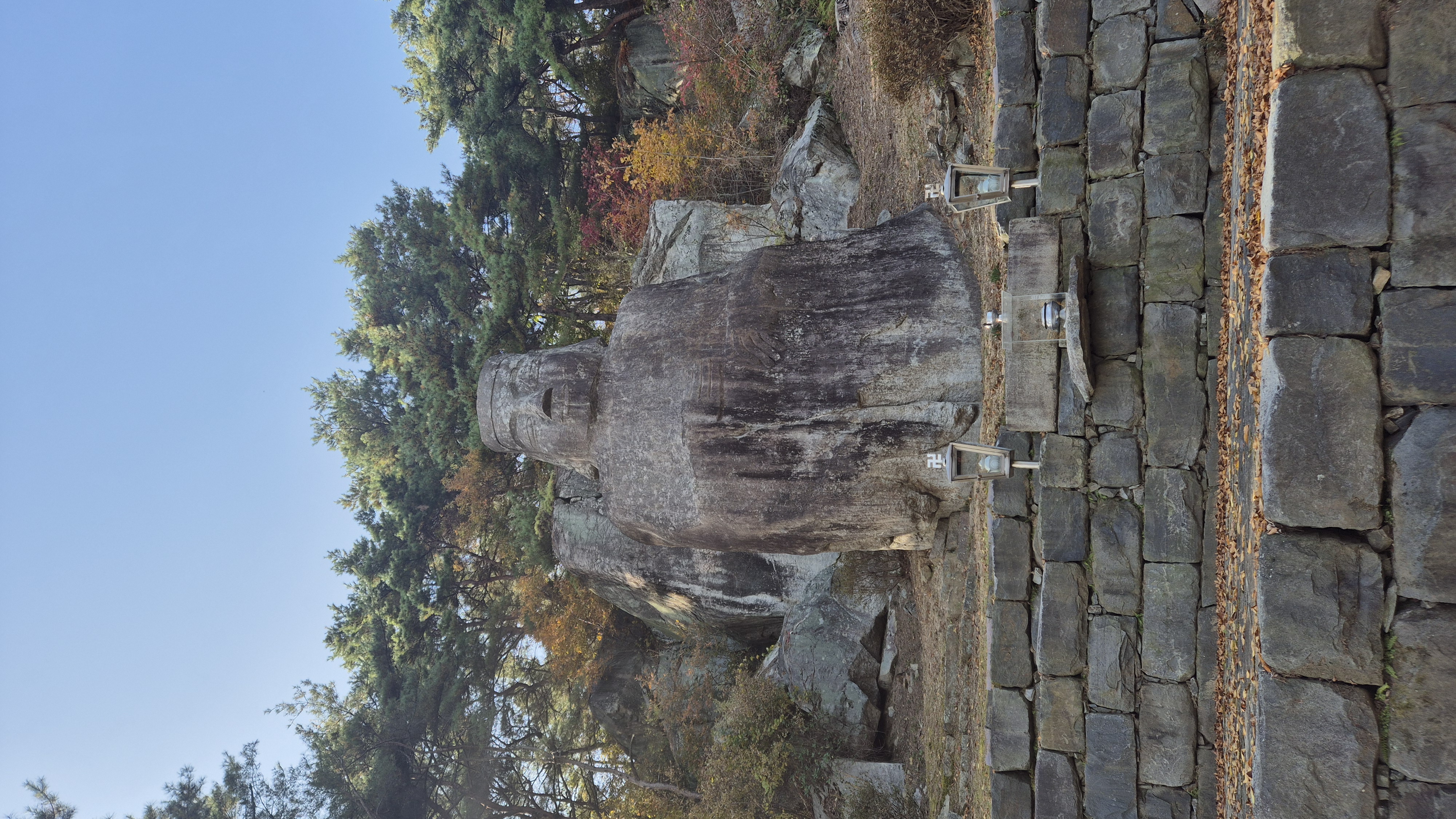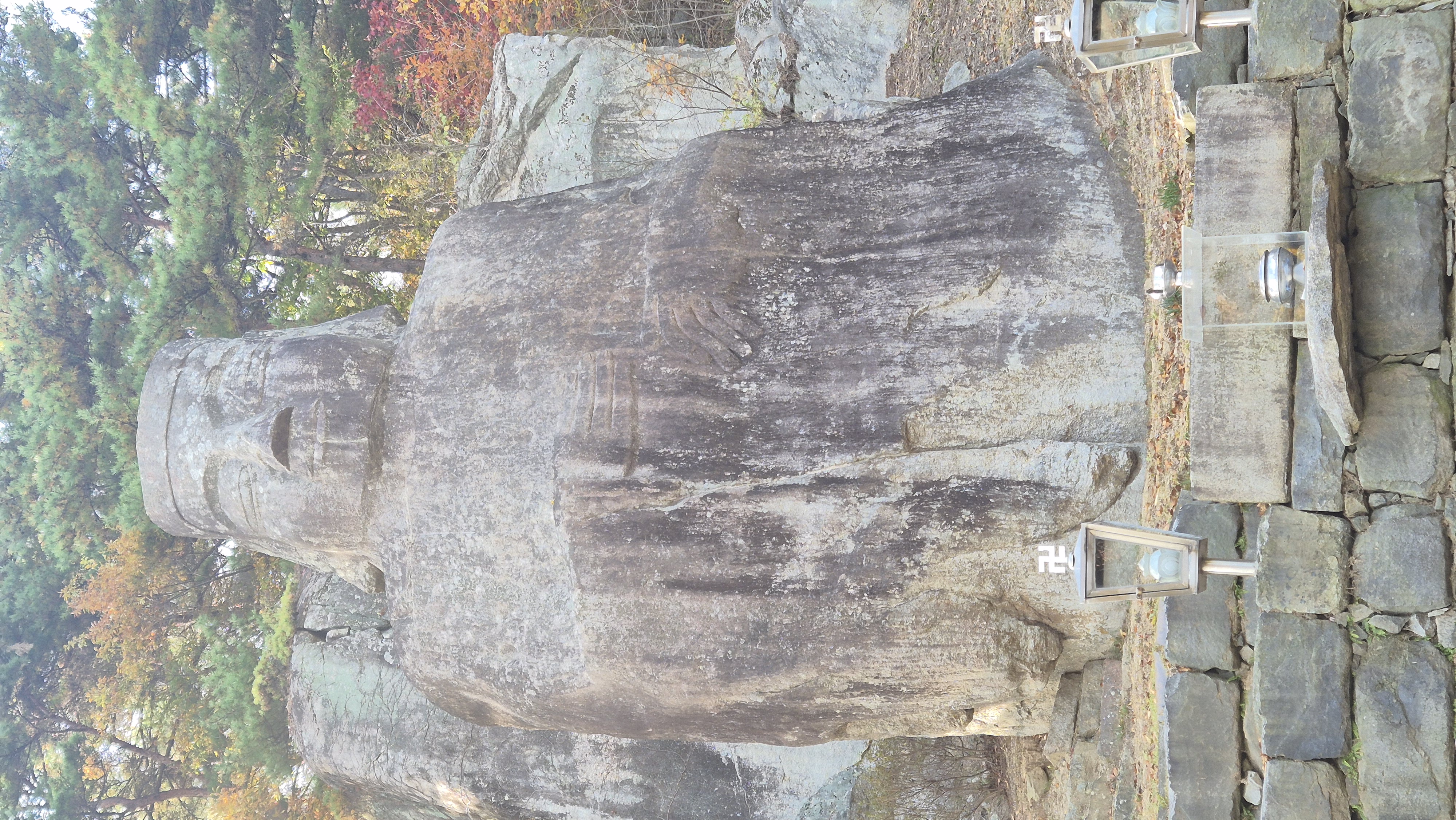미륵불 앞마당에 낙엽이 수북이 쌓여 있어