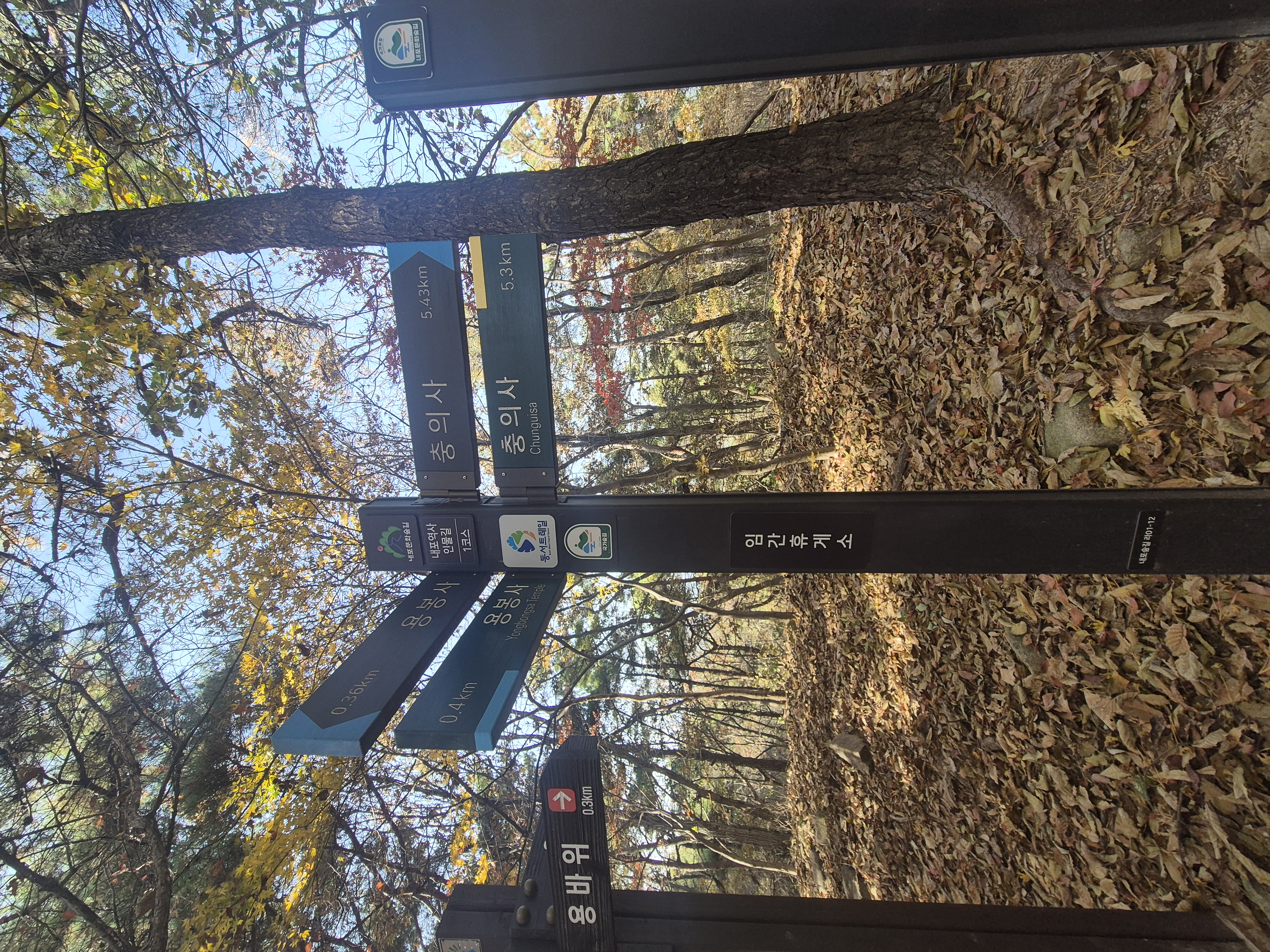충위사 출발 0.3km, 용봉사까지 5.4km 이정표