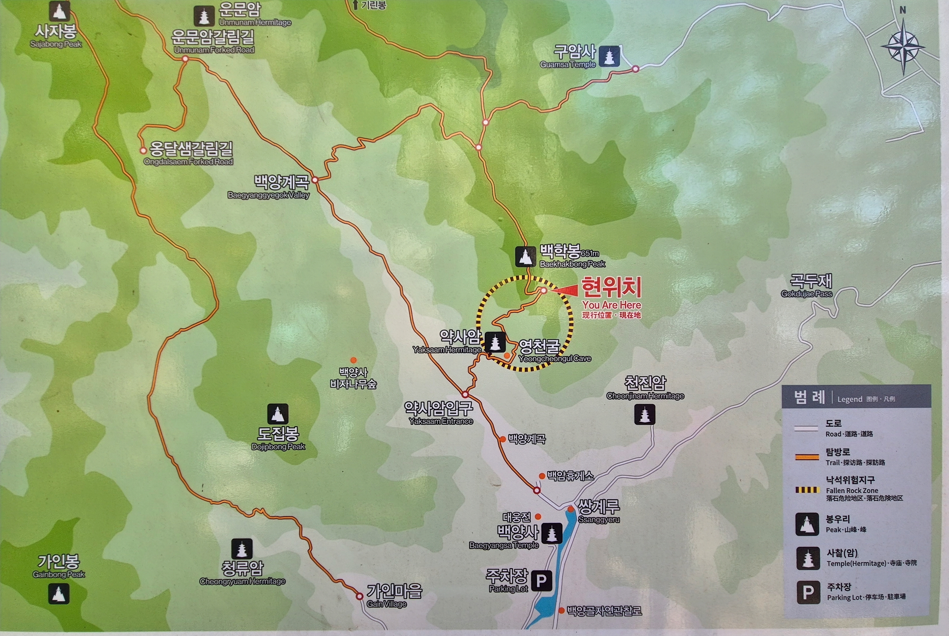 다시 백양사계곡 사거리로 내려와서 기념 한 장 남기고 이제 백양사계곡으로 하산한다.