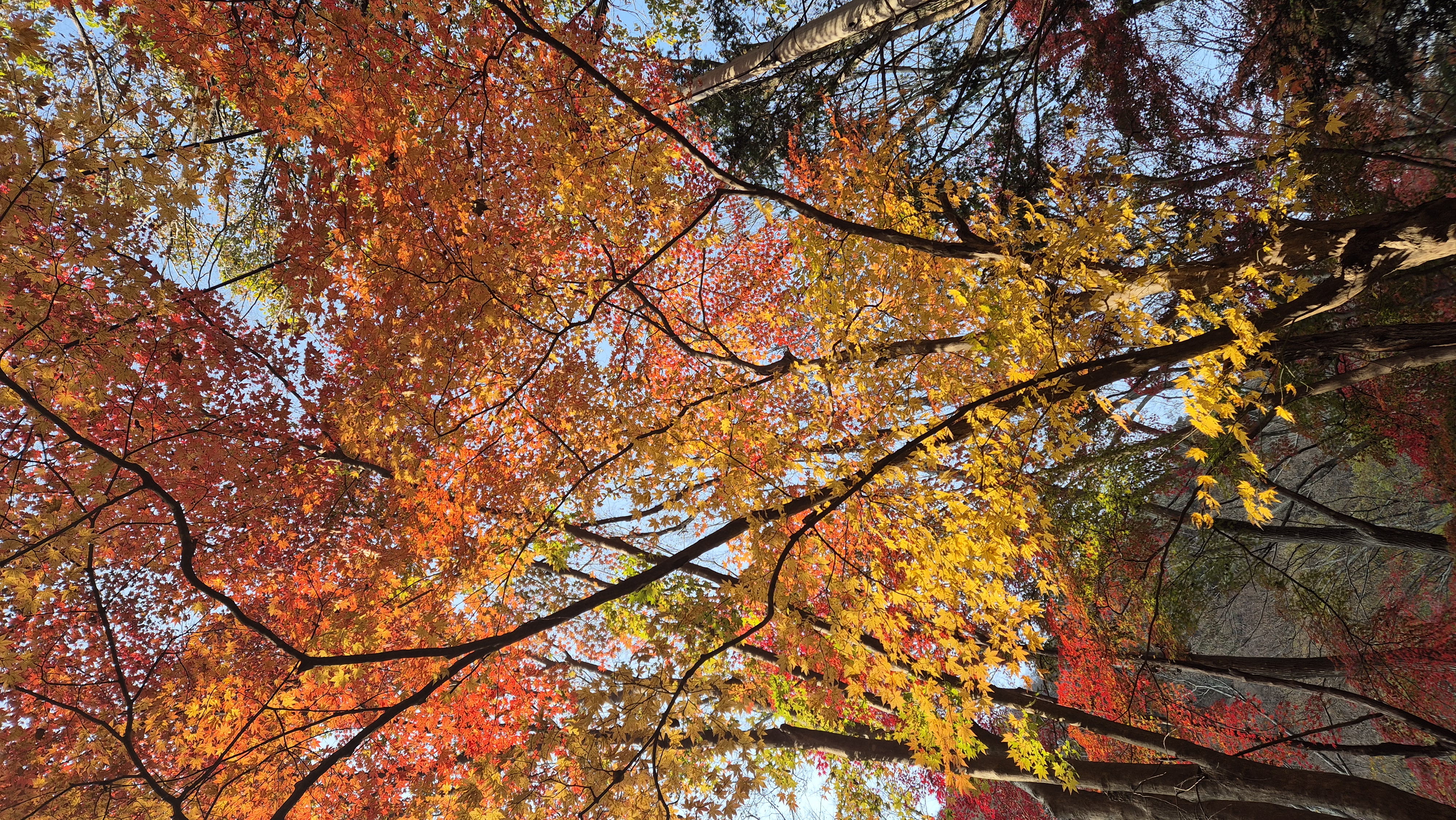 오전 내내 이런 단풍이 우리들 영혼을 어루만진다. 이 보다 아름다운 것이 또 어디에 있을까?