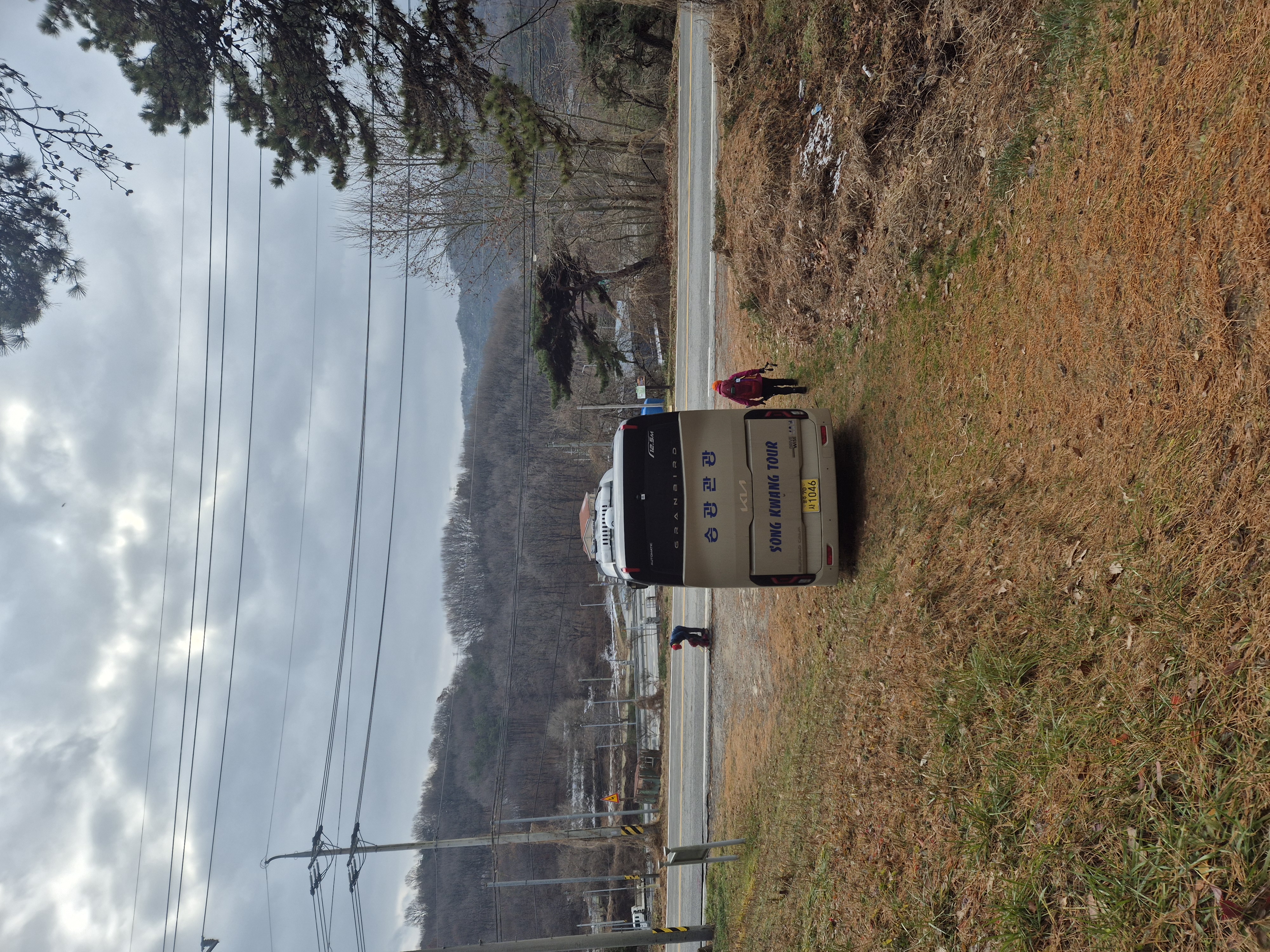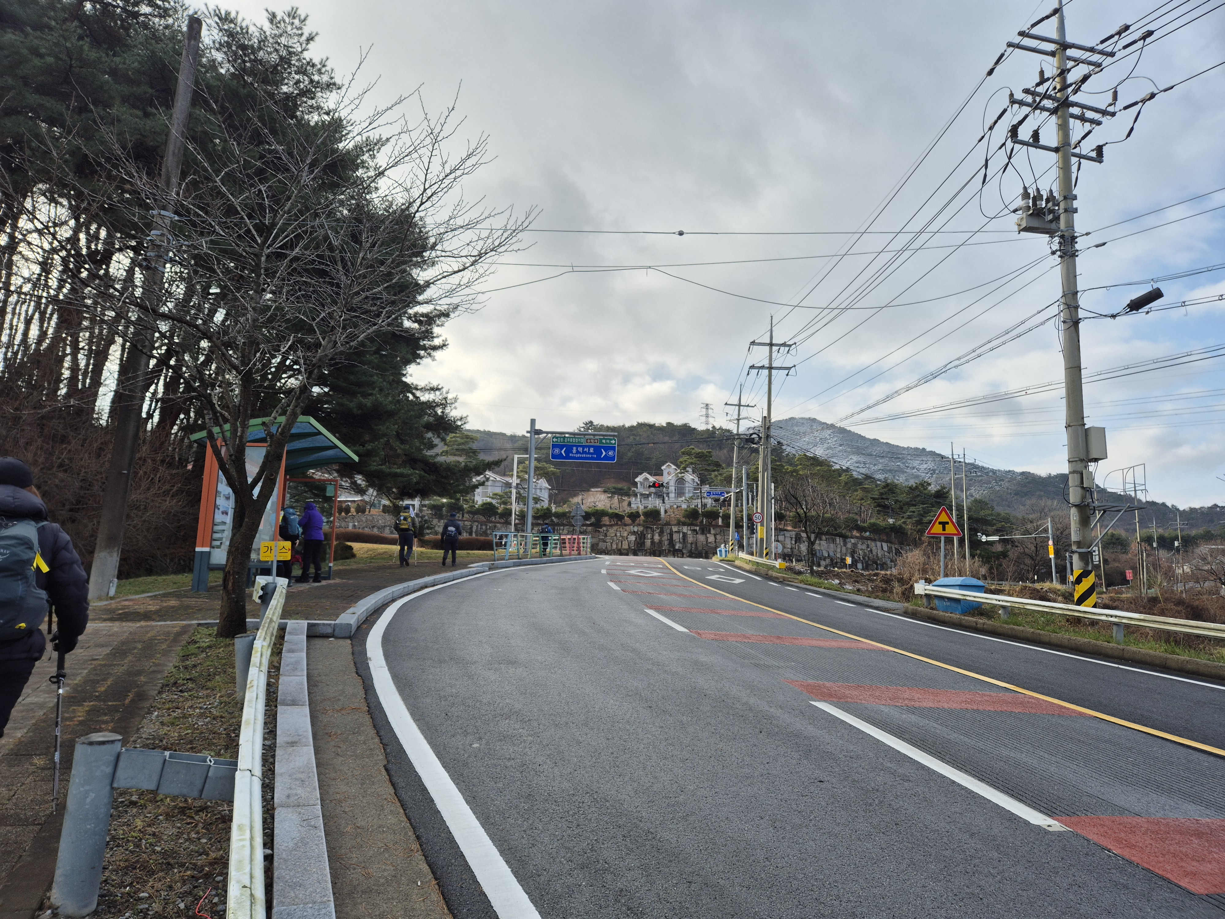 홍천고개삼거리 버스정류장을 지나