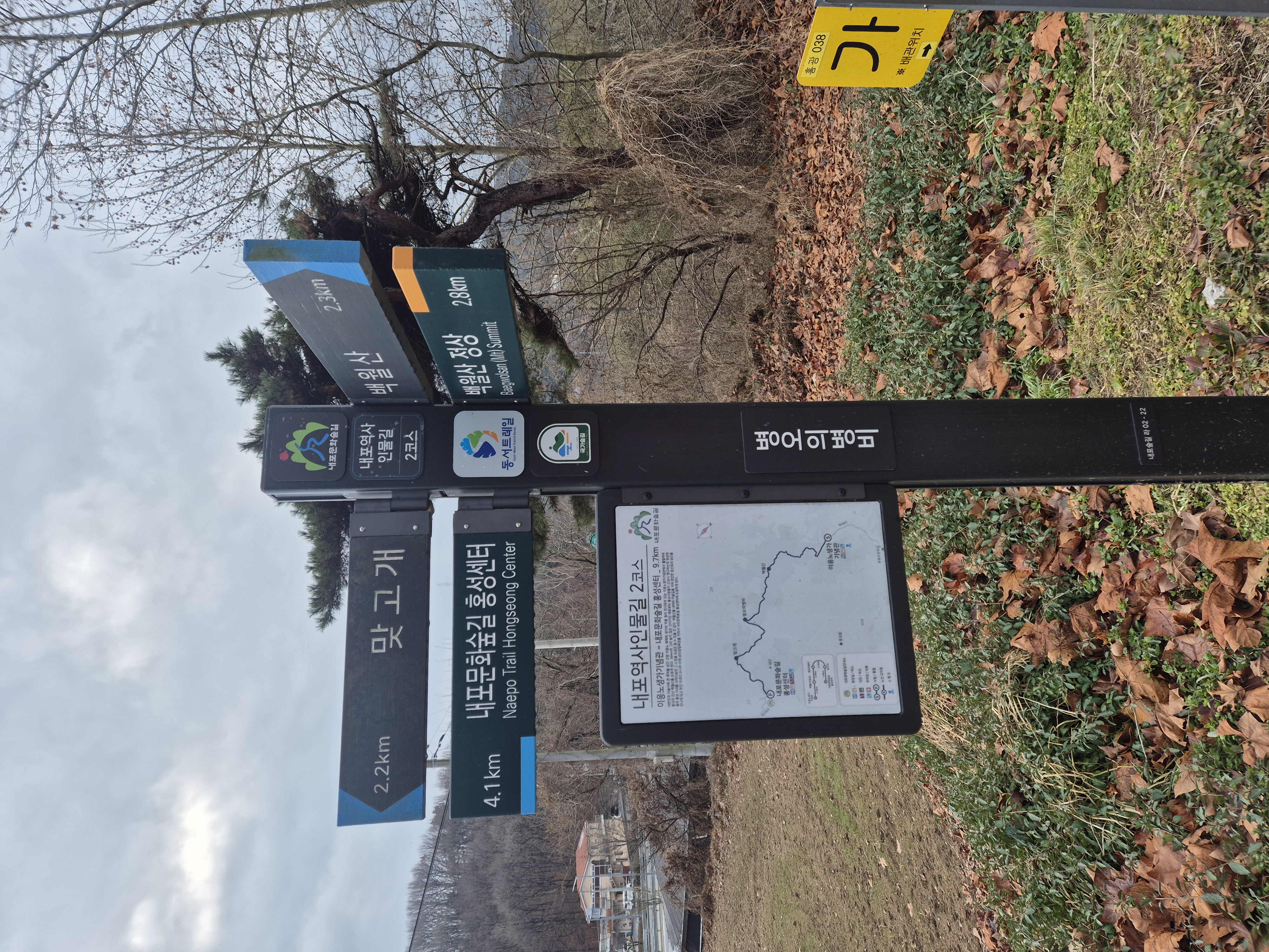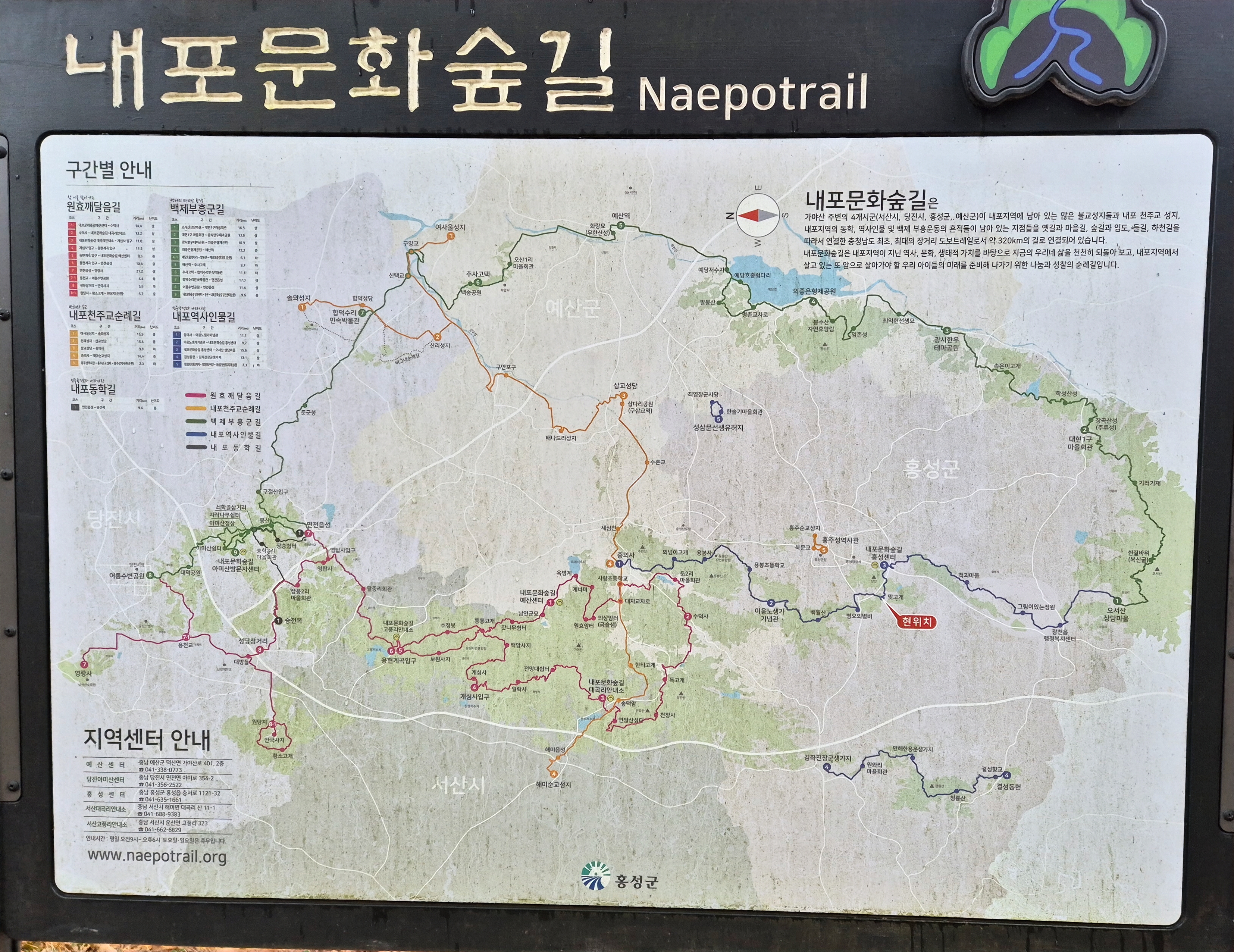 동서트레일 10구간 종점인 내포문화숲길 홍성센터 종합안내판에 도착