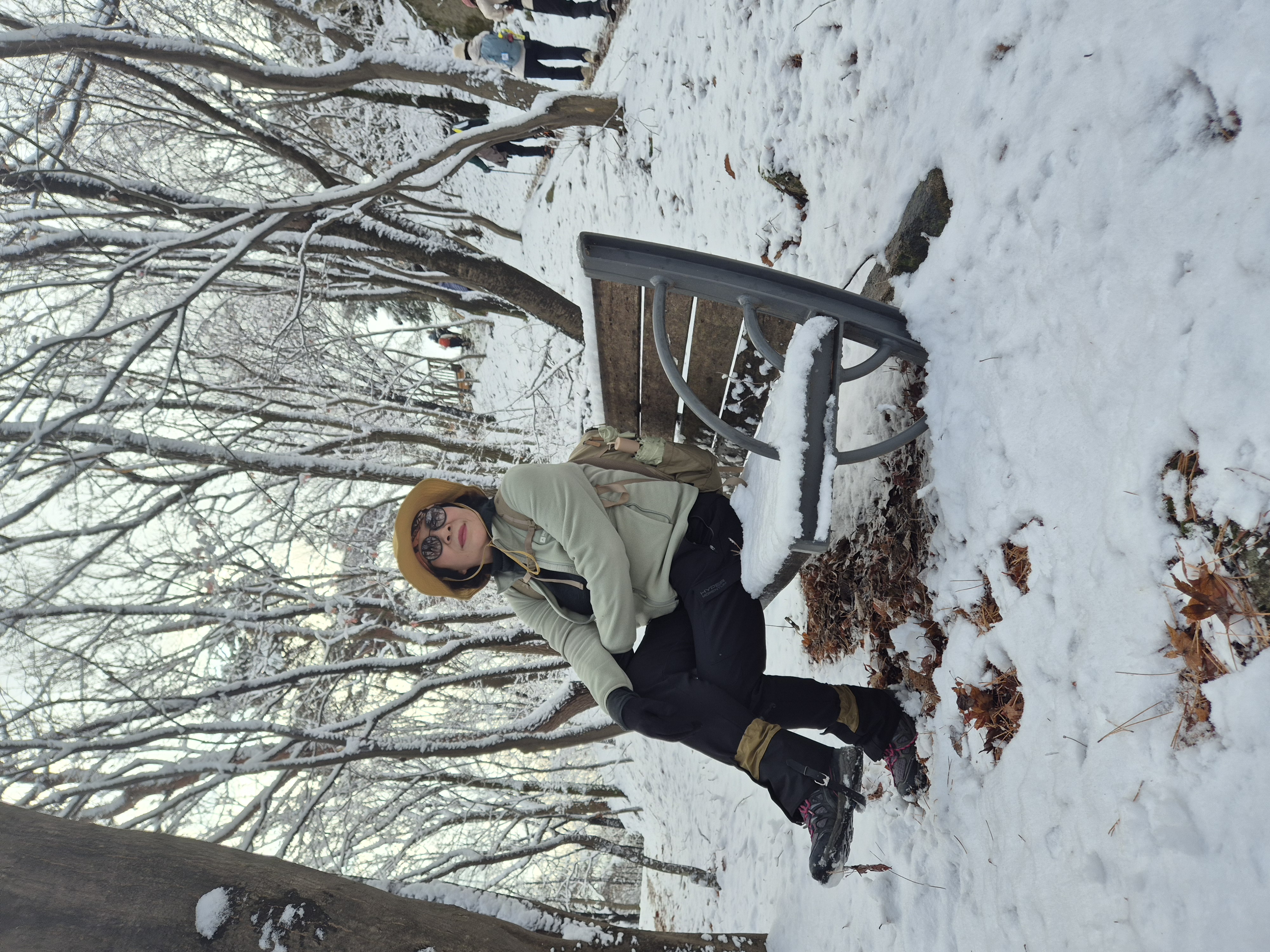 오름길에 이런 운치도 있네. 소복이 쌓인 흰 눈이 행운의 여신처럼 손짓을 하고 그대는 기쁨으로 꽃을 피운다.