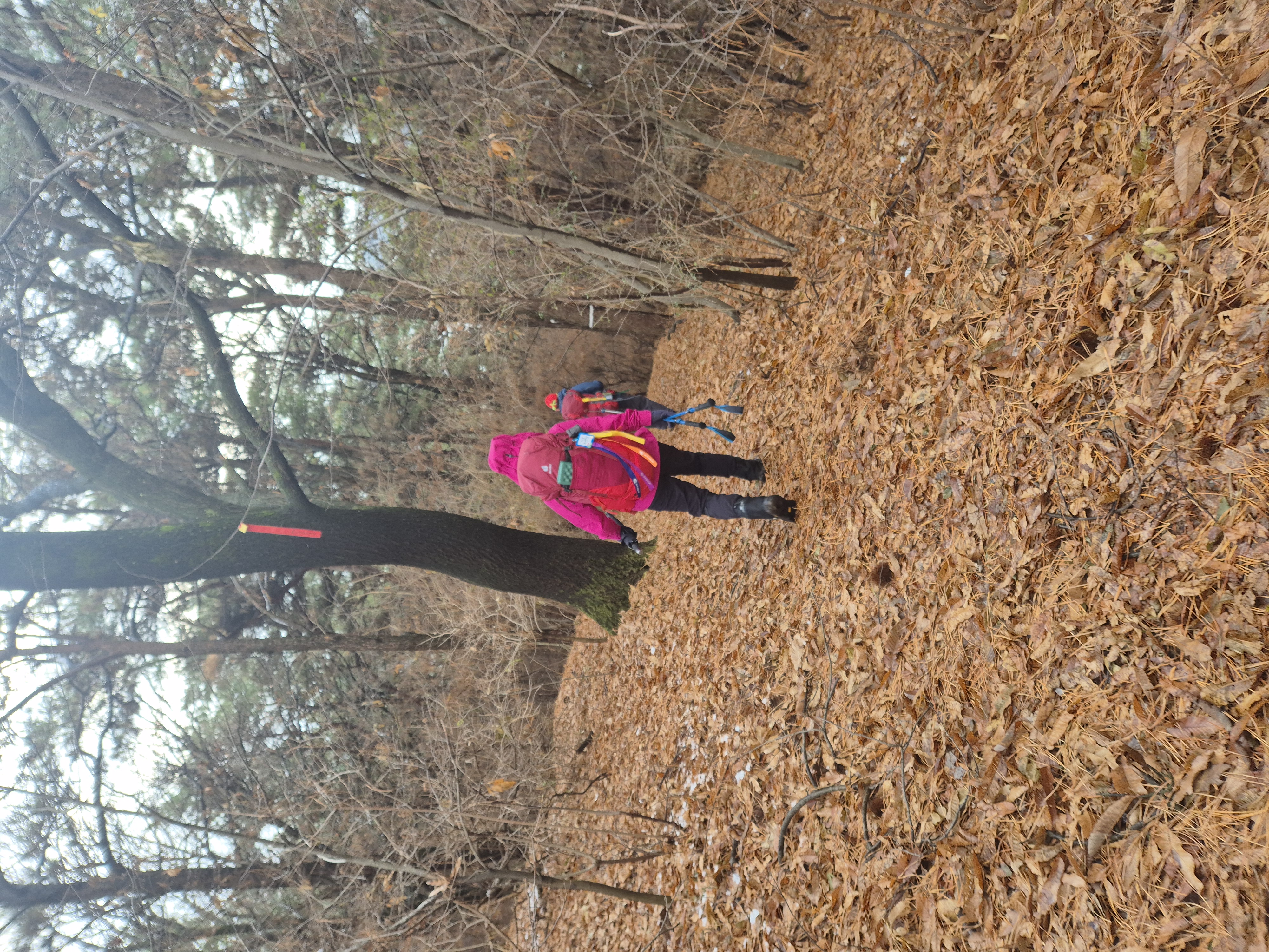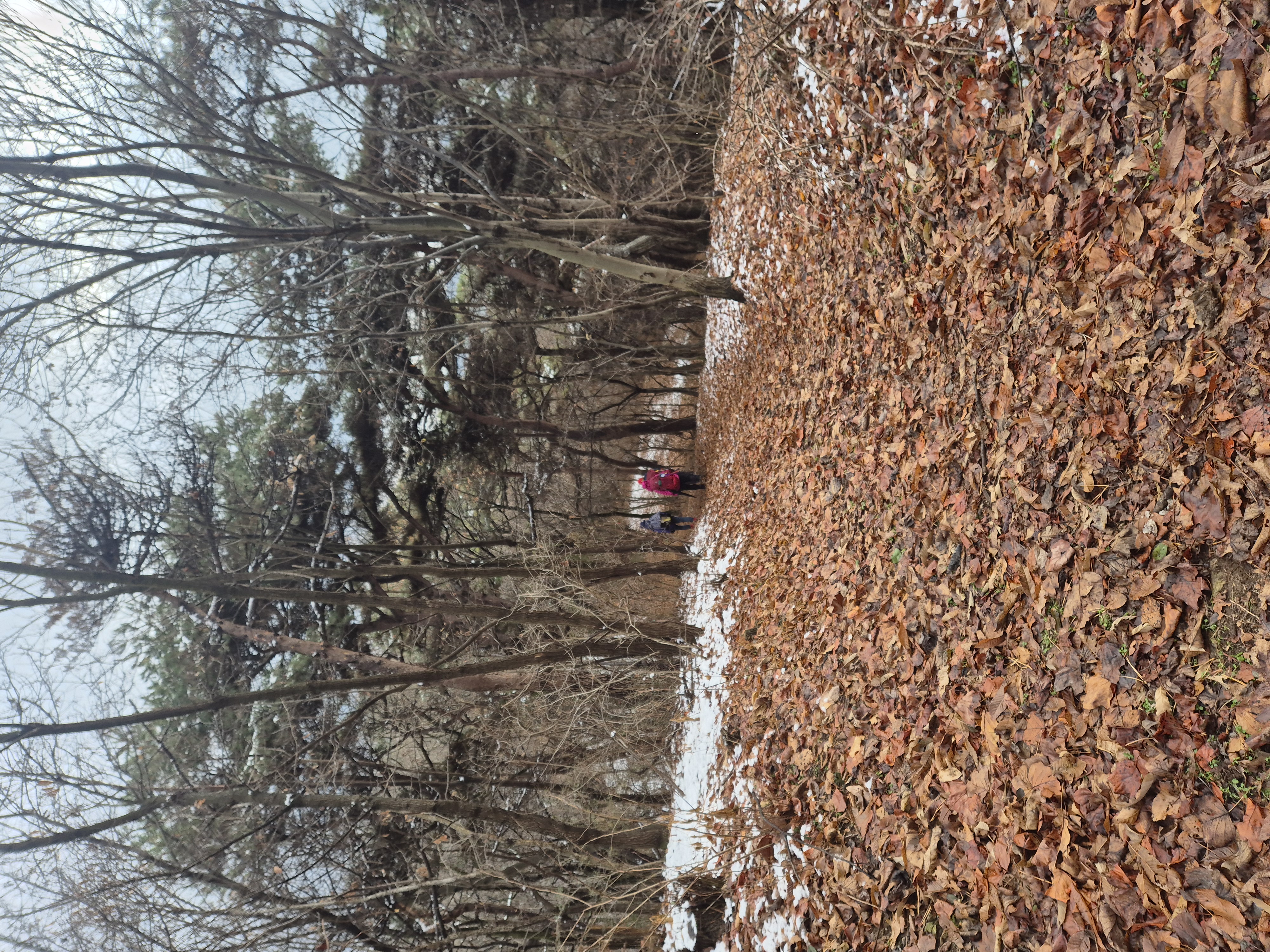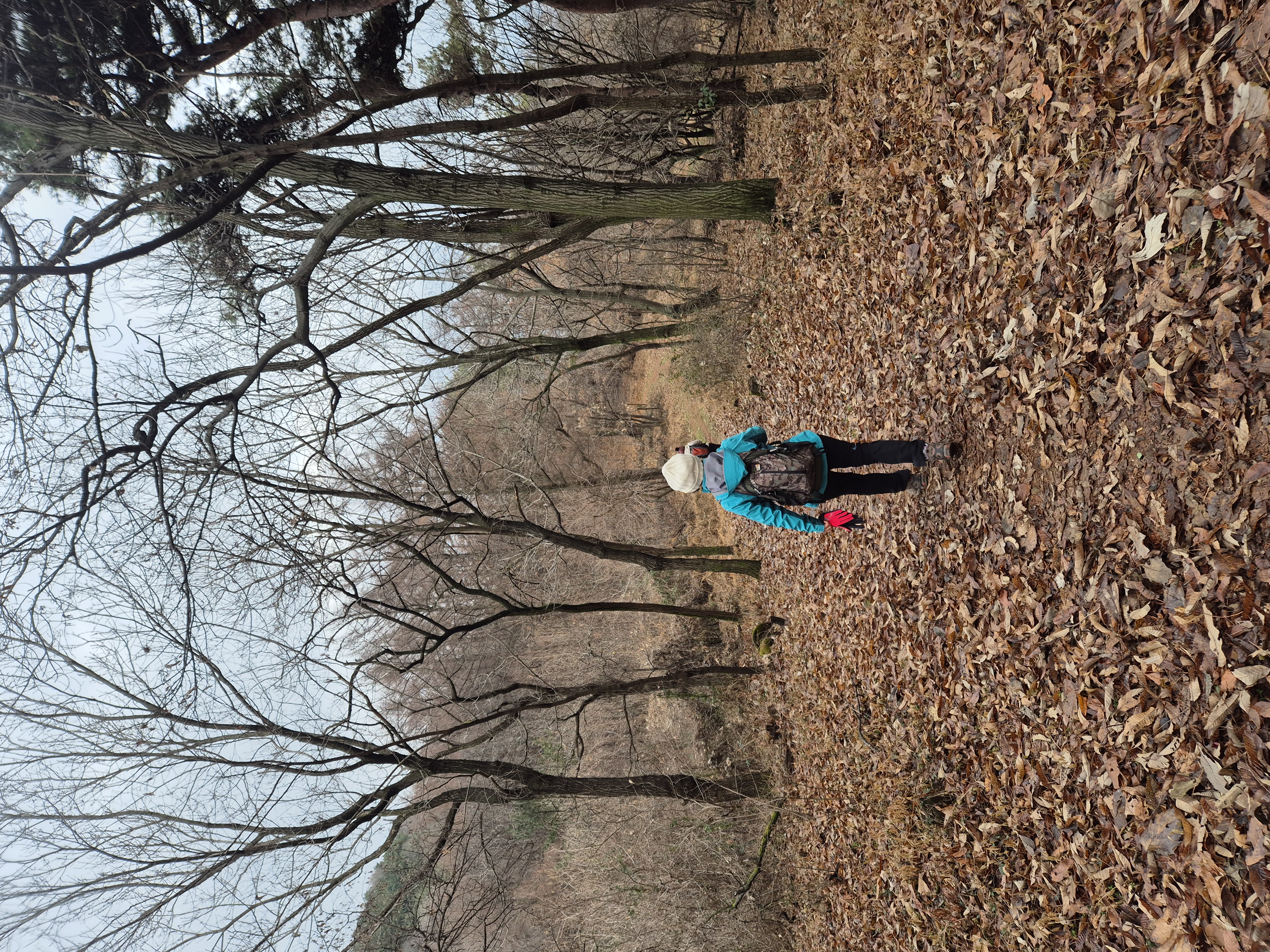 서서히 완만하게 백월산으로 오른다. 밤나무 낙엽이 무성한 길에 어제 내린 잔설이 남아 폐까지 시원하고 상쾌하다.