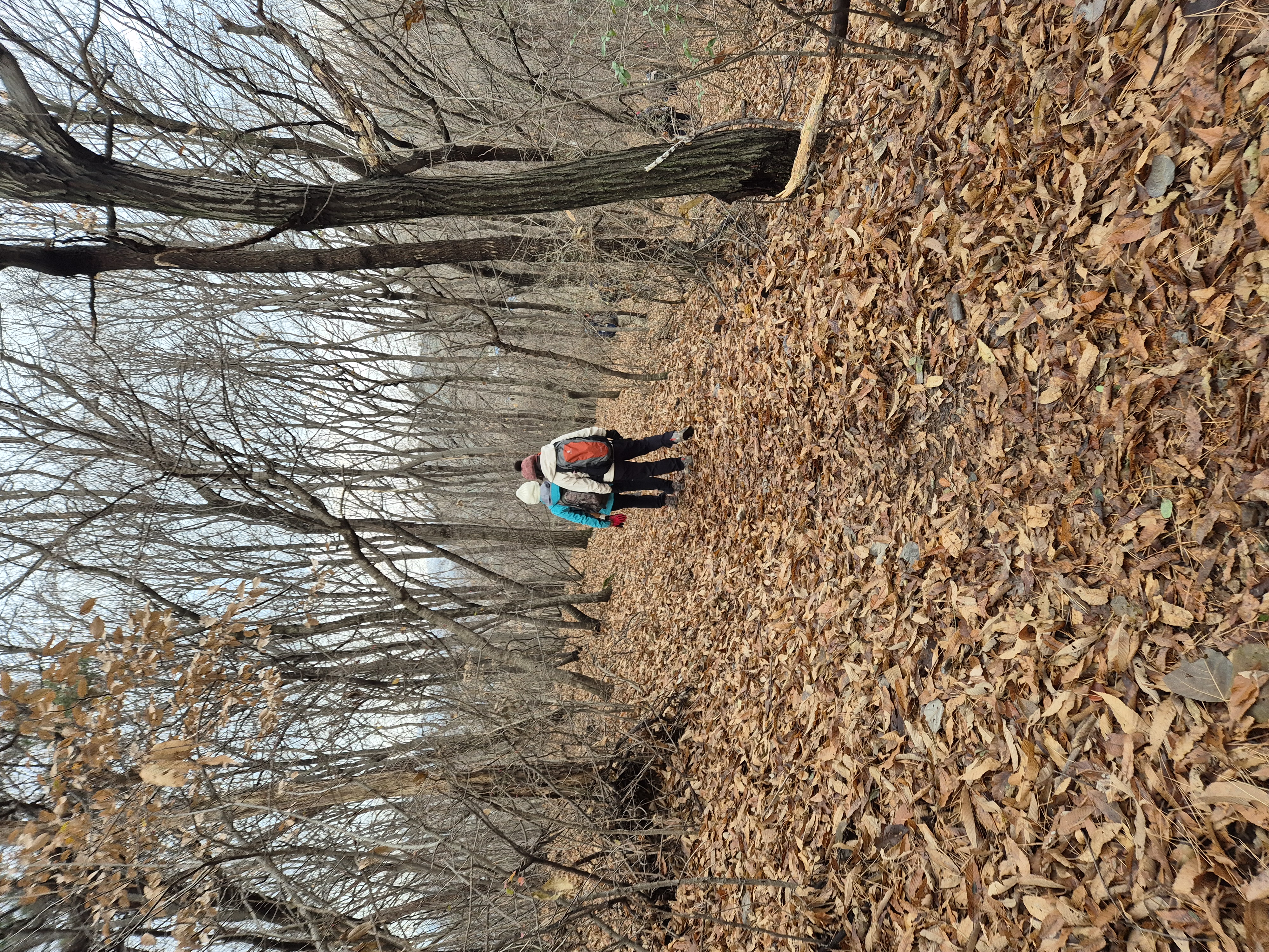 낙엽이 수북이 쌓인 정스런 길이다.