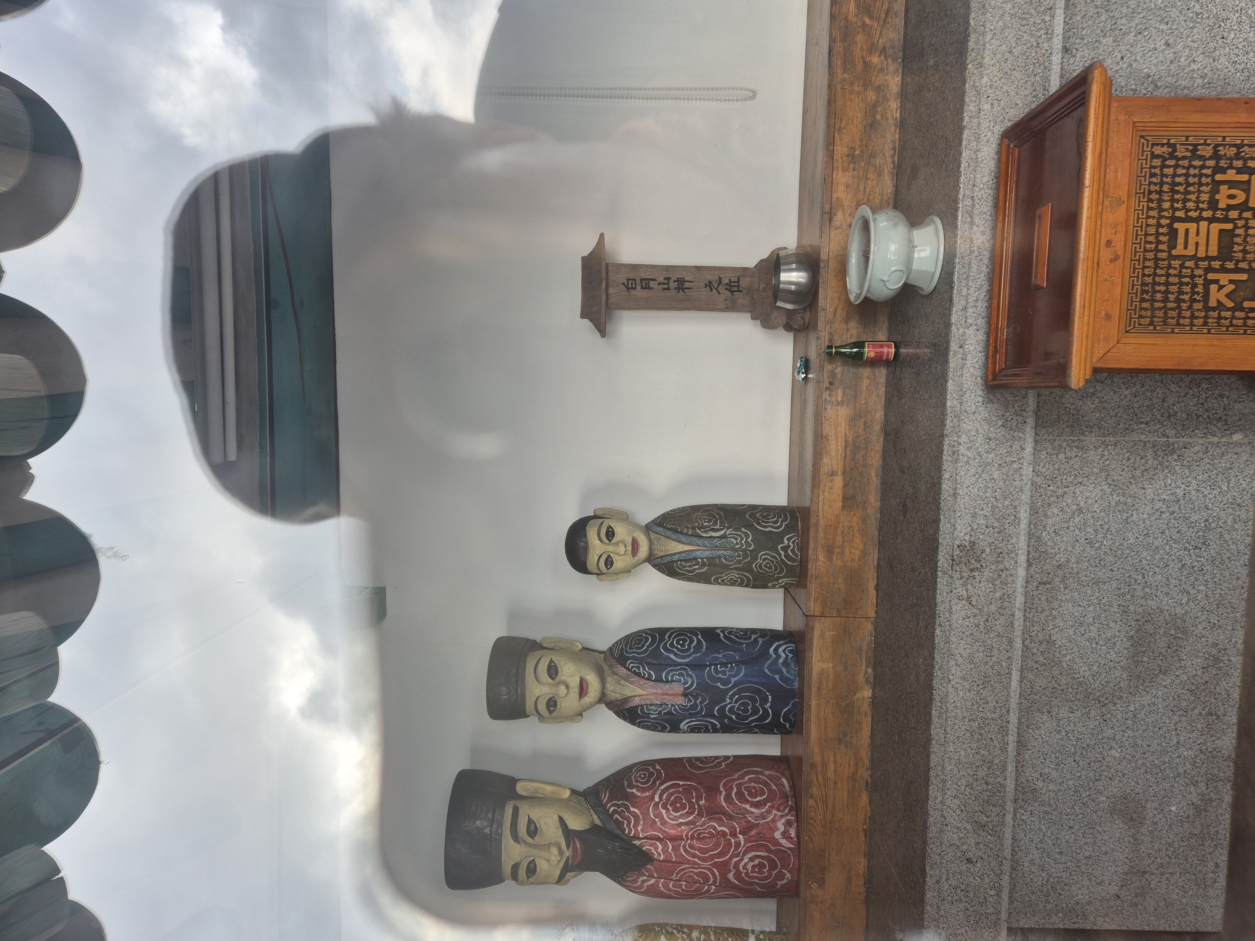 홍가신사당 내부에 나무로 만든 홍가신 가족상과 위폐