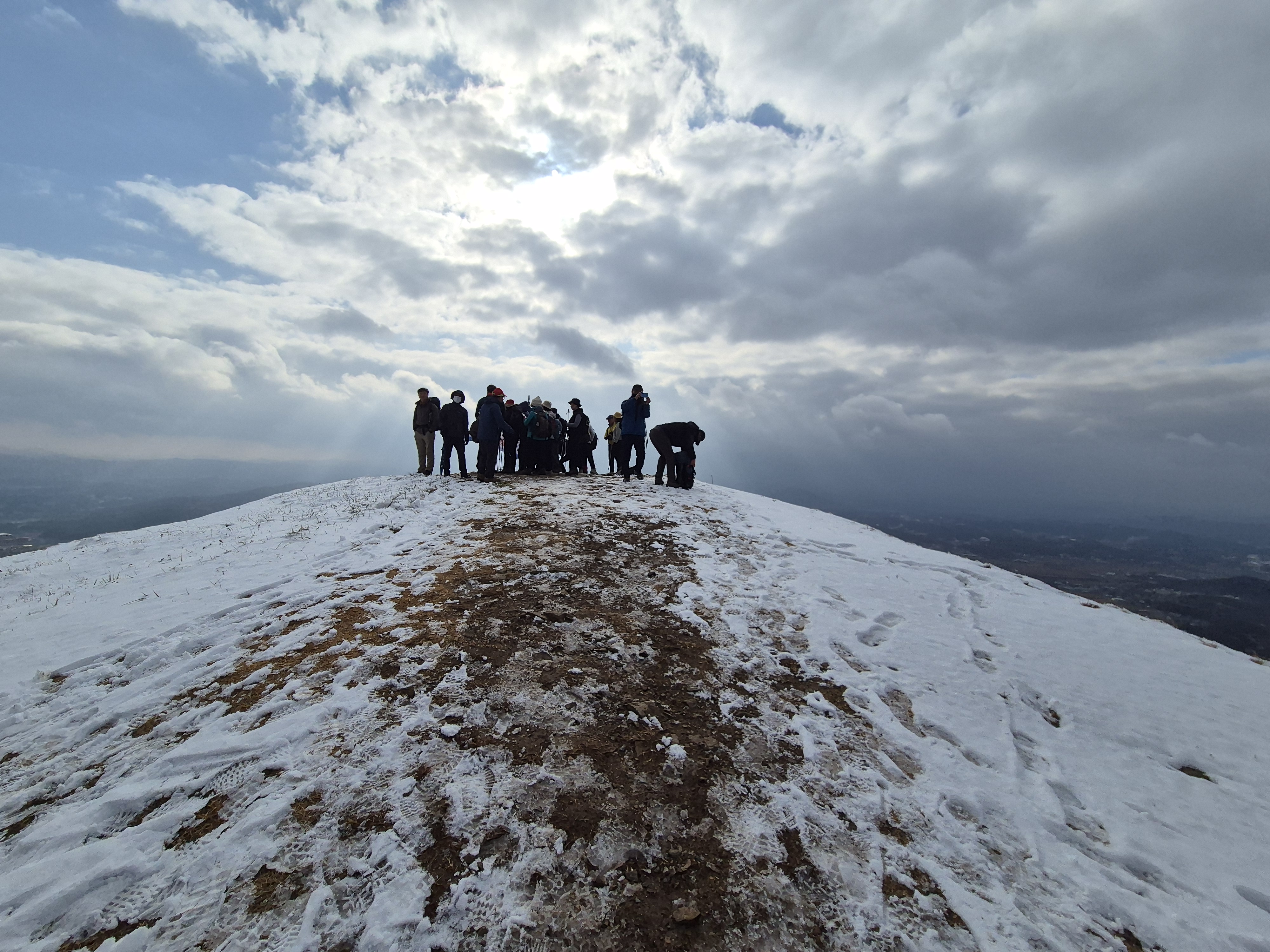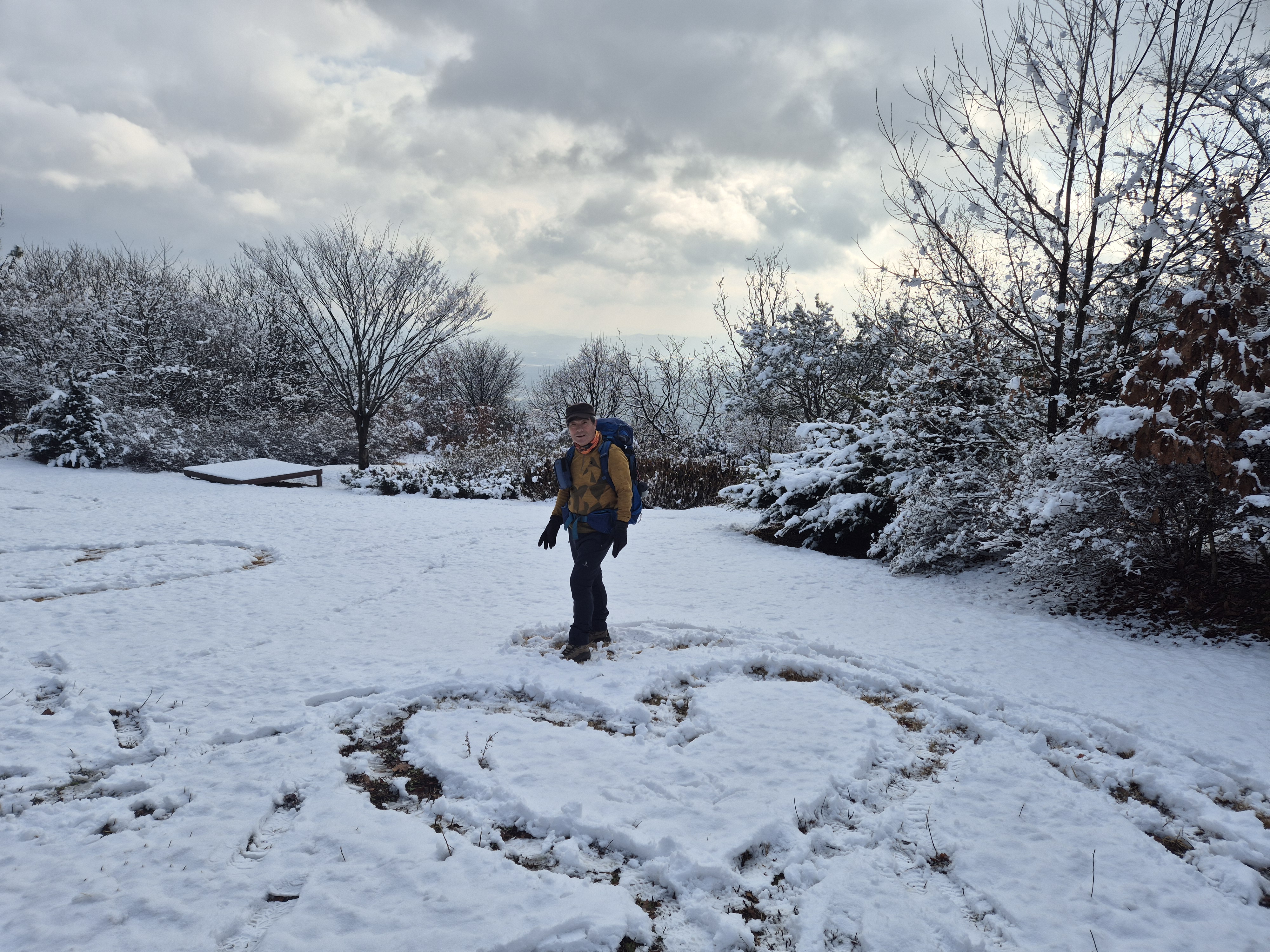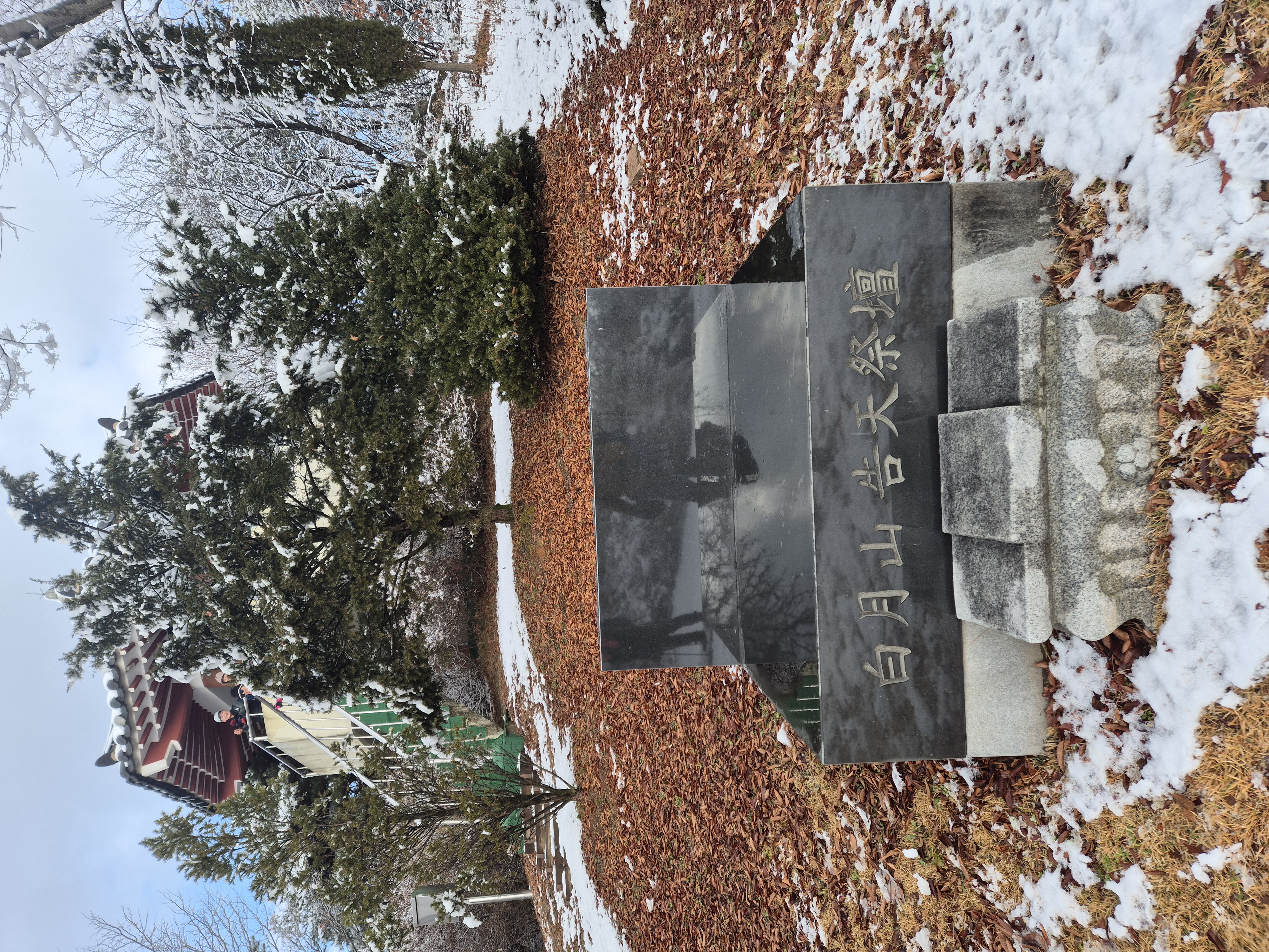 고천제단 앞 너른 광장에 흰 눈이 소복이 쌓였다. 힘들게 올라온 대원들을 기쁘게 맞이한다.
