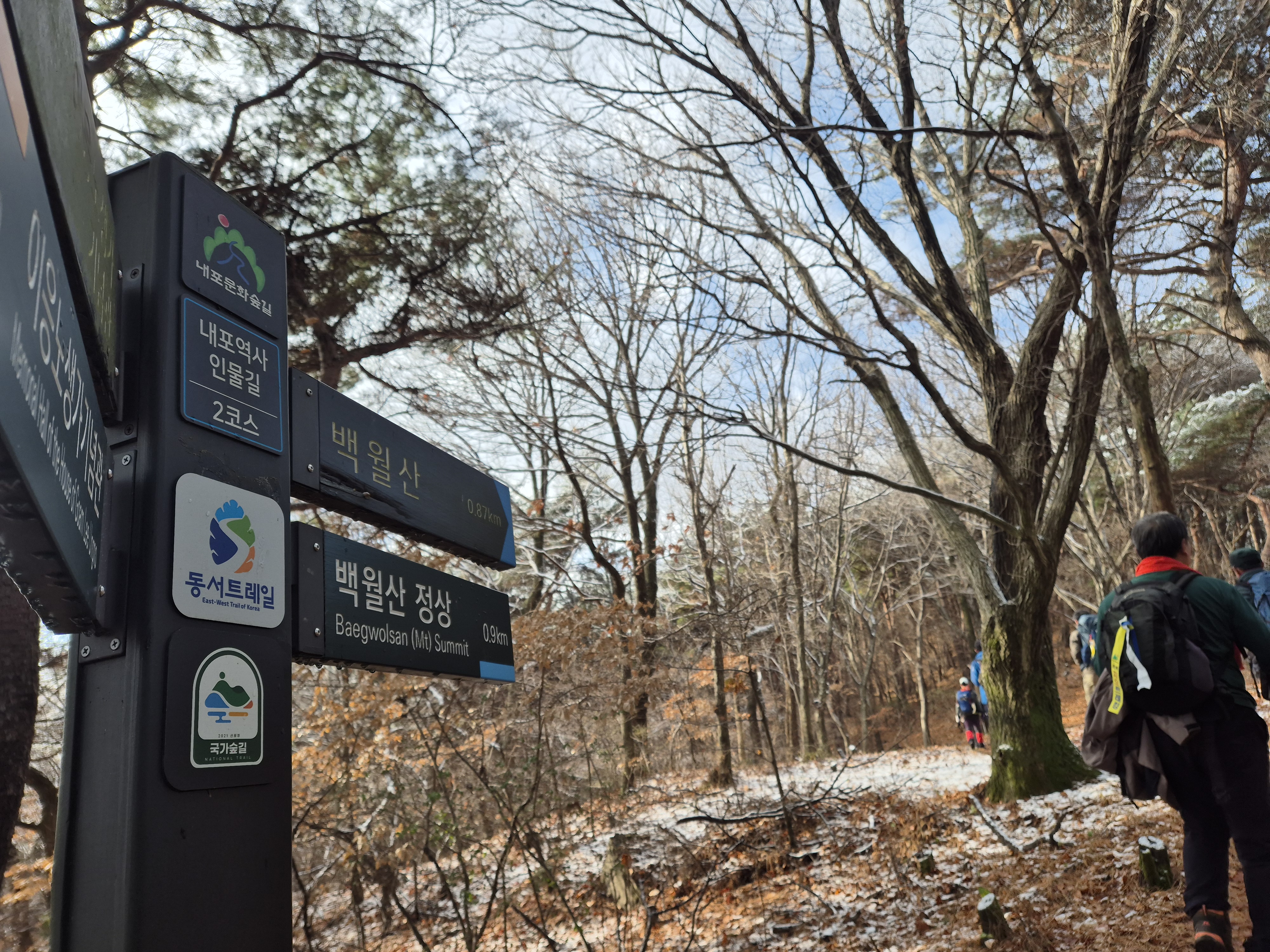 20년 전 금북정맥을 할 때 그리운 추억이 새록새록한 동서트레일 10구간을 걸었다. 가끔은 그냥 횡재를 할 때가 있다. 오늘 같은 날이다. 백월산에 흰 눈이 내려 잔설이 쌓인 숲길을 걸을 수 있는 기회는 정말이지 횡재 아니고 무엇이랴? 환상의 숲길을 걸었다. 새롭고 포근하고 상큼하고 기분 좋은 길이였다.