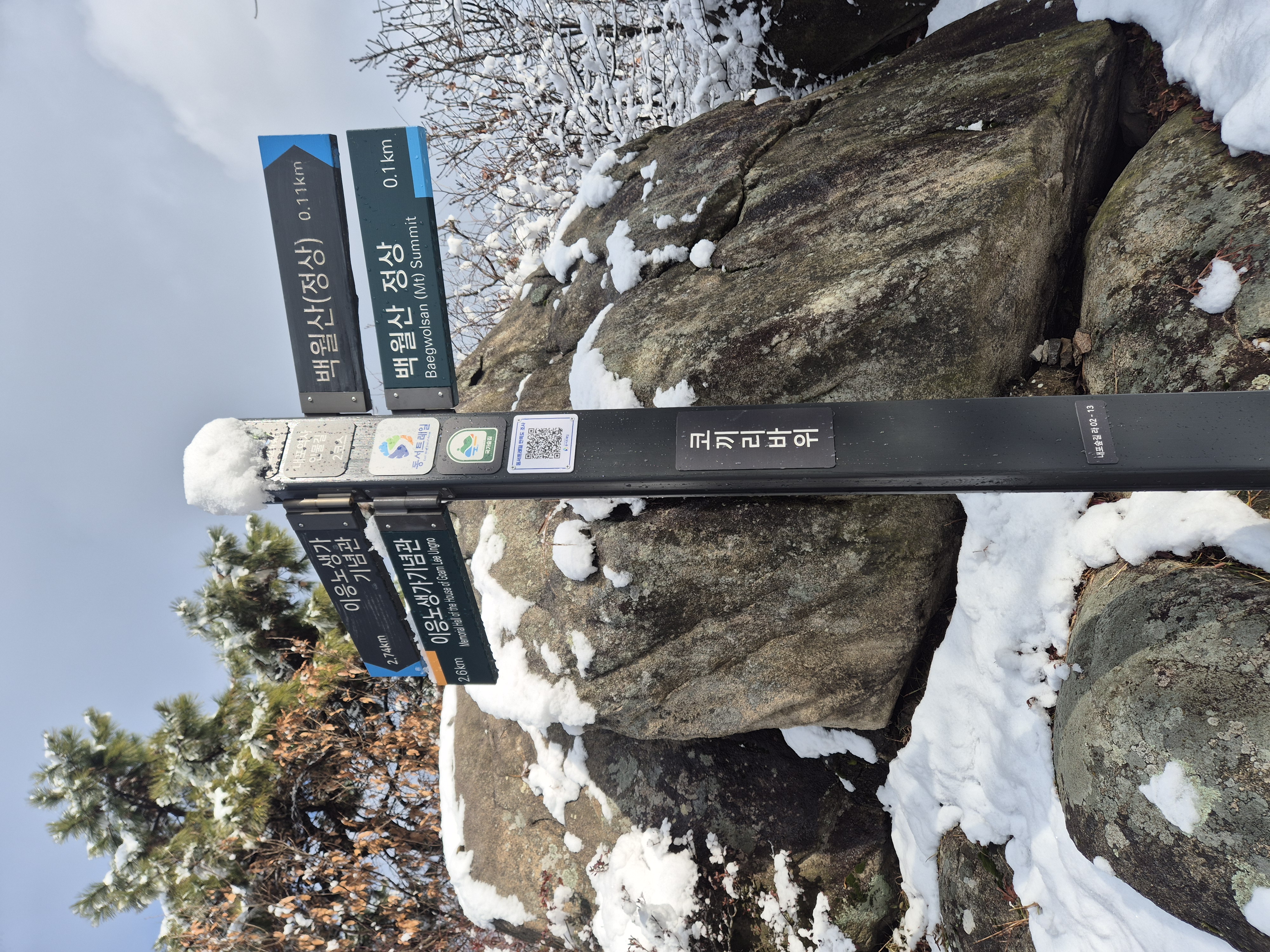 백월산 1.1km 이정목