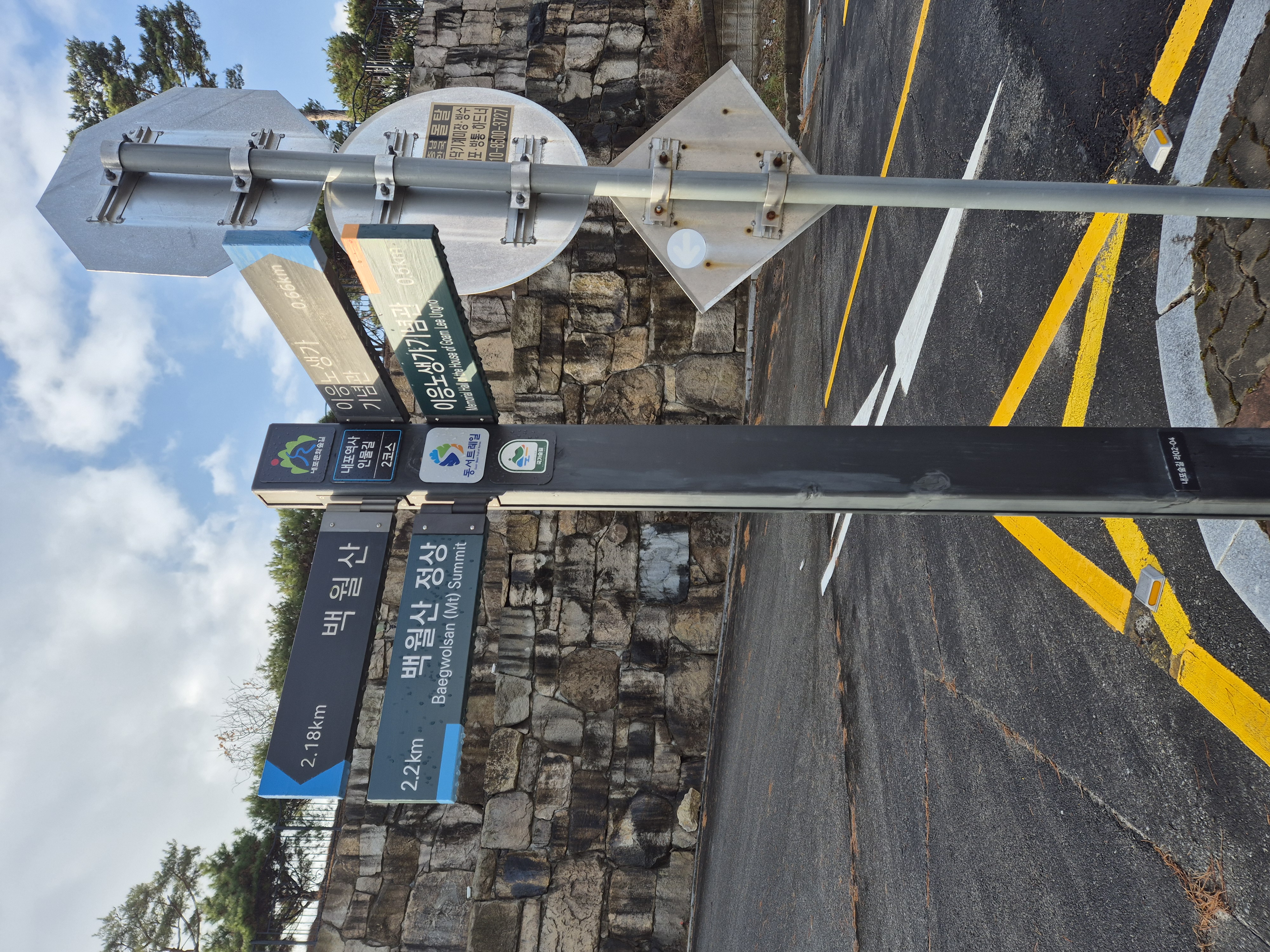 이 구간의 이정표는 100m에 하나씩 세워져 있다.