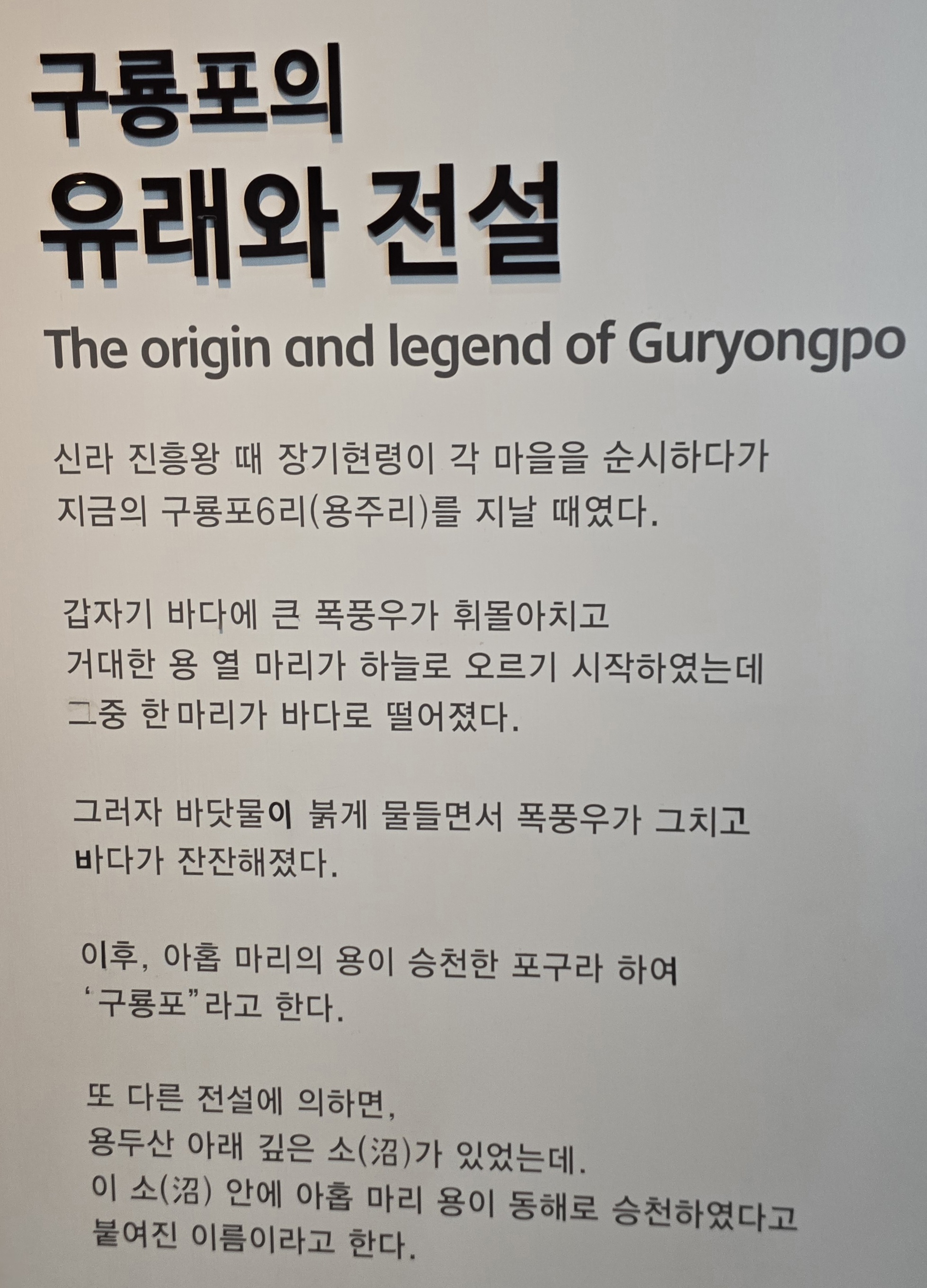 이후, 아홉 마리 용이 승천한 포구라 하여 '구룡포'라고 한다.