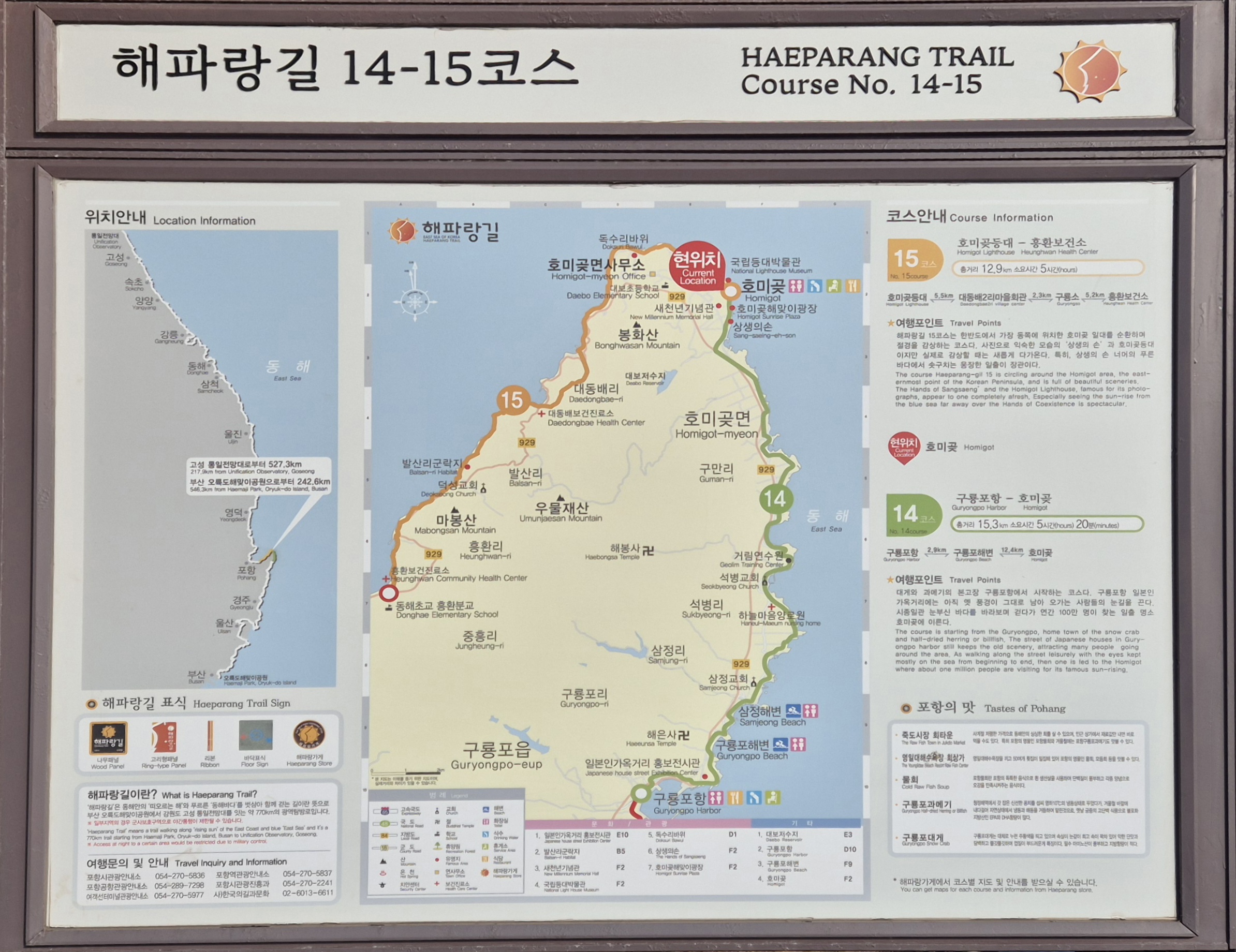 14코스 종점, 15코스 시작점 호미곶 안내 현 위치