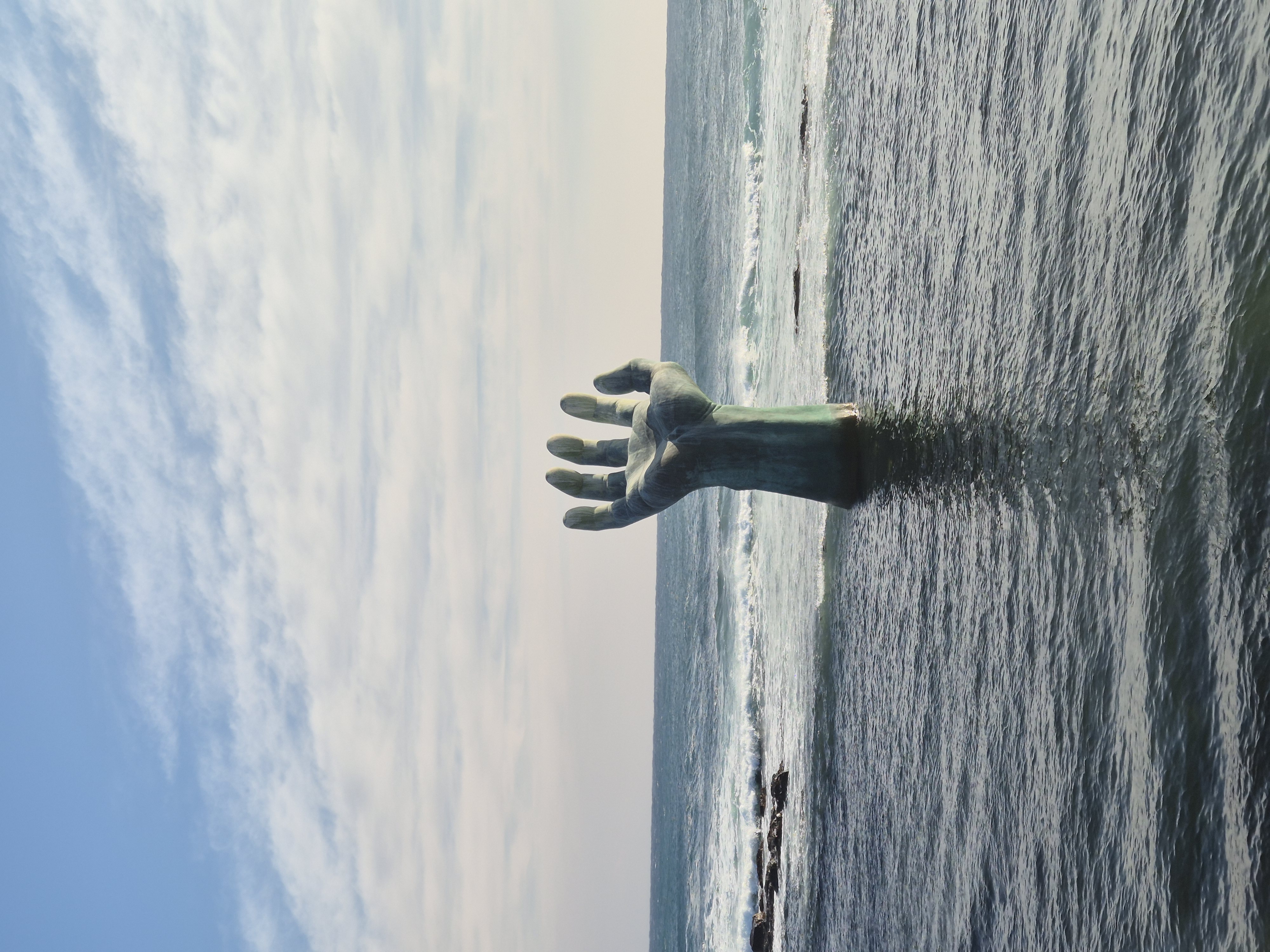 바다에 있는 상생의 손은 오른손이고 높이 8.5m 무게 18 ton