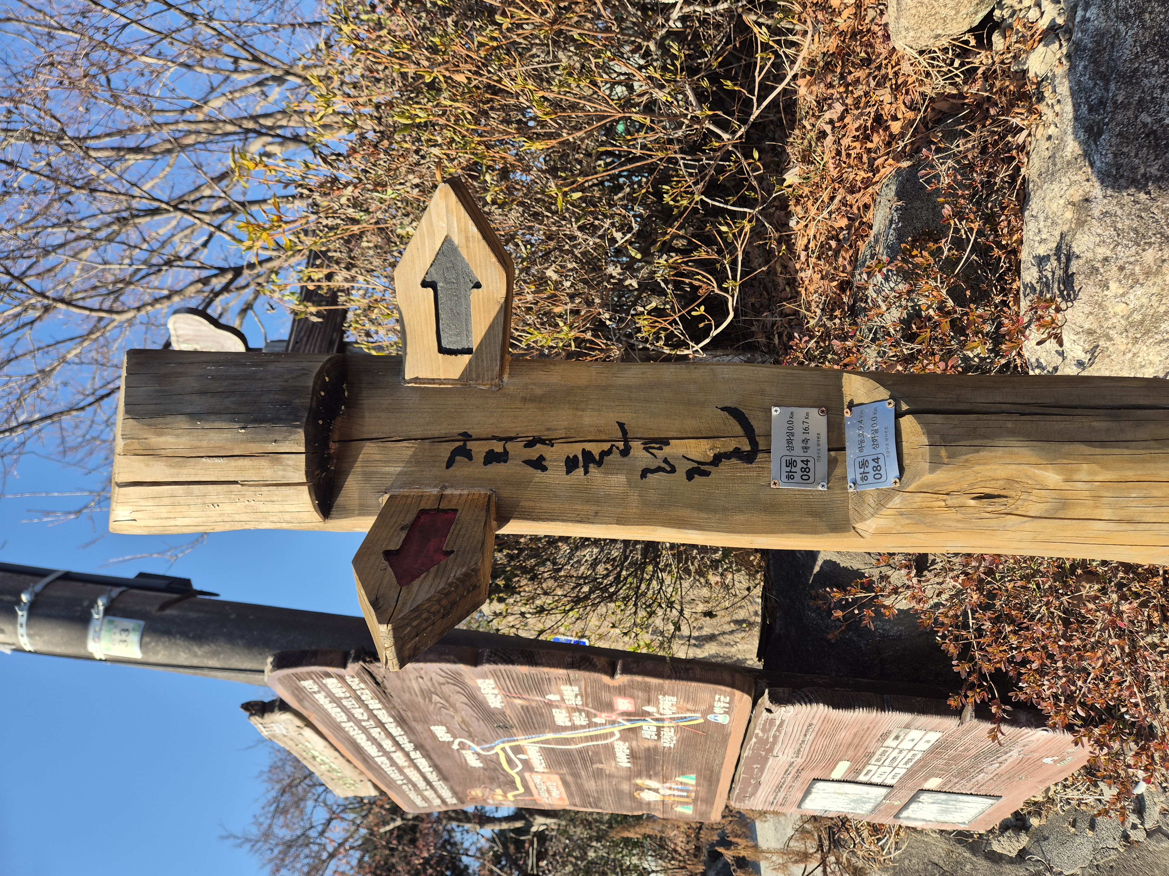 지리산둘레길 11코스(하동호-삼화실:9.4km)/12코스(삼화실-대축:16.7km) 시종점 벅수