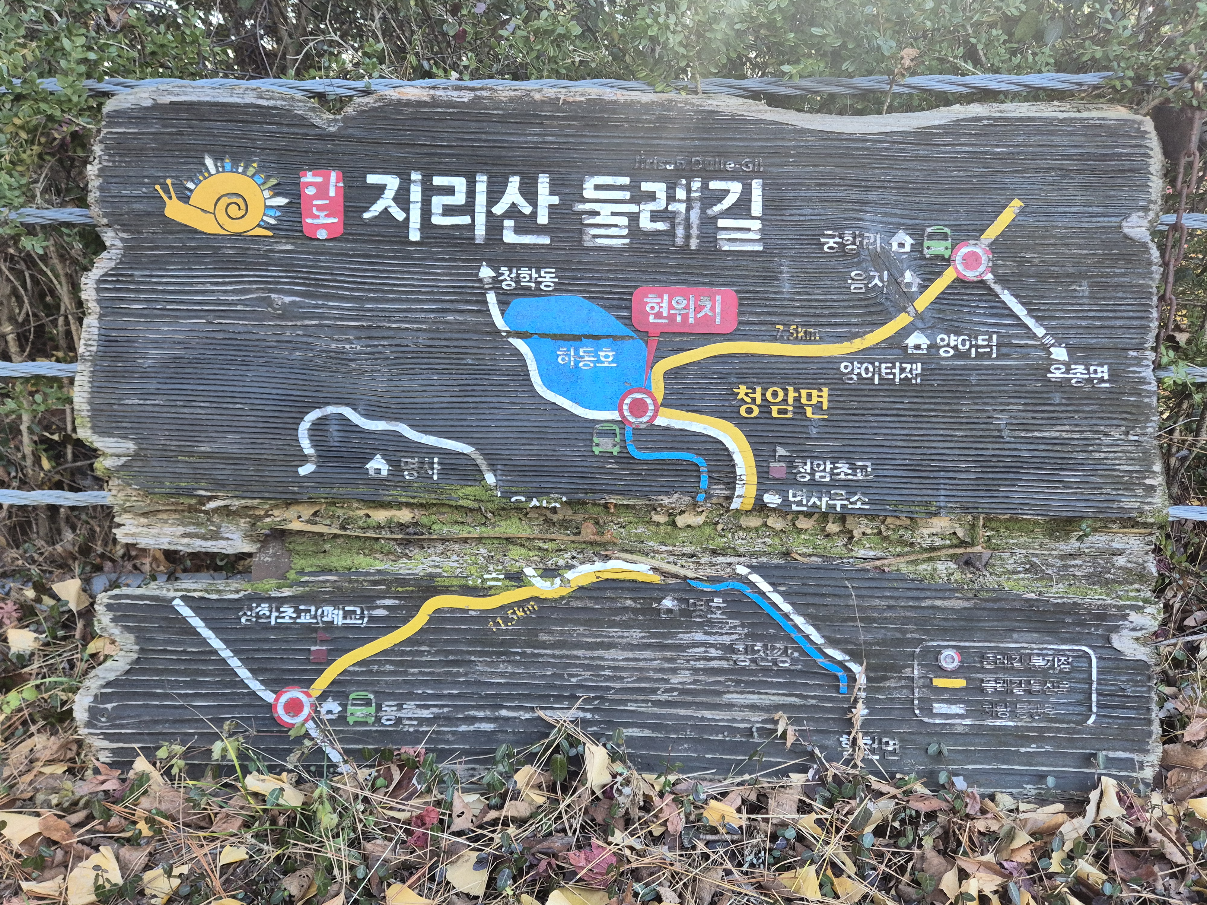 지리산 둘레길 11코스는 9.4km 이고 12코스는 16.7km 이다. 11코스는 너무 짧고 12코스는 너무 길다. 그래서 오늘 지리산 둘레길 12코스 중 일부 구간(삼화실 - 서당 : 3.3km)을 이어서 걷는다.