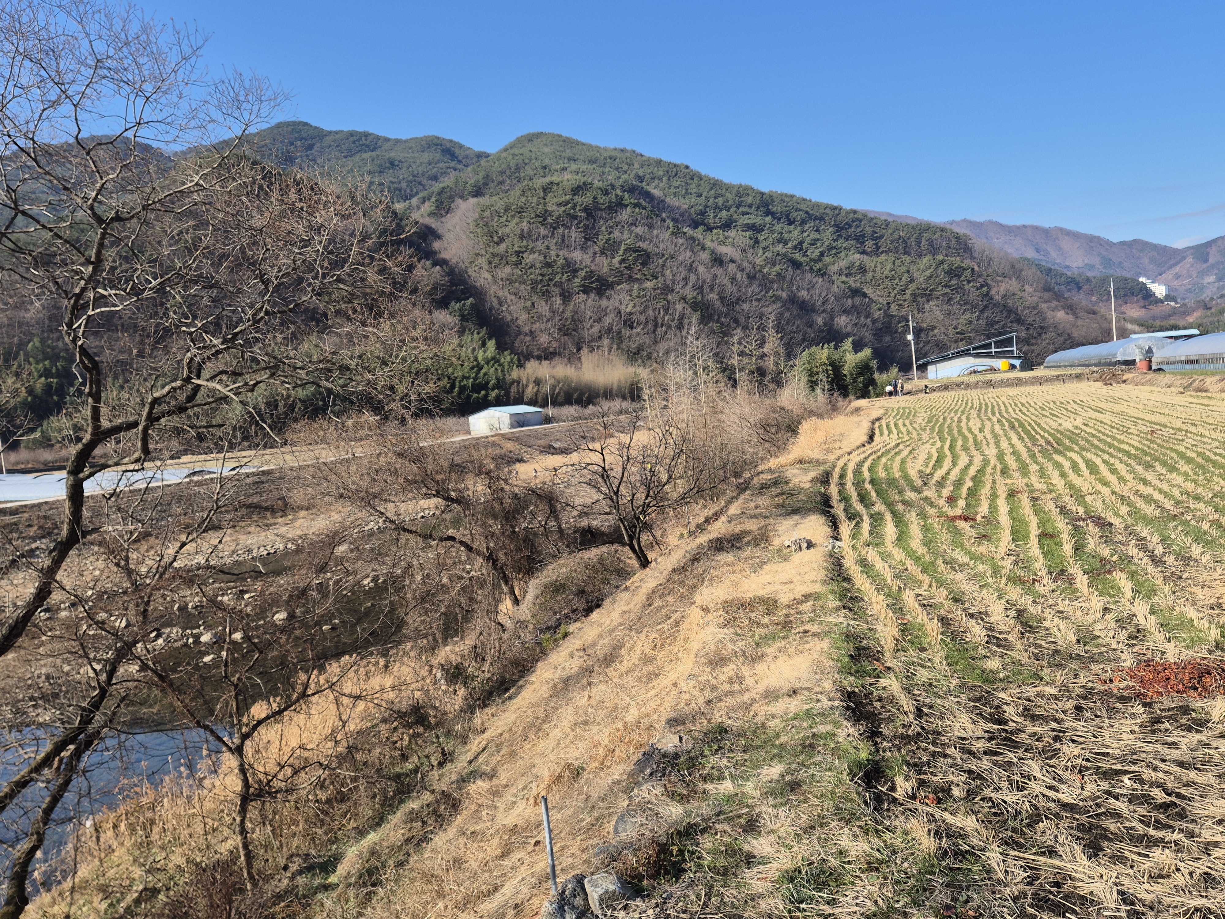 ○ 오늘 생명과 평화의 길 지리산둘레길 11코스 9.4km와 12코스 일부 구간 3.3km를 포함 12.7km를 걸었다. 지리산 둘레길 휴식기간(2025년 12월 22일~2026년 3월 2일)으로 산길에는 사람이 없다. 모든 식물은 그 찬란했던 봄 - 여름 - 가을을 보내고 깊은 겨울잠 속에 들었다. 흐르는 강물도 온전히 움츠리고 하늘도 외롭게 파랗다. 굽이쳐 흐르는 장쾌한 산줄기는 속살을 훤히 드러내고 마을마다 옹기종기 살 붙이고 있는 이웃집 대문들도 꽁꽁 잠겨 있다. 지리산은 온전히 겨울 속으로 깊이 들어가 겨울잠에 빠져 있다. 흰 눈이라도 올라치면 정말이지 개미새끼 한 마리도 없는 고요한 적막의 시간이 흐를 것 같다. 2025년 12월 한 해를 마무리하면서 마지막 산길을 걸었다. 올 한 해 무지기도 많이 걸었던 산길에 설렘과 기대, 여유와 행복, 나눔과 배려로 따뜻하고 건강한 한 해였던 것 같다.
