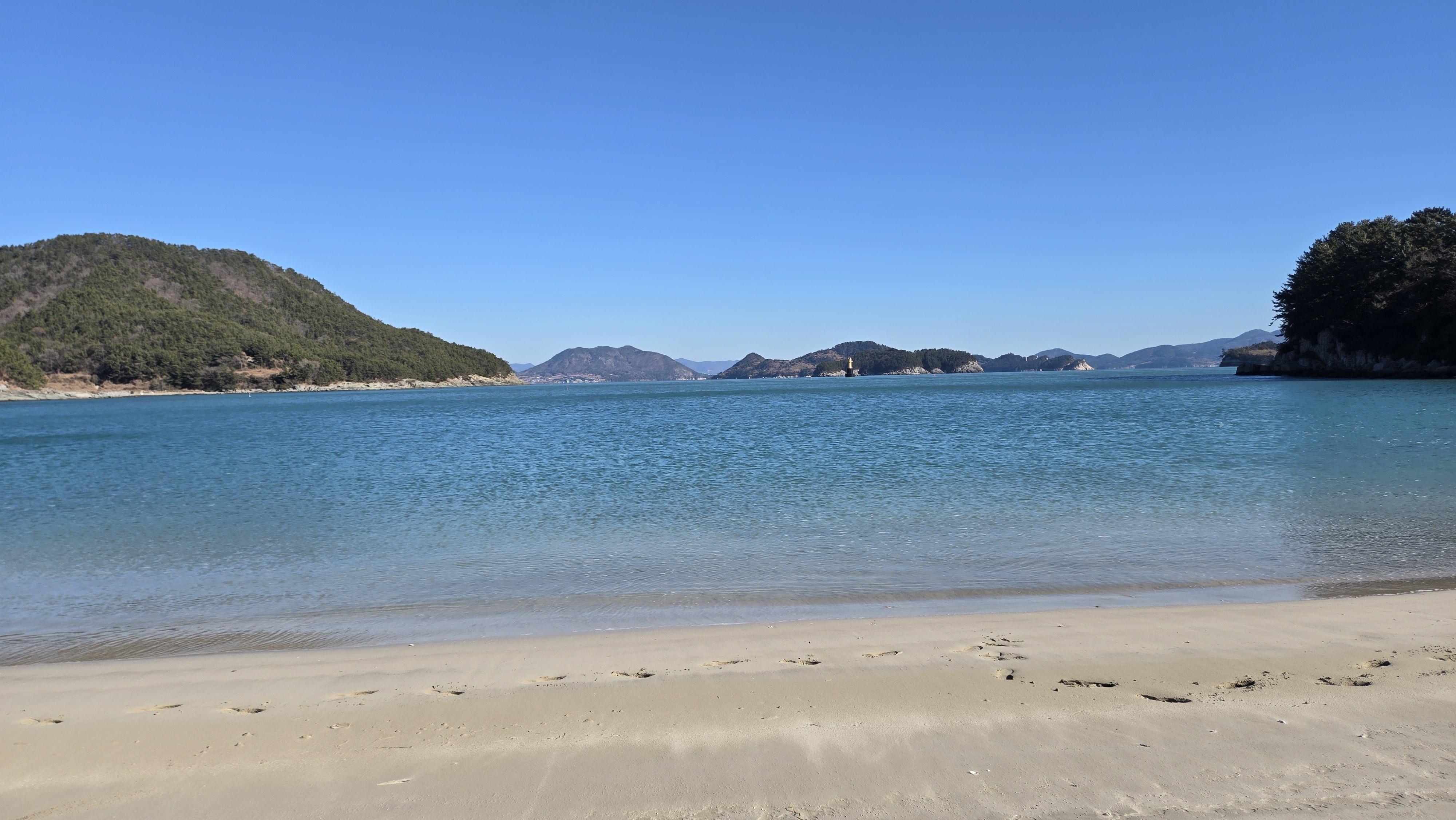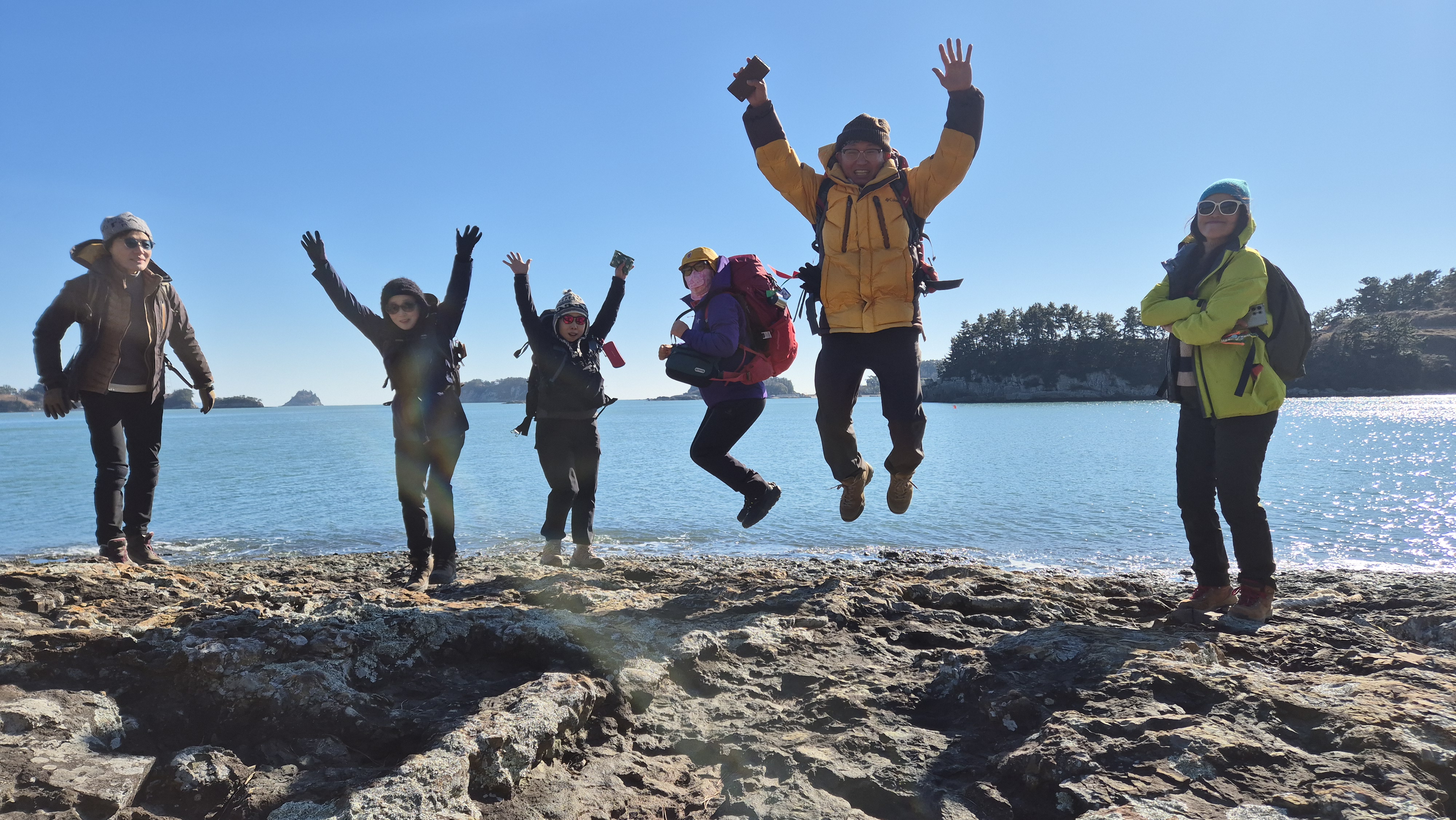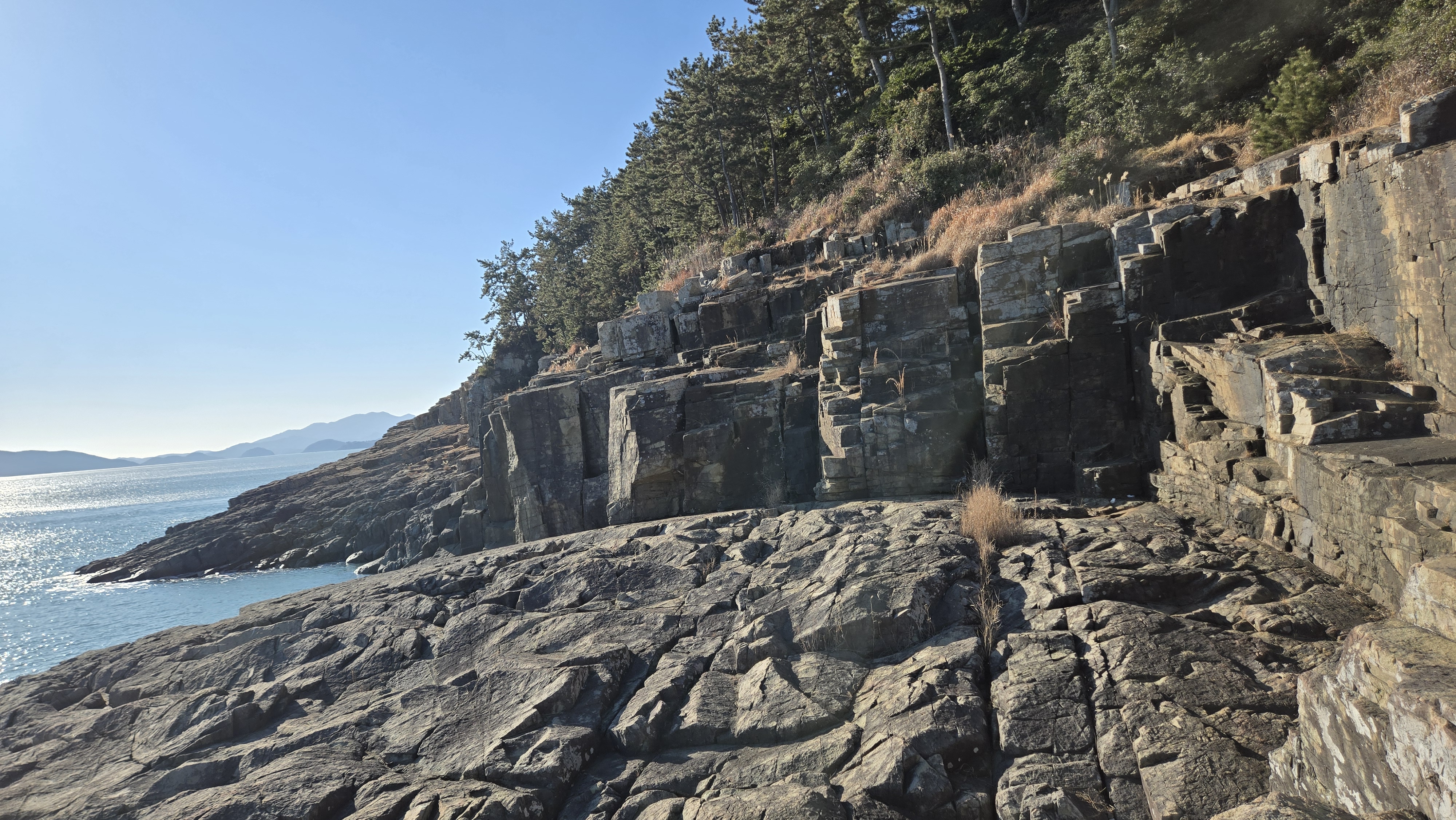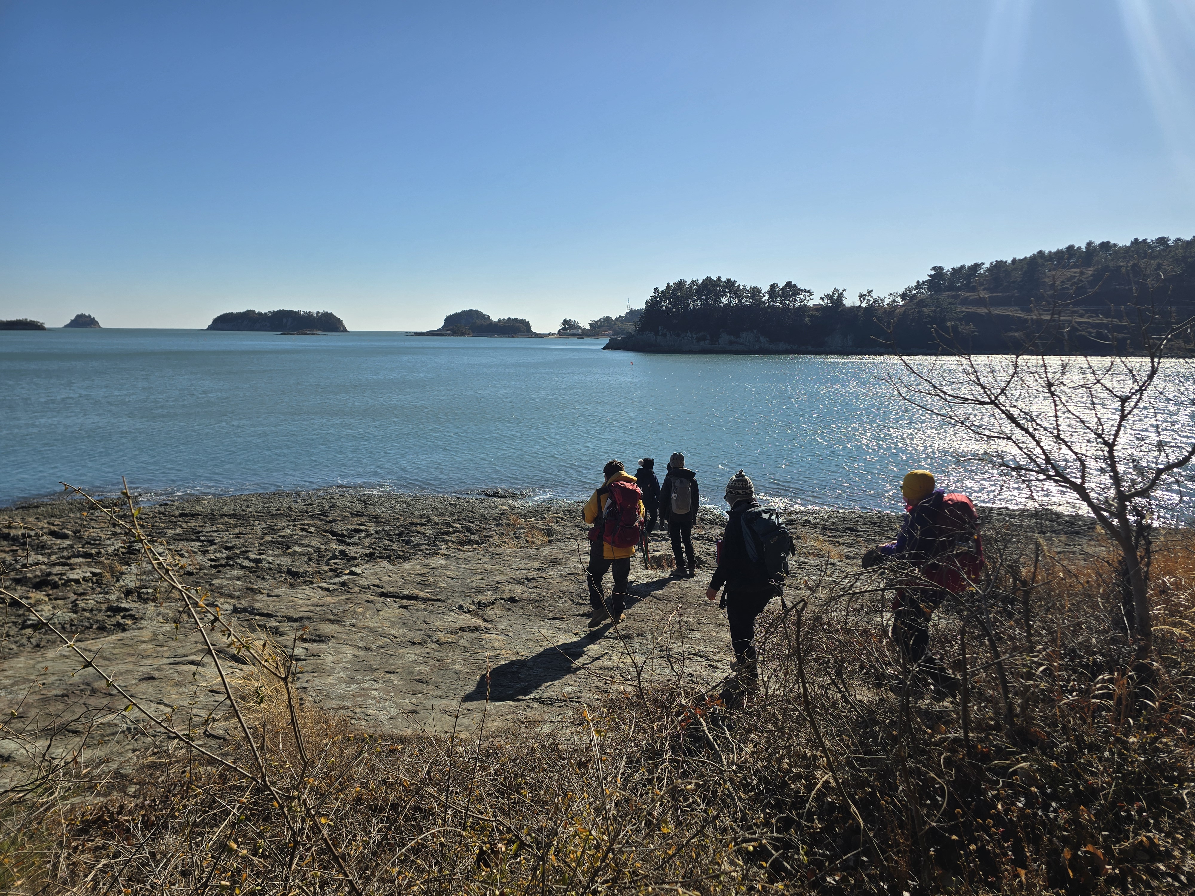 낭도는 언제 와도 맘을 사로잡는다. 특히 겨울 한가운데인 이 시기에 오면 에메랄드 빛 바다와 올망졸망 어울린 섬군들, 고운 모래의 해수욕장, 수억 년 동안 형성된 퇴적층과 공룡발자국, 파도가 만들어 놓은 아름다운 해안, 무엇보다도 확 트인 남해 바다에 반짝이는 윤슬, 그 어느 것 하나 아름답지 않은 것이 없는 낭도이다. 오늘도 충분히 낭도의 낭만에 푹 빠진 하루이다. 힐링 가득이다.