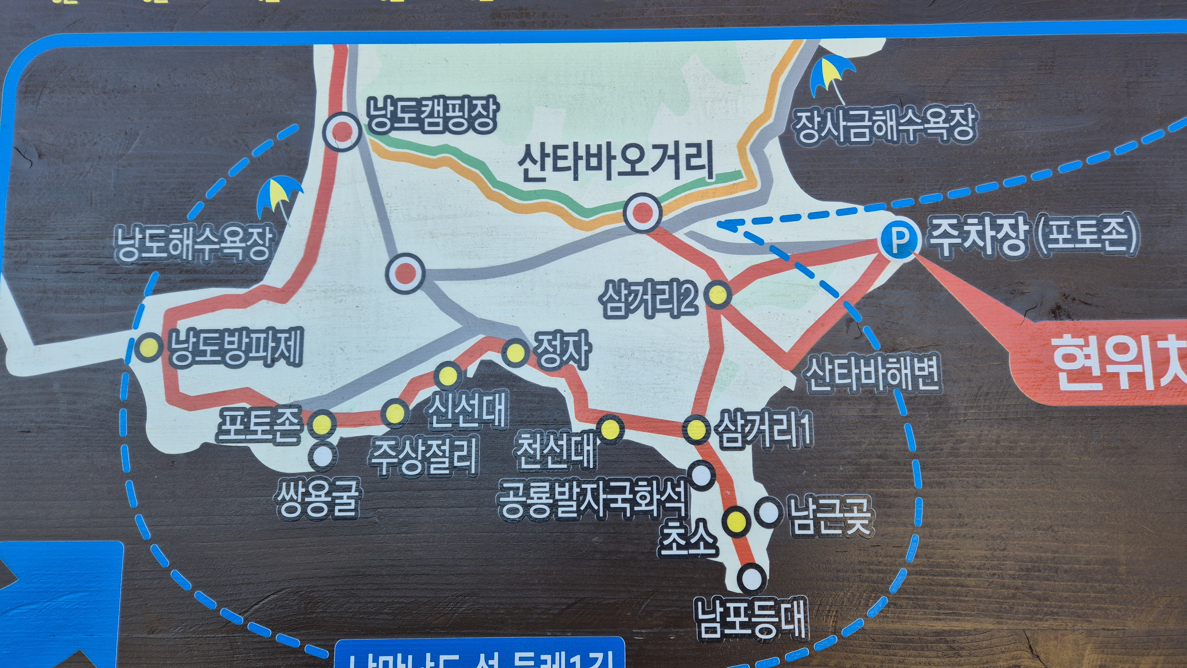 휑하고 출발하여 이곳 낭도 포토존에 서 보거라.