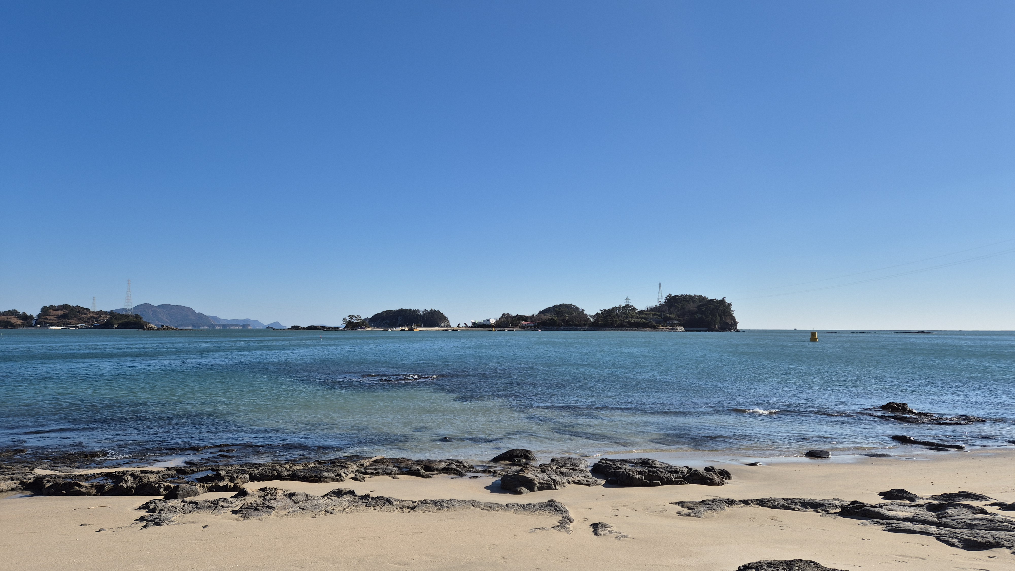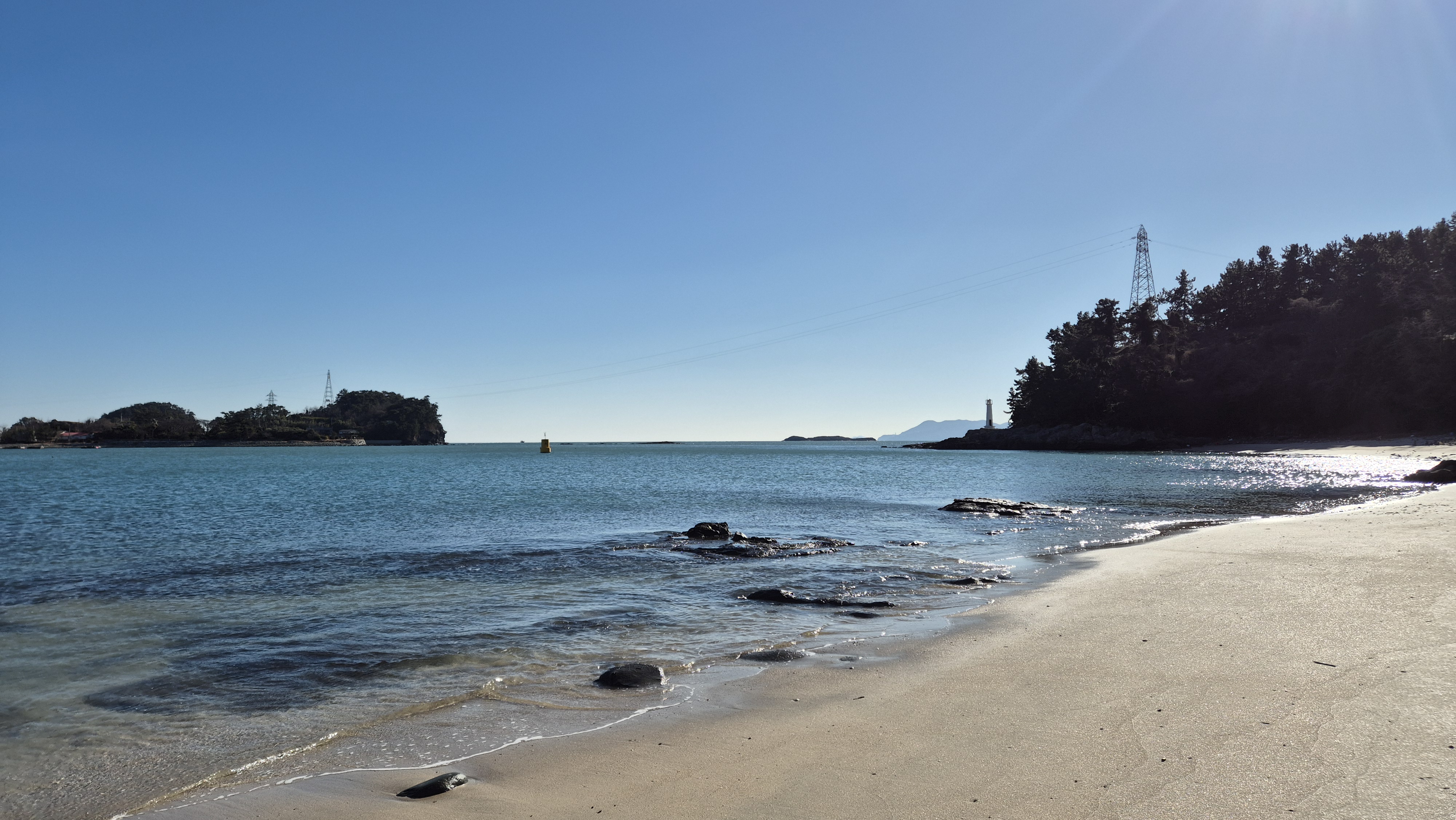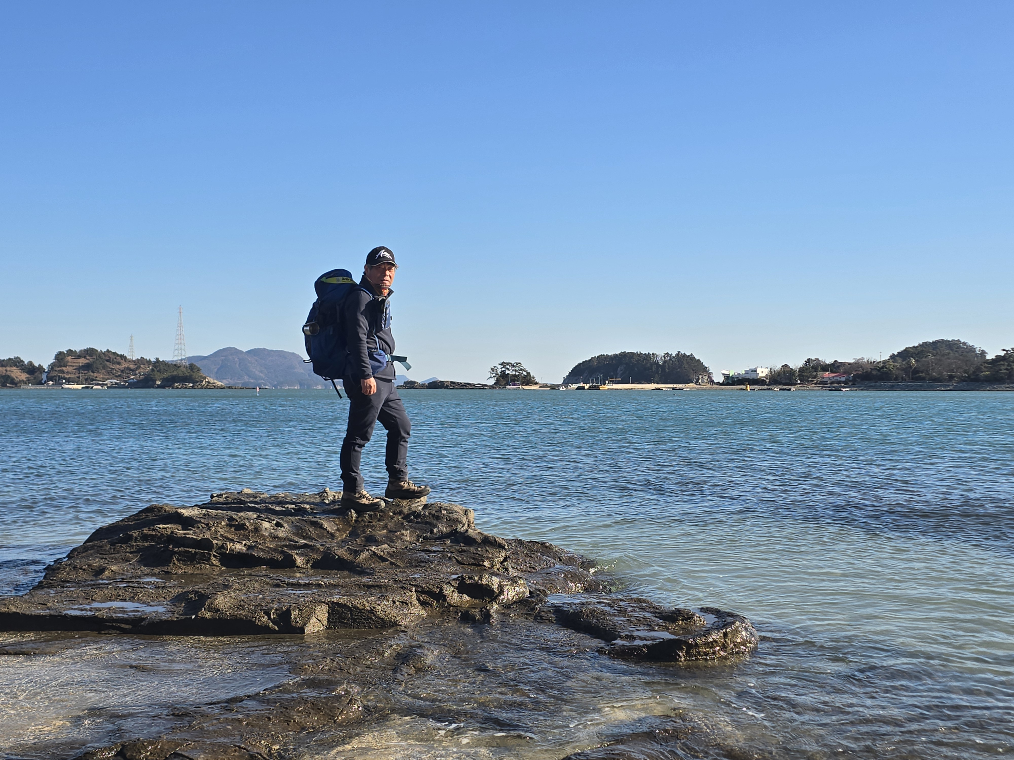 백아도를 배경을 규포해안에서