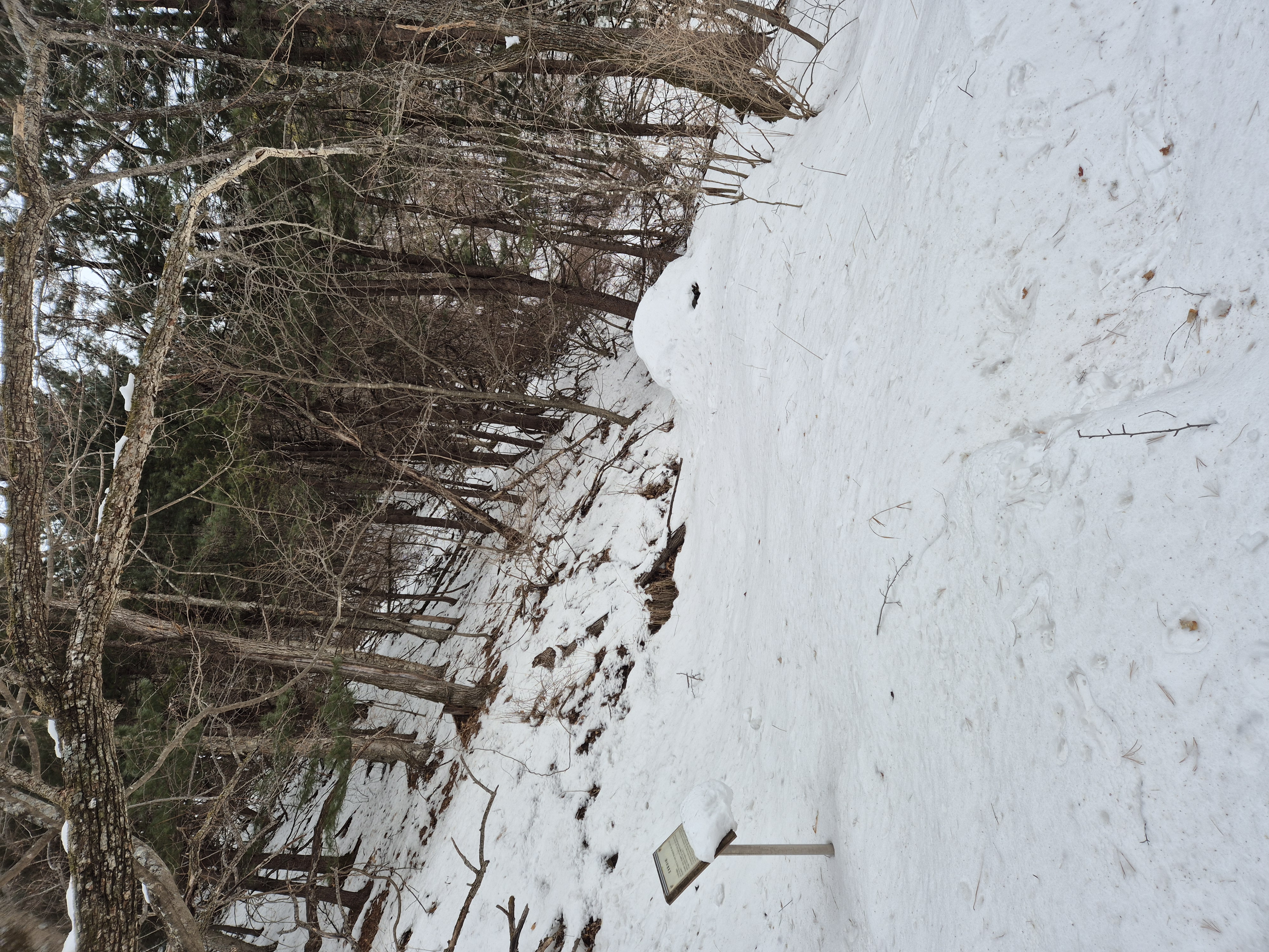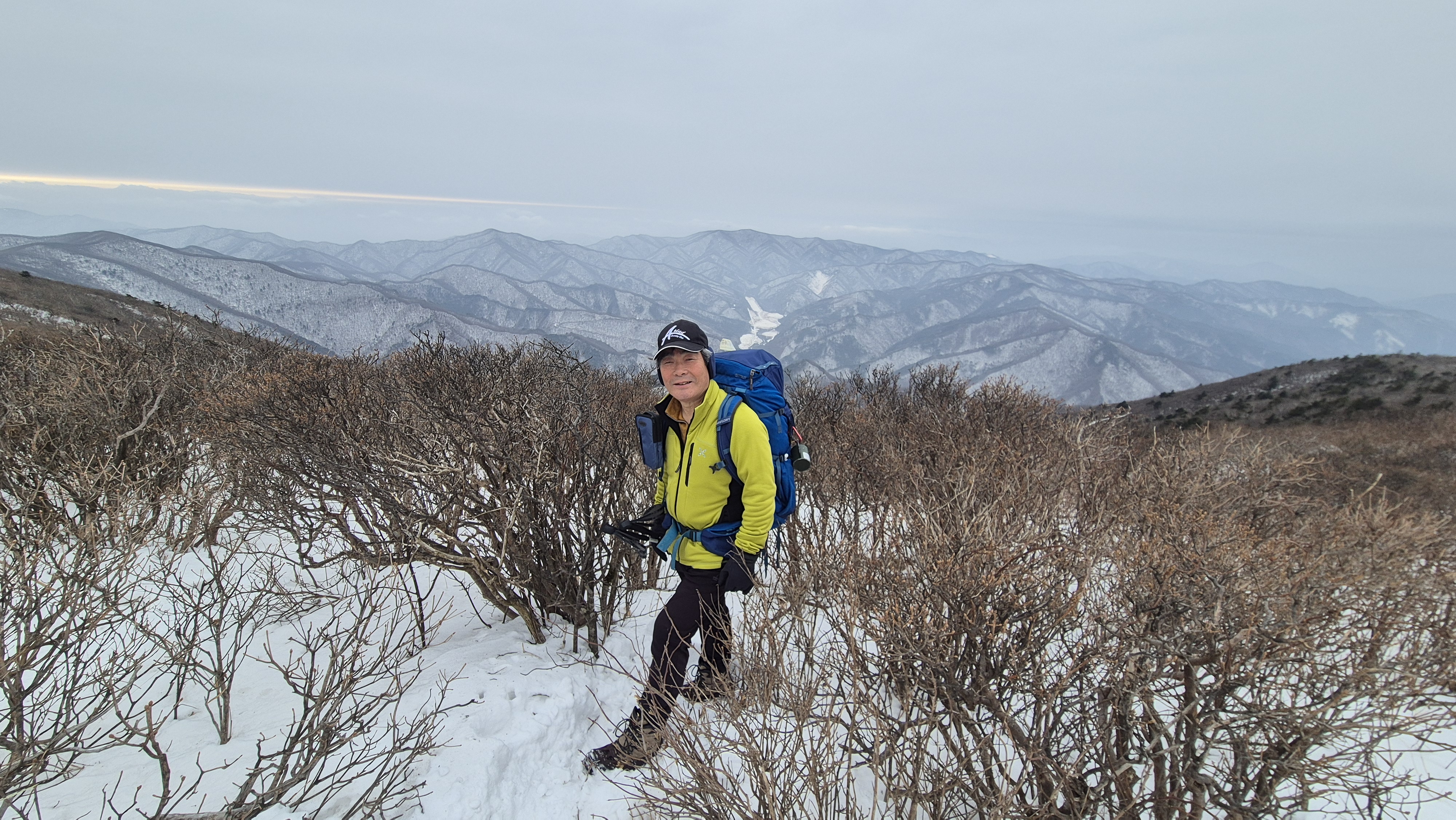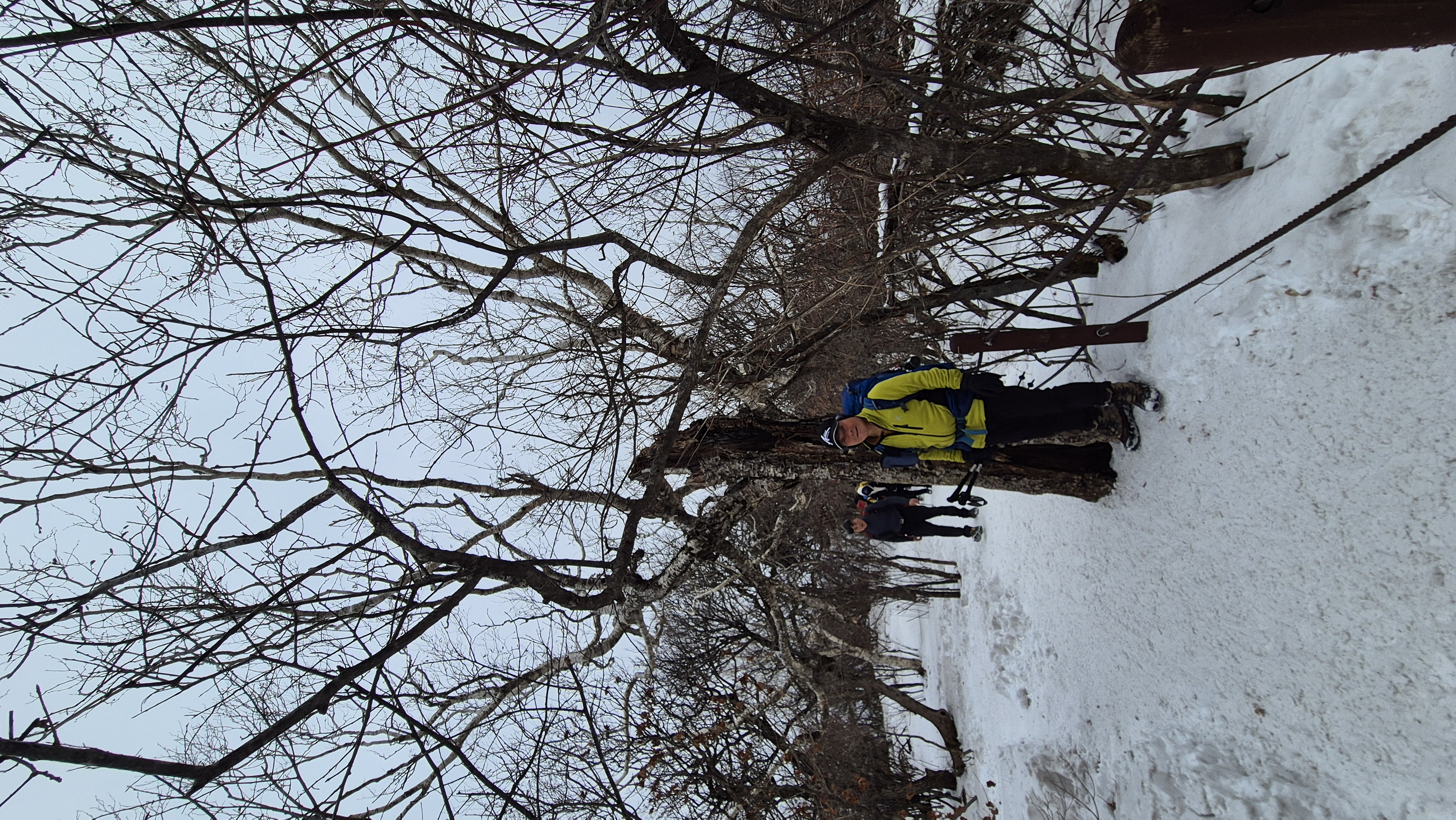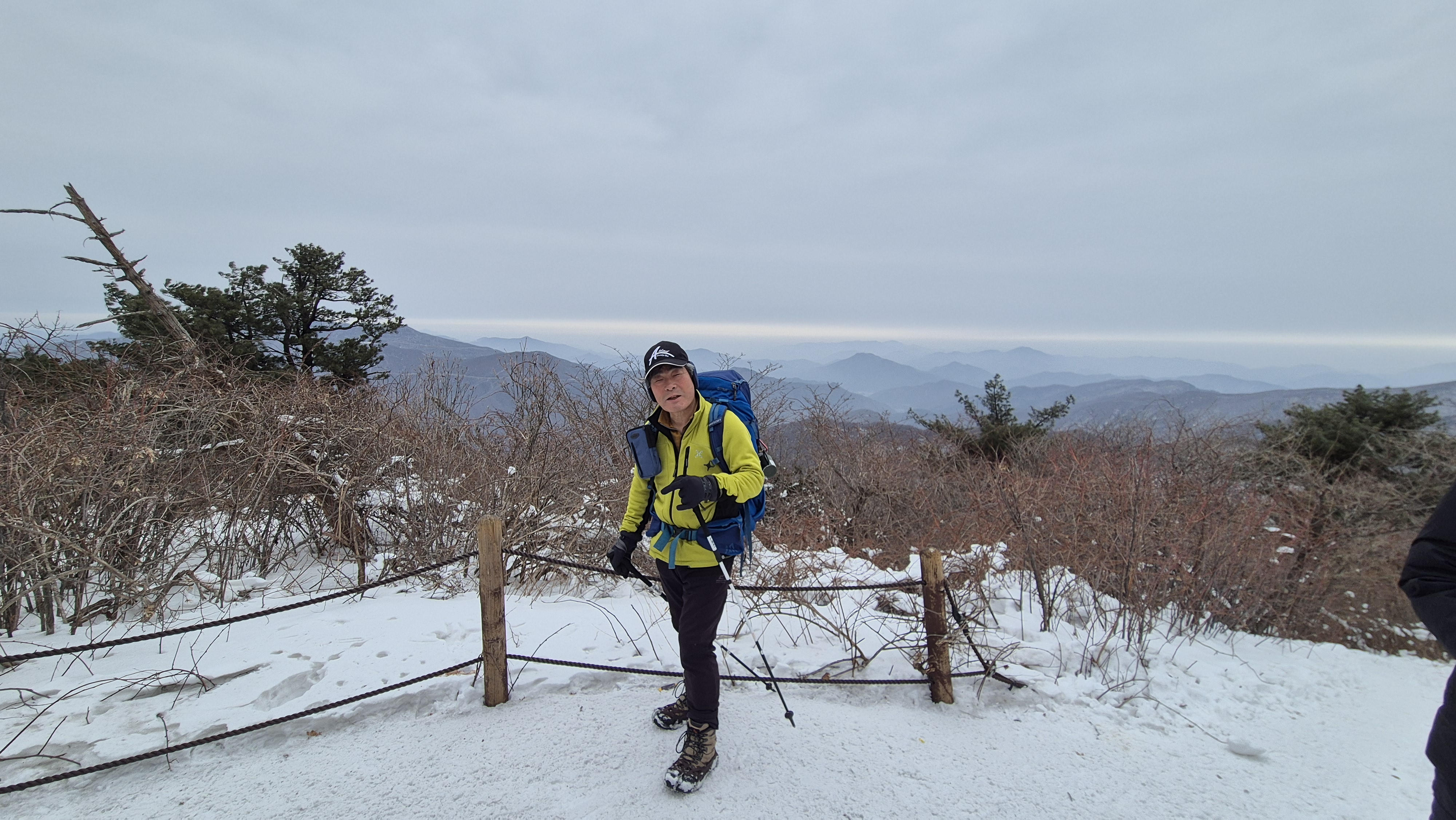 눈이 녹아 잔가지에 눈이 없어 환상의 눈꽃은 보지 못해 아쉽지만, 산등선에는 지난주 내린 눈이 그대로 쌓여 백설의 세상을 선물한다. 겨울 산행은 이런 맛이 있다. 그 울창했던 초록 옷을 다 벗고 속살을 드러내는 겨울산의 아름다운 깊은 매력에 흠뻑 빠진다.