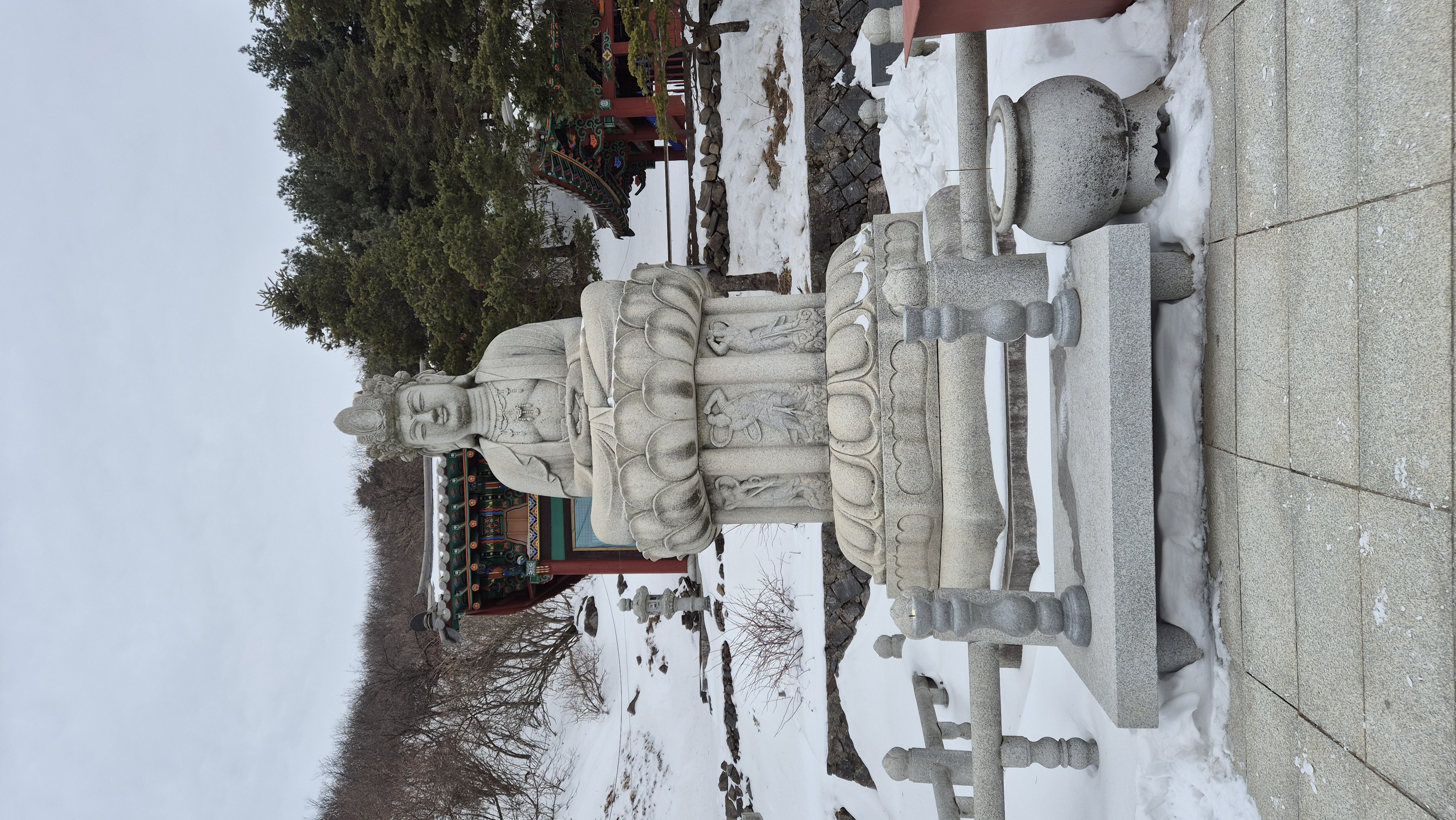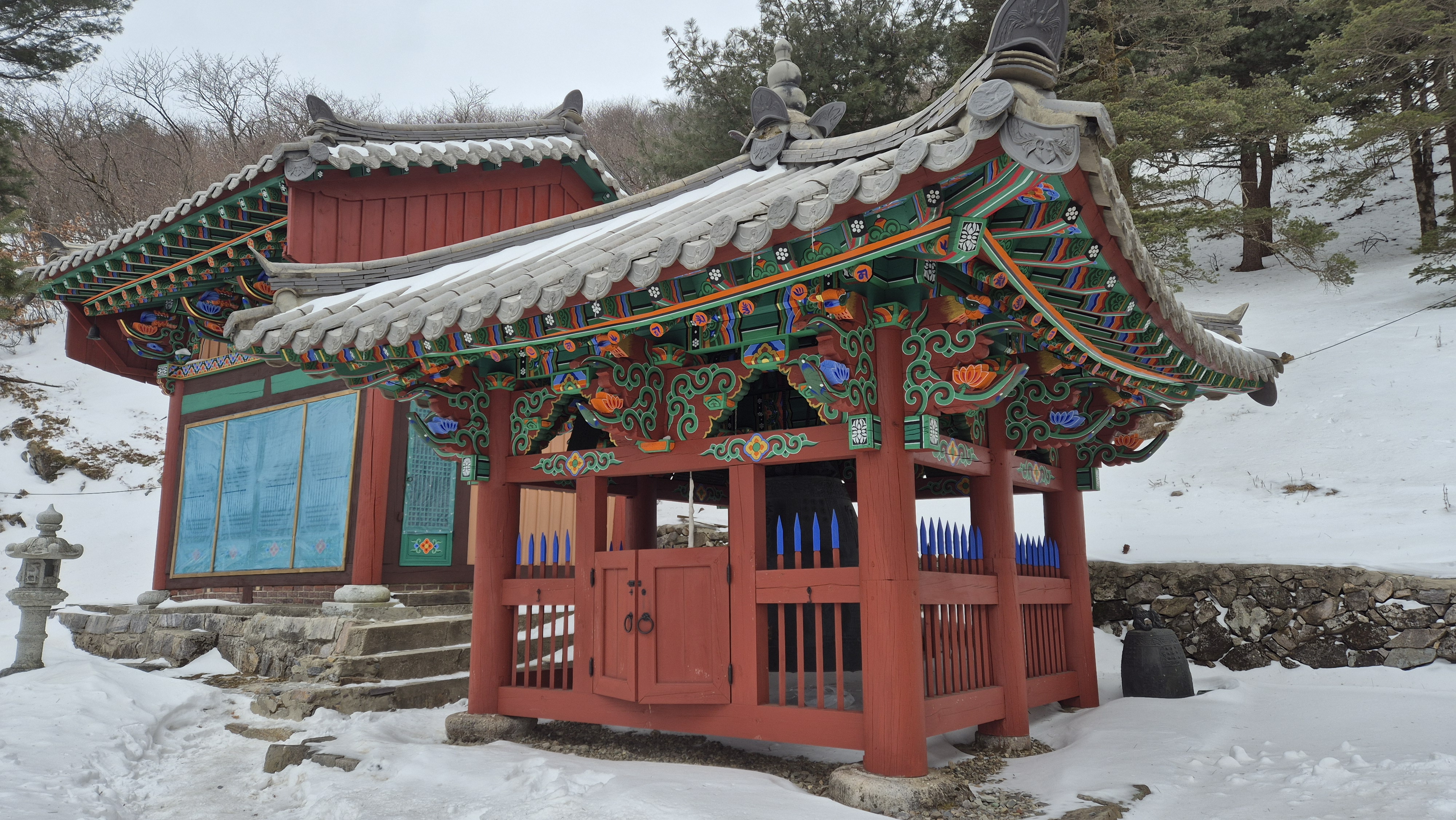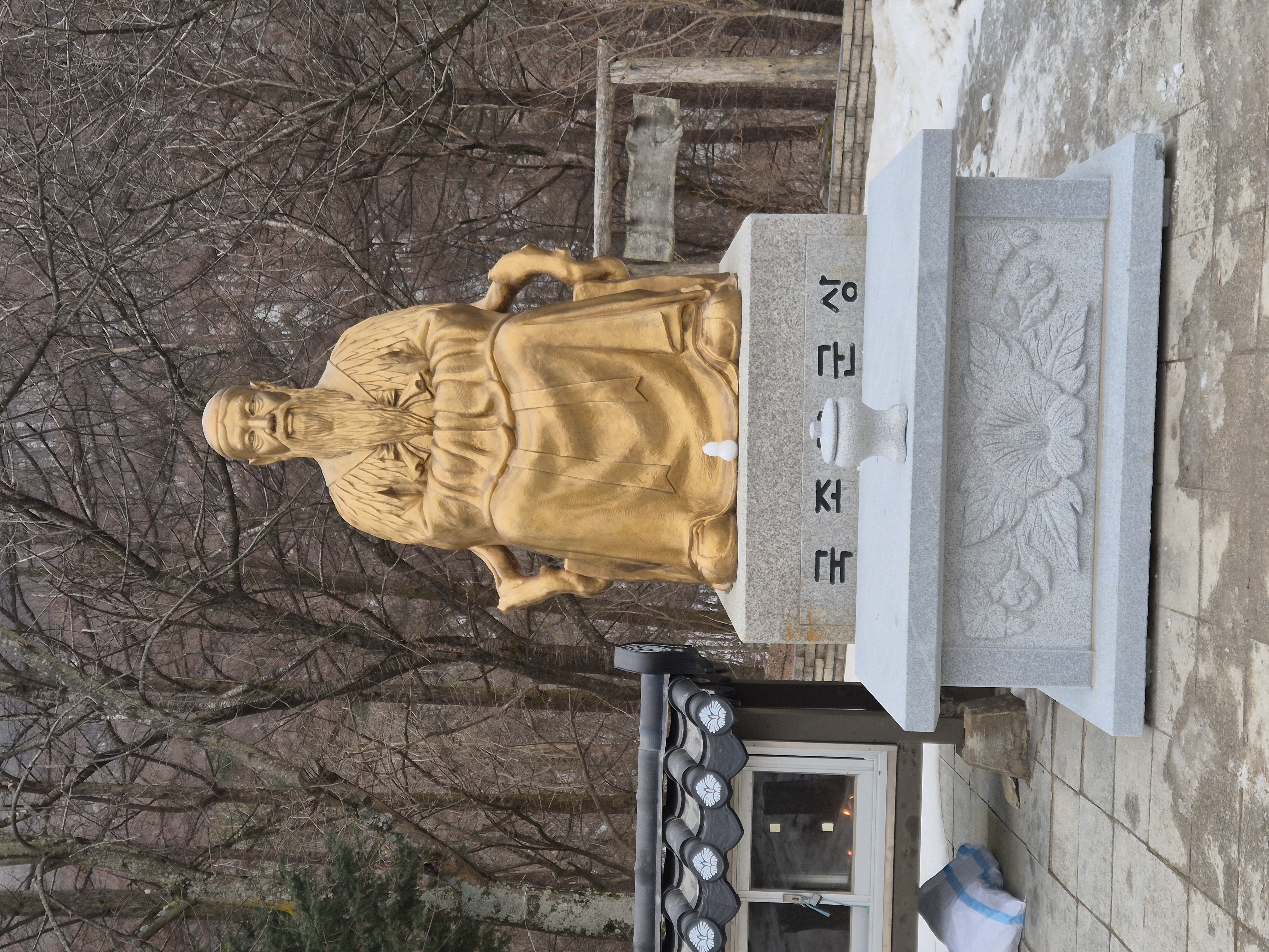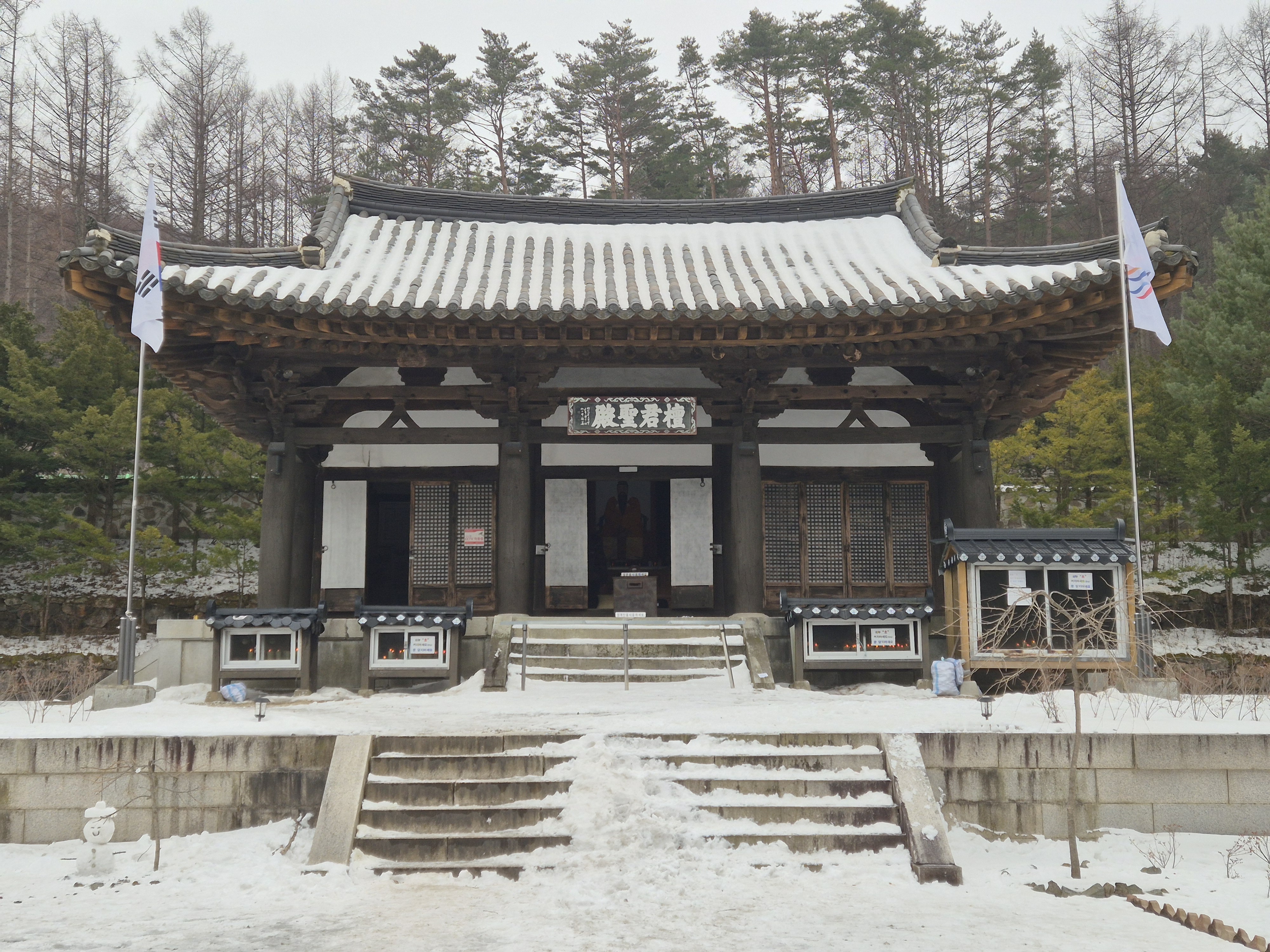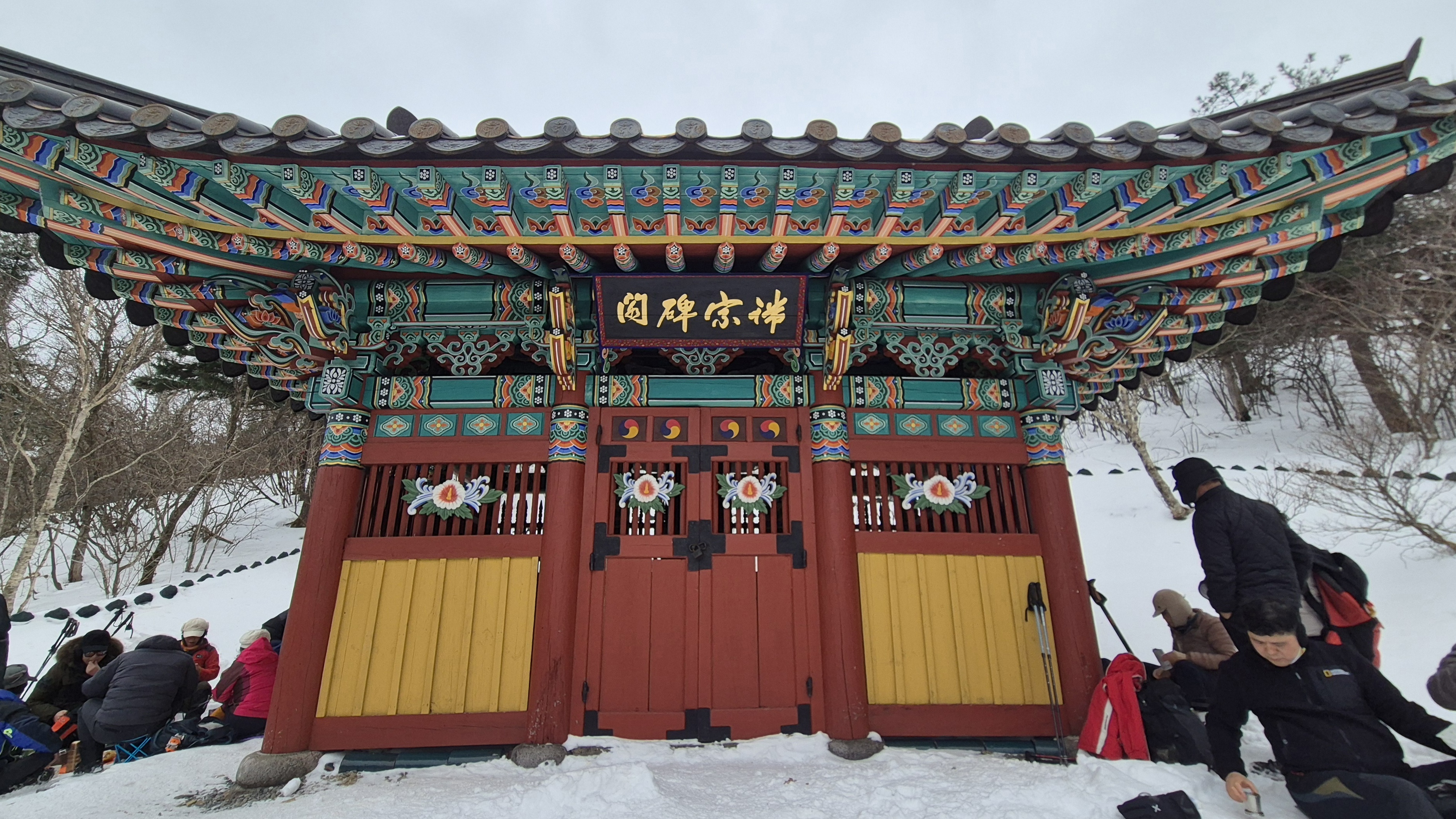 흰 눈으로 쌓여 있어야 할 천왕단 앞마당에는 흰 눈은 없고 을씨년스럽기만 하다. 기념 한 장 남기고